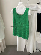 【C8735】韓版高級感鏤空針織鉤花疊穿時尚背心