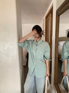 【C8737】韓版薄款透氣棉麻高級感寬鬆休閒襯衫
