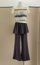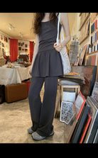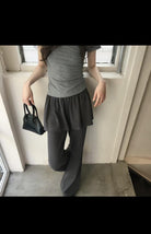 3. 【C8744】韓系設計百搭假兩件喇叭休閒褲(不含上衣)
