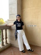 【C8750】韓系字母短款正肩短袖T恤
