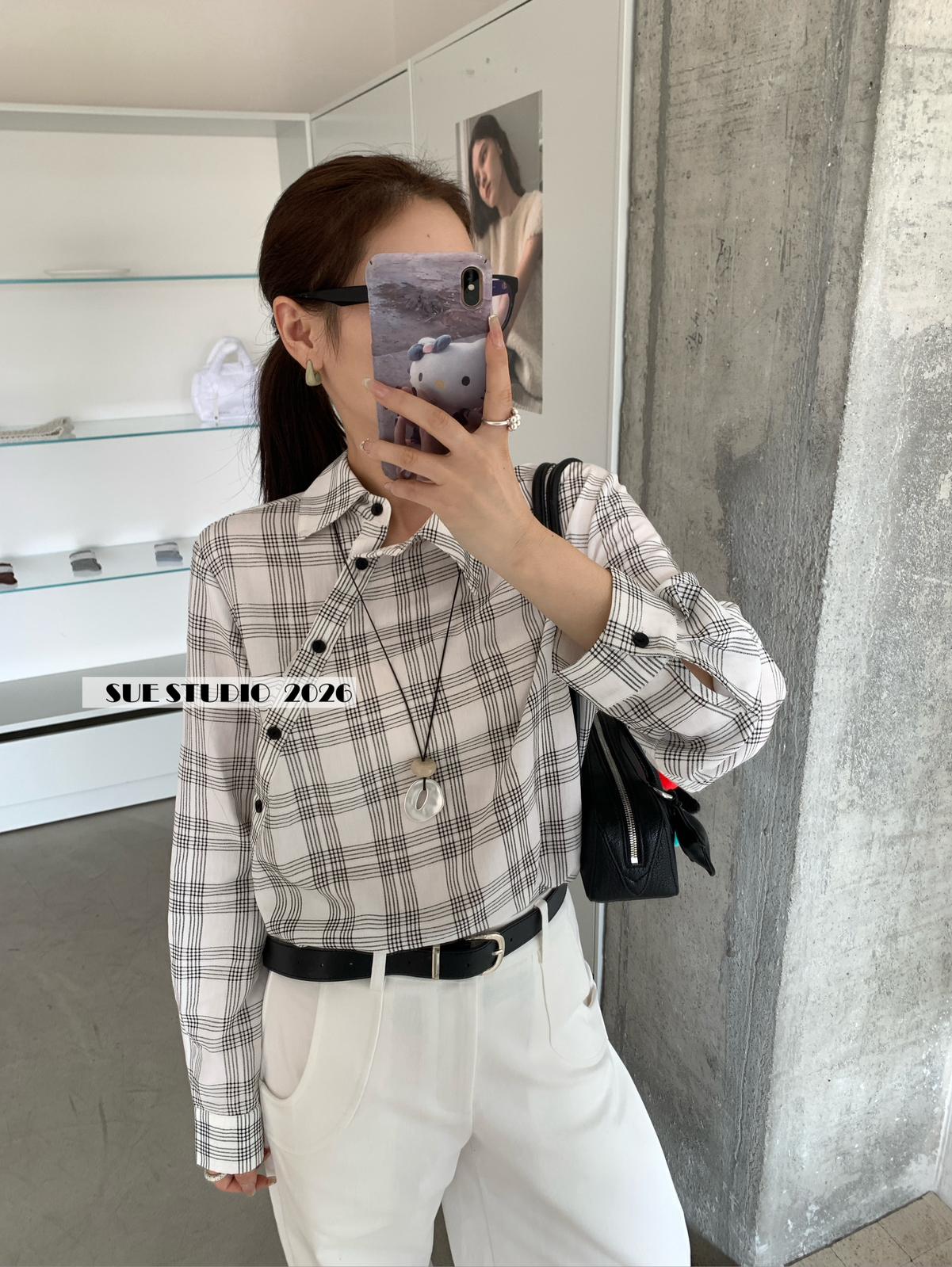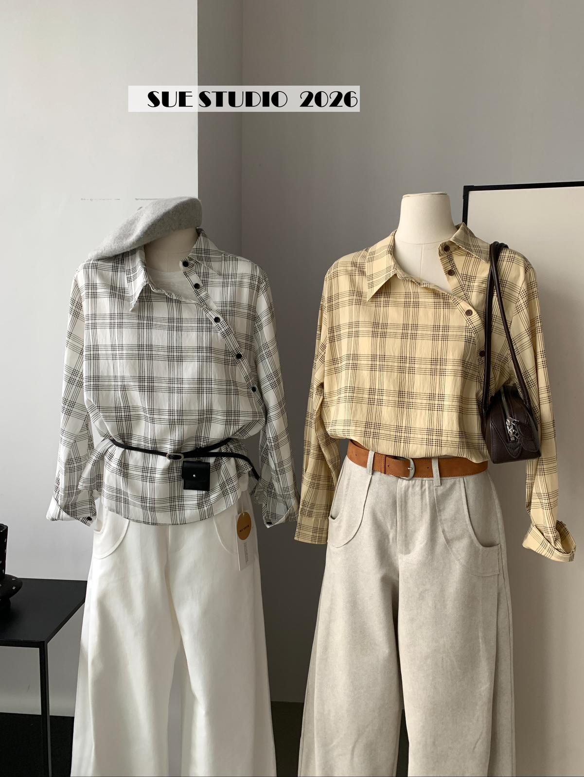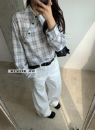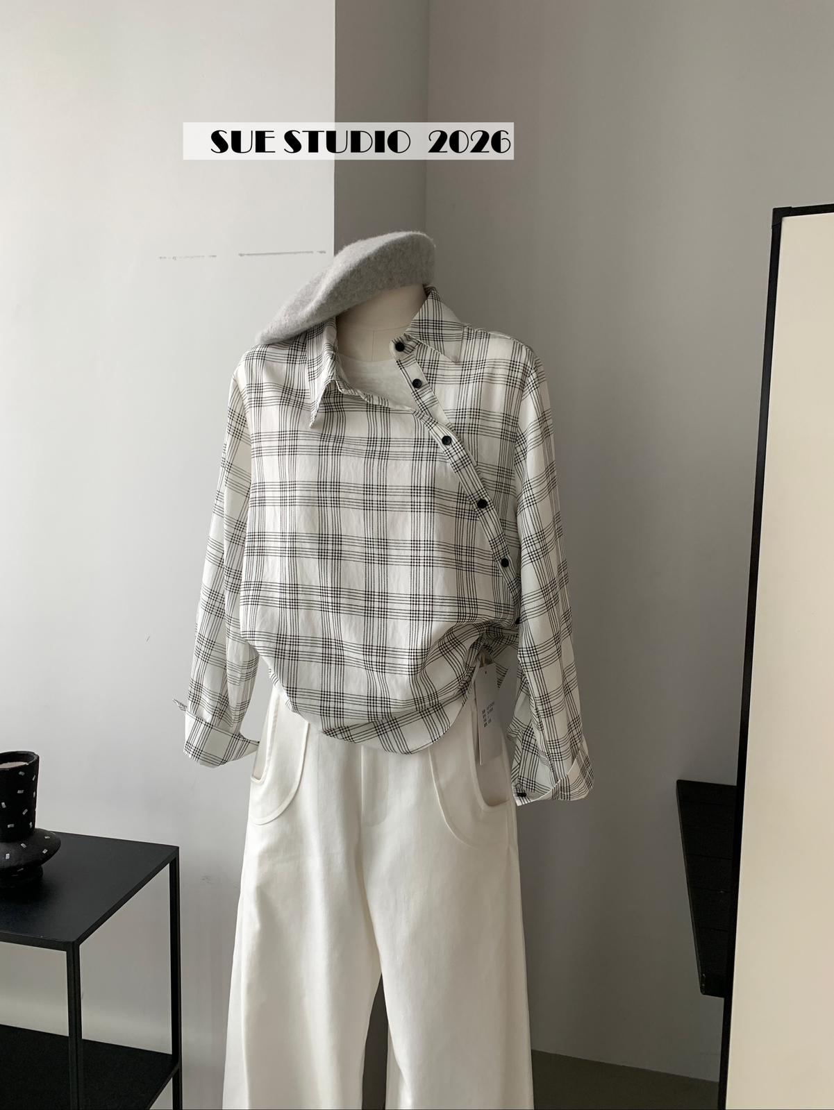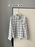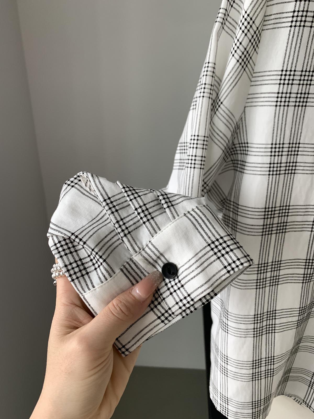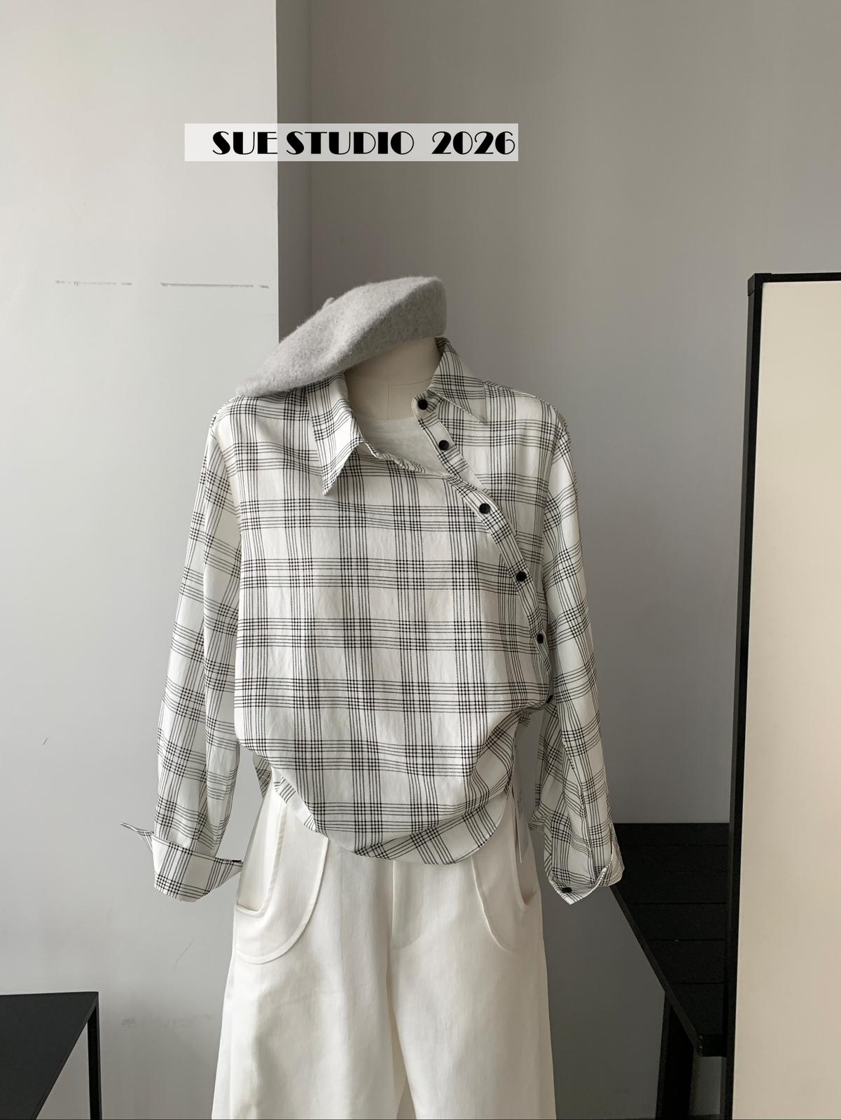 【C8751】韓系簡約設計感不規則格紋襯衫