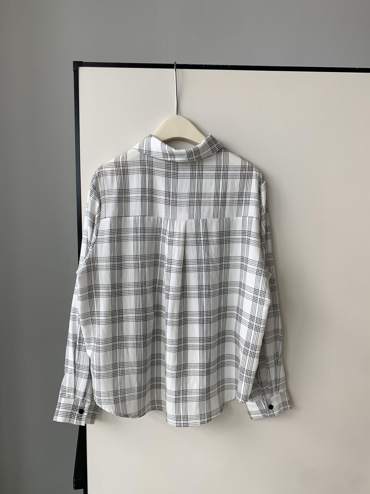 3. 【C8751】韓系簡約設計感不規則格紋襯衫
