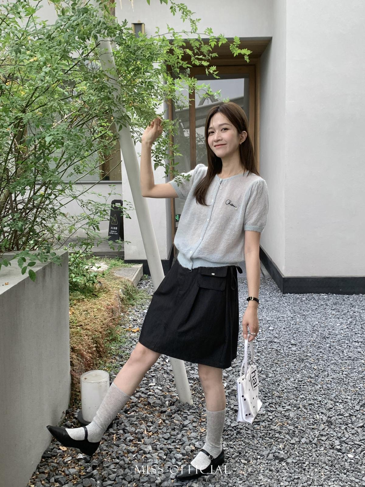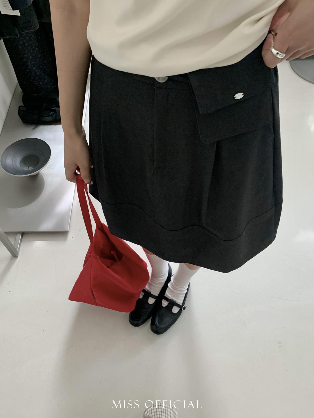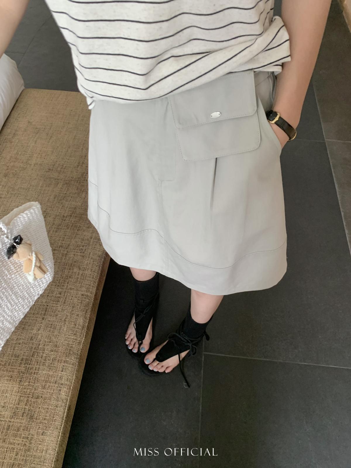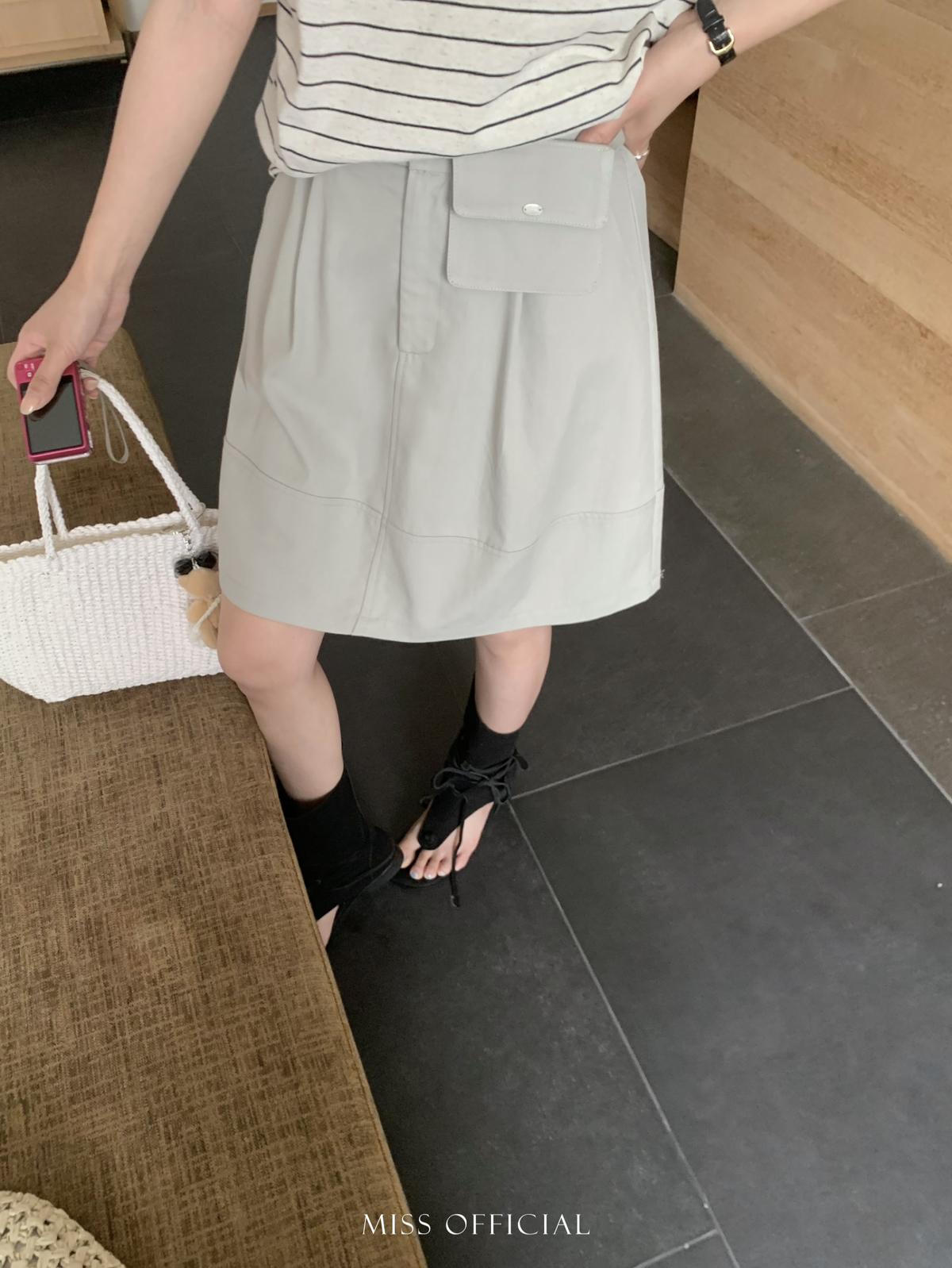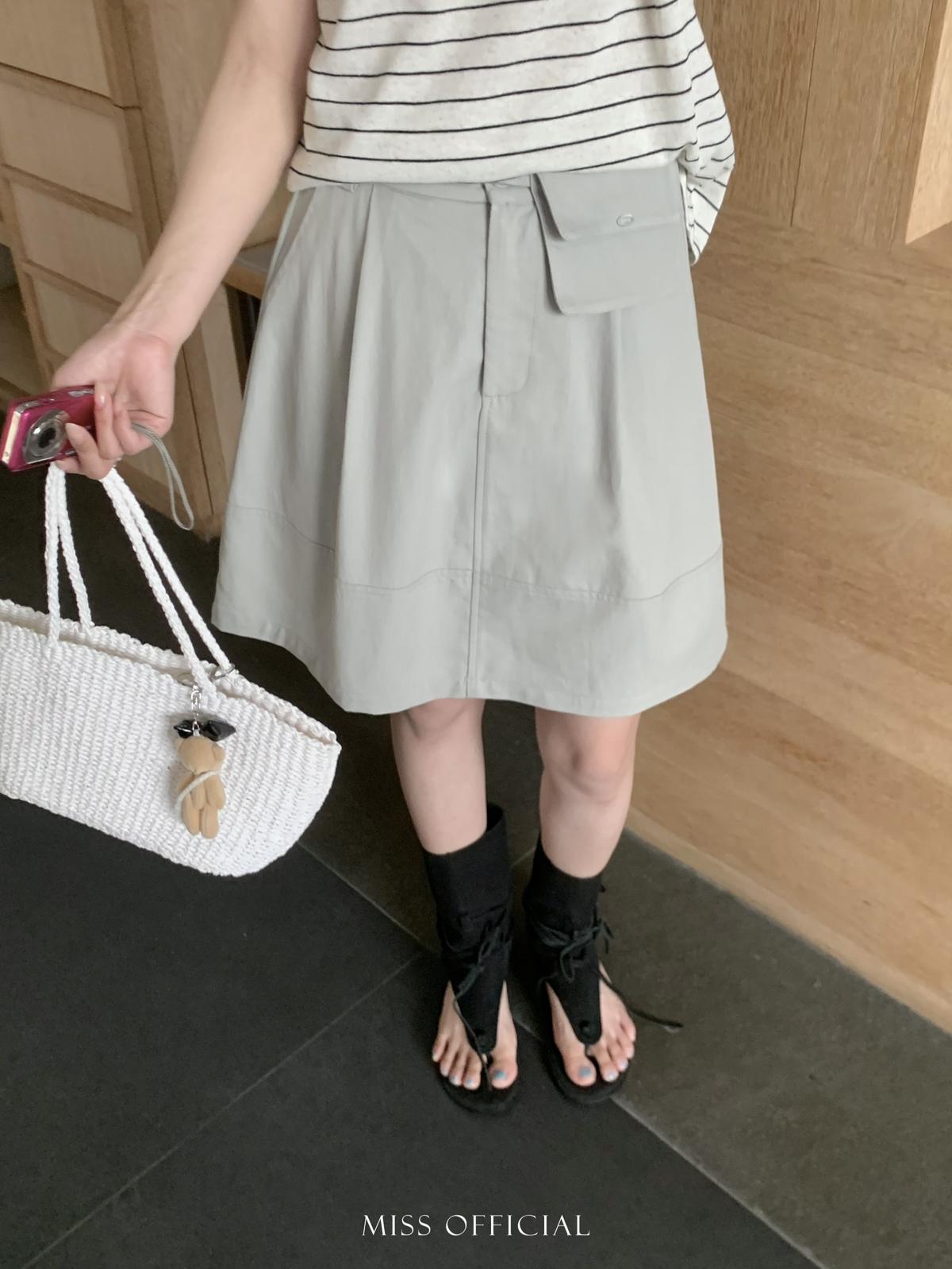 【C8779】韓系休閒風百搭簡約半身裙(配腰包)