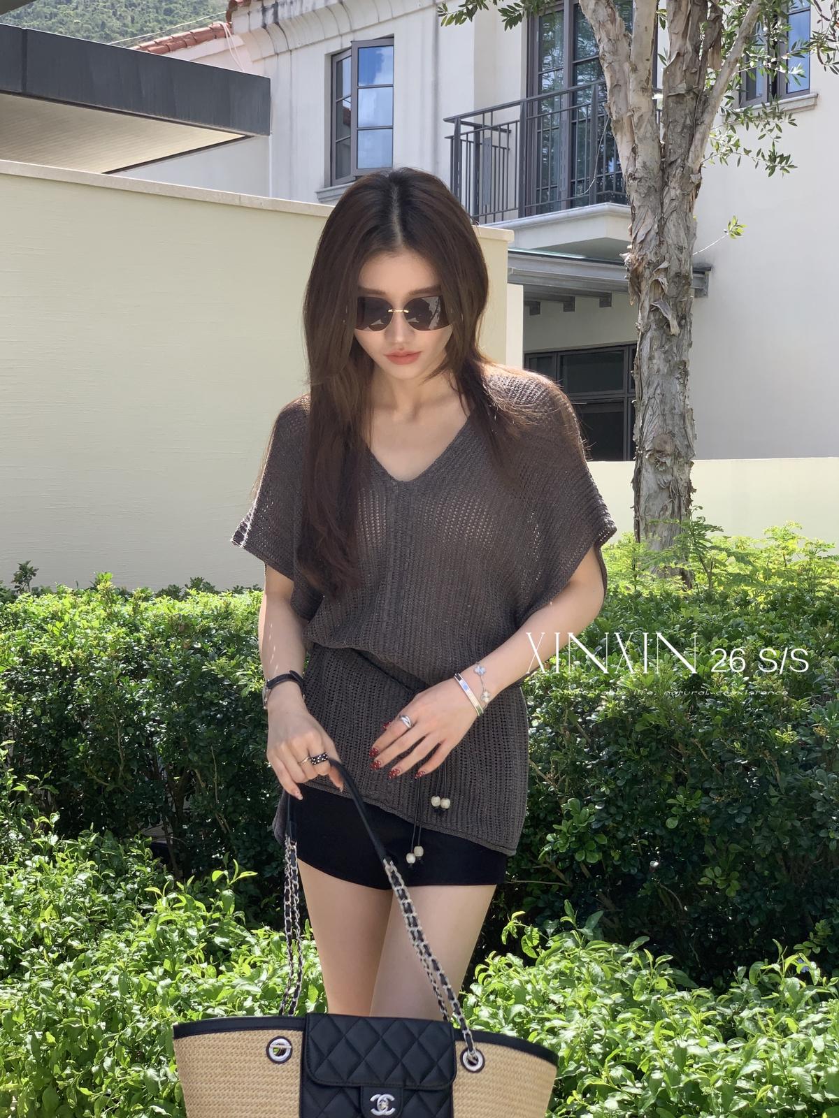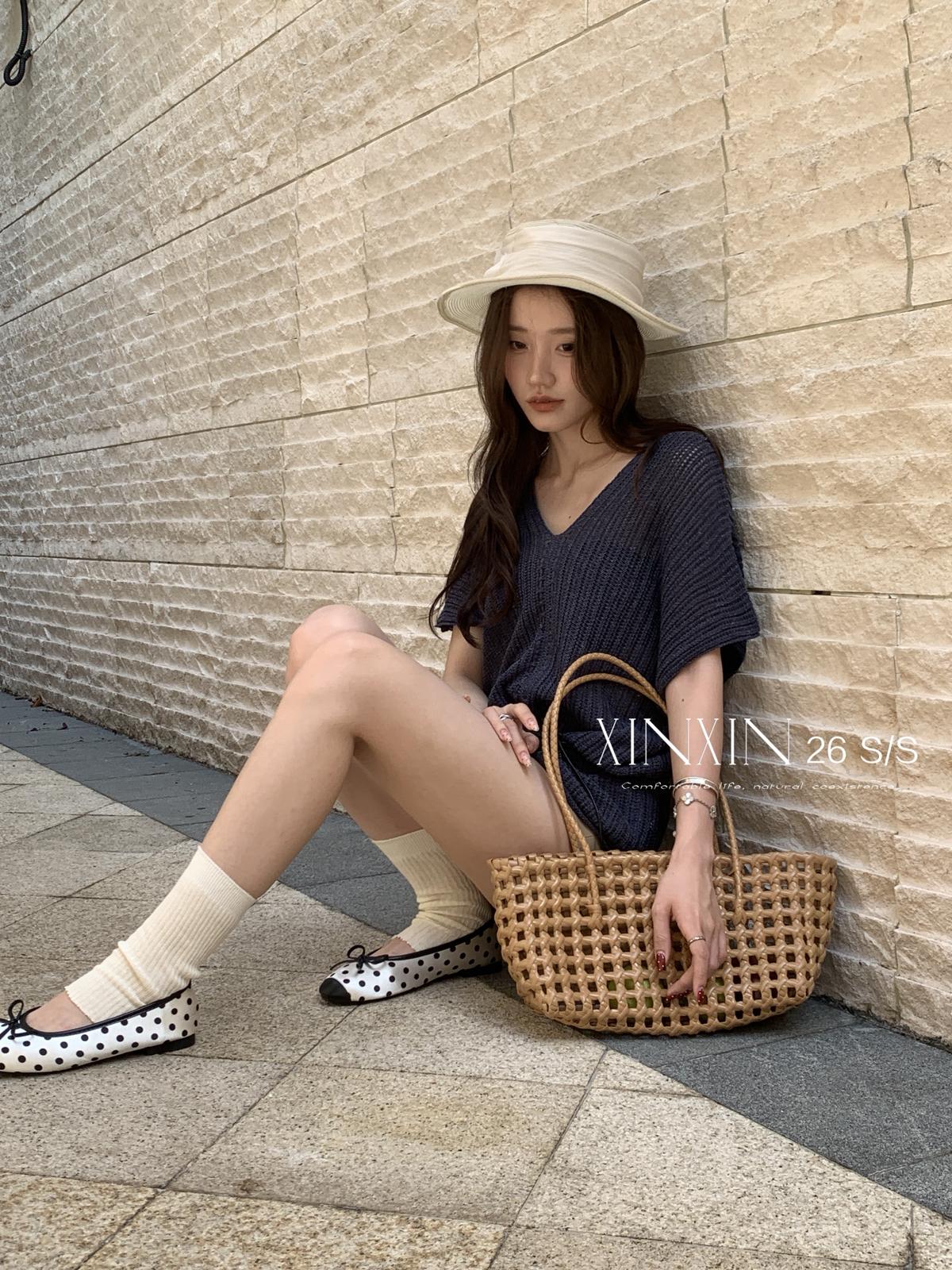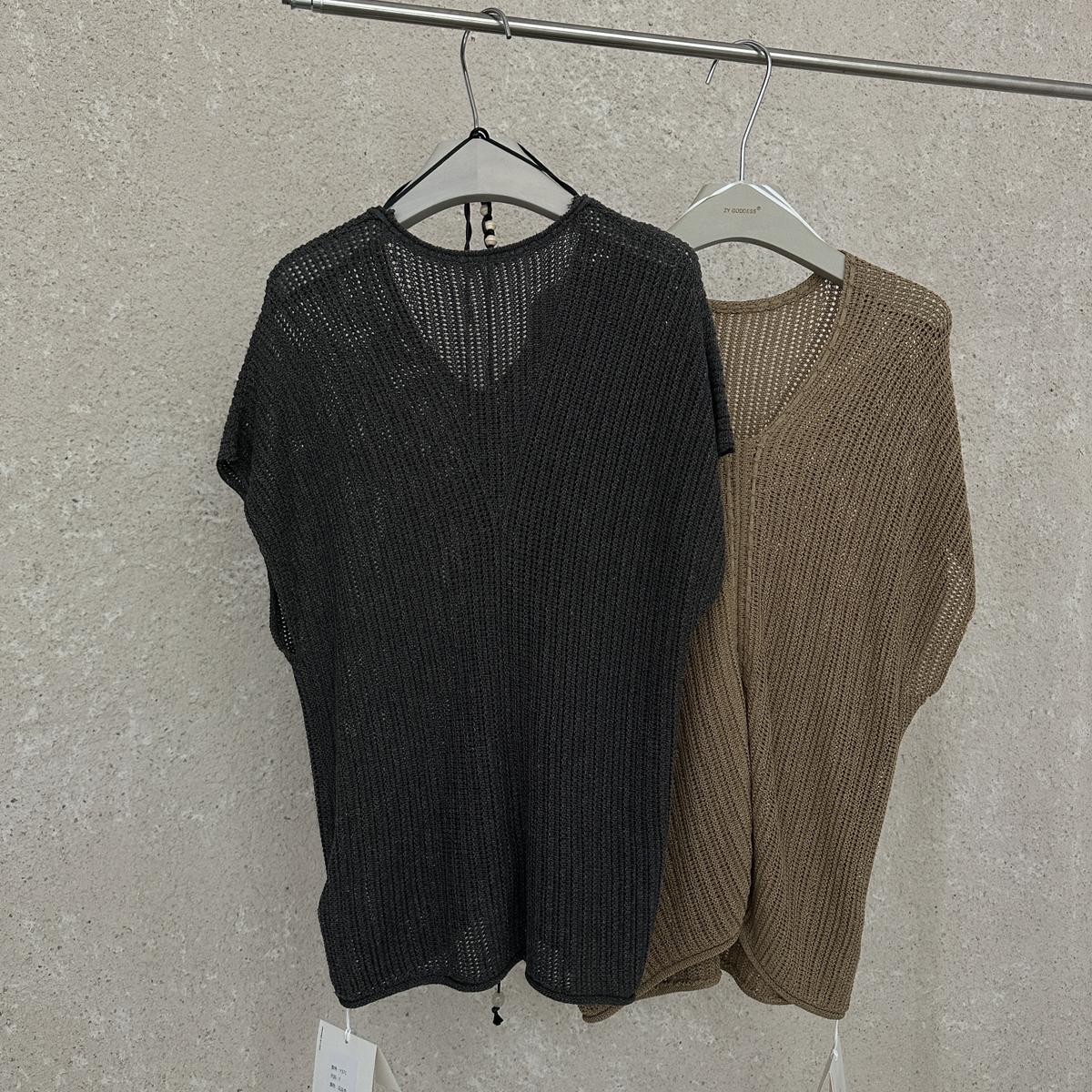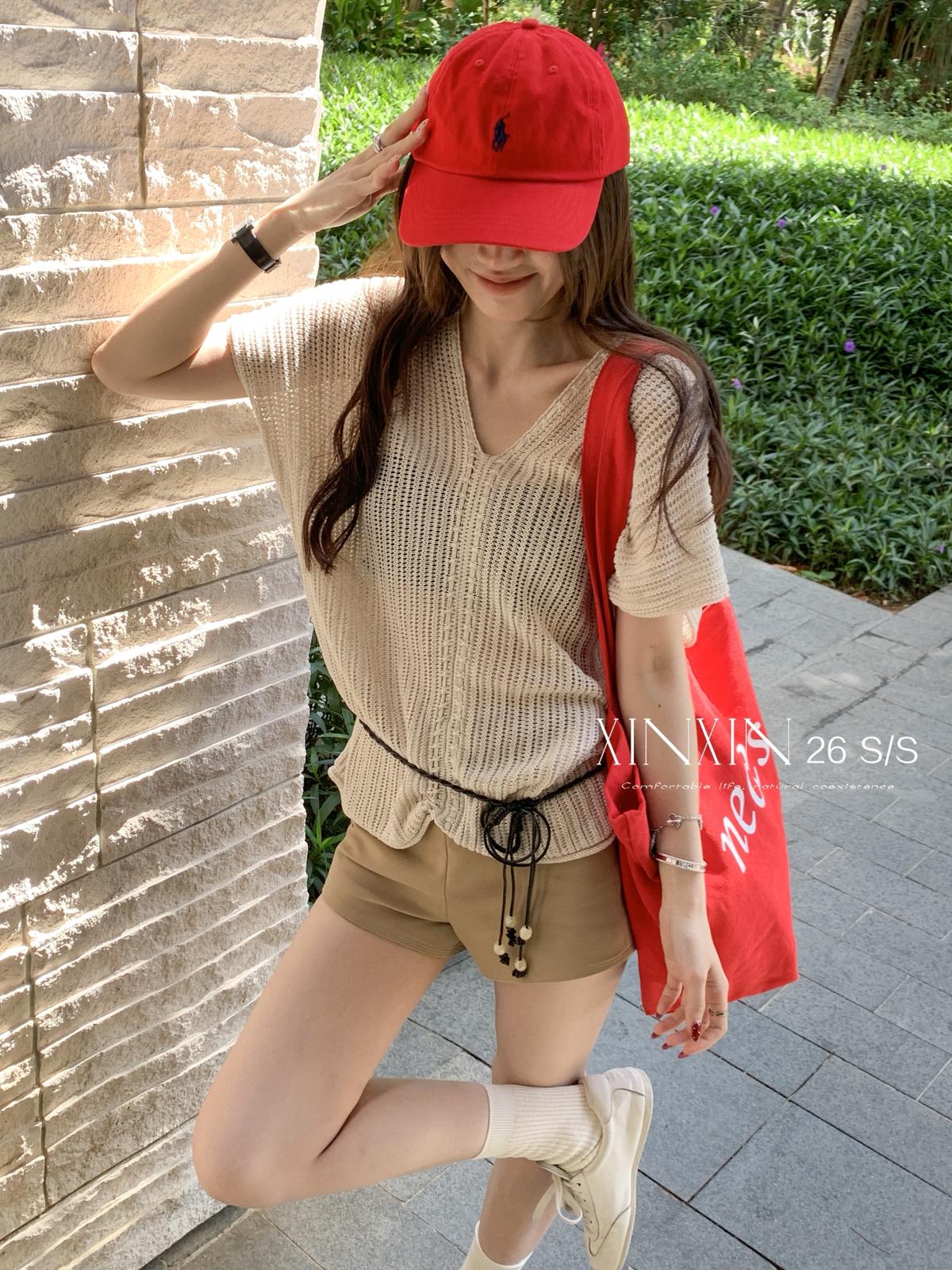 【C8786】“慵懶鬆弛感”韓版簡約V領坑條肌理感寬鬆蝙蝠袖針織衫(配腰繩)