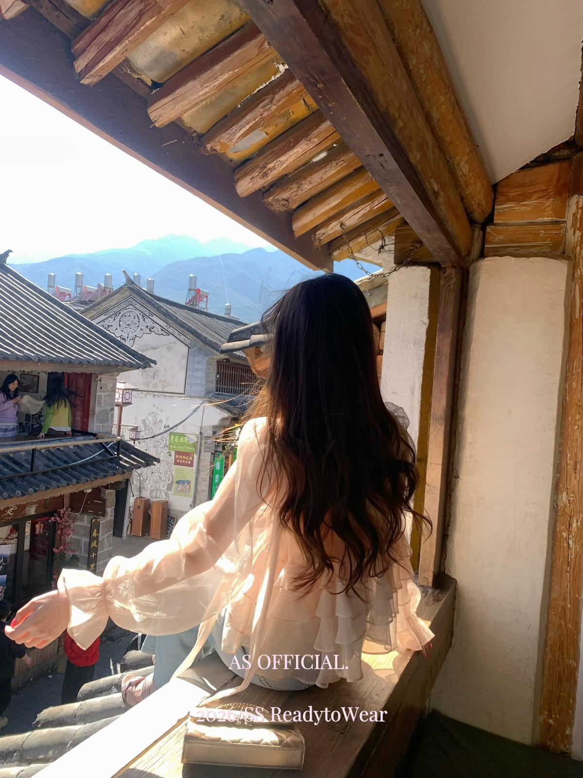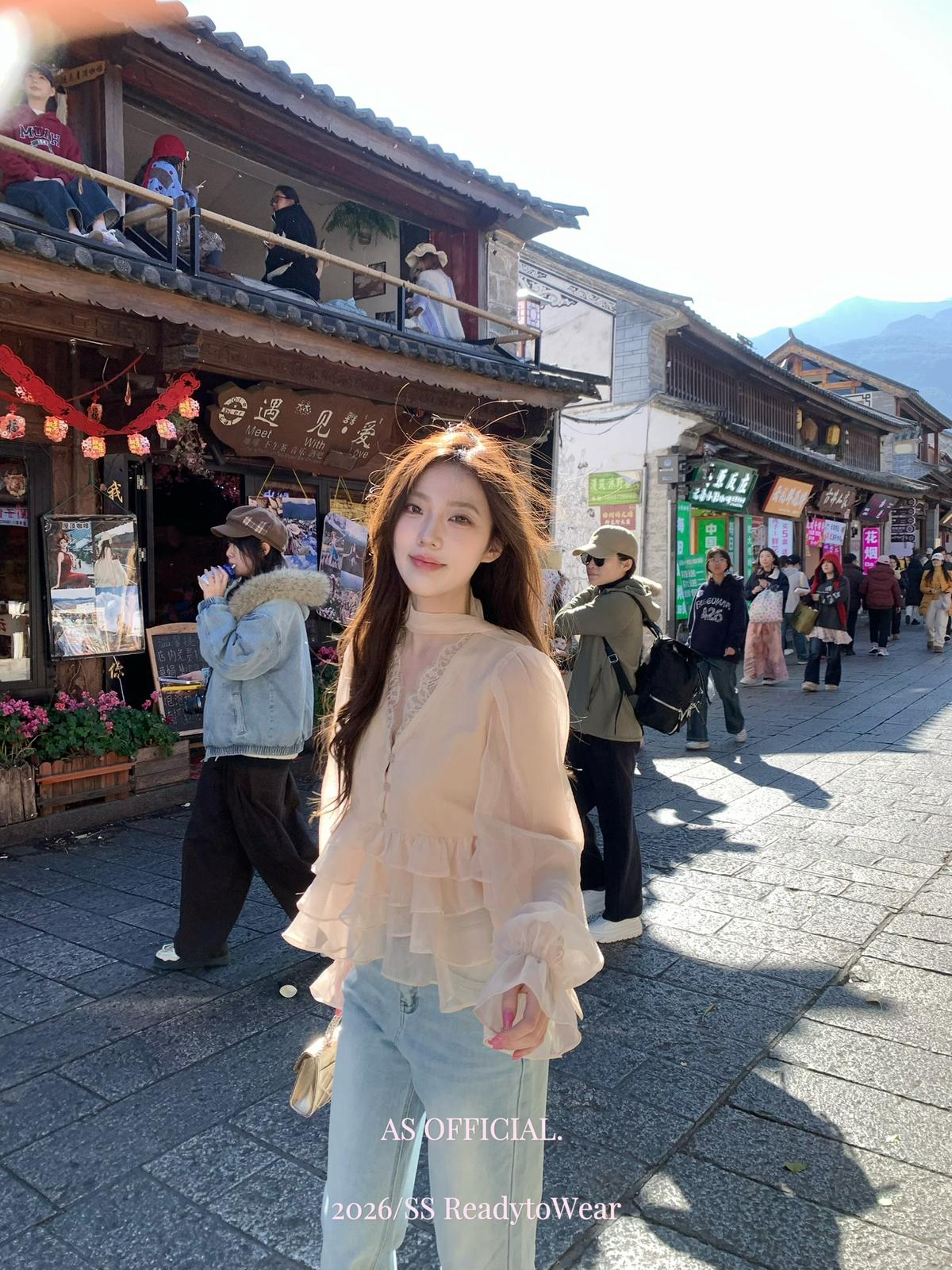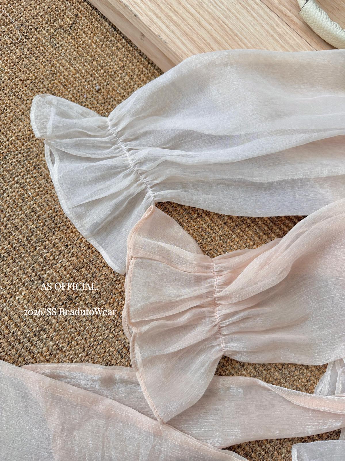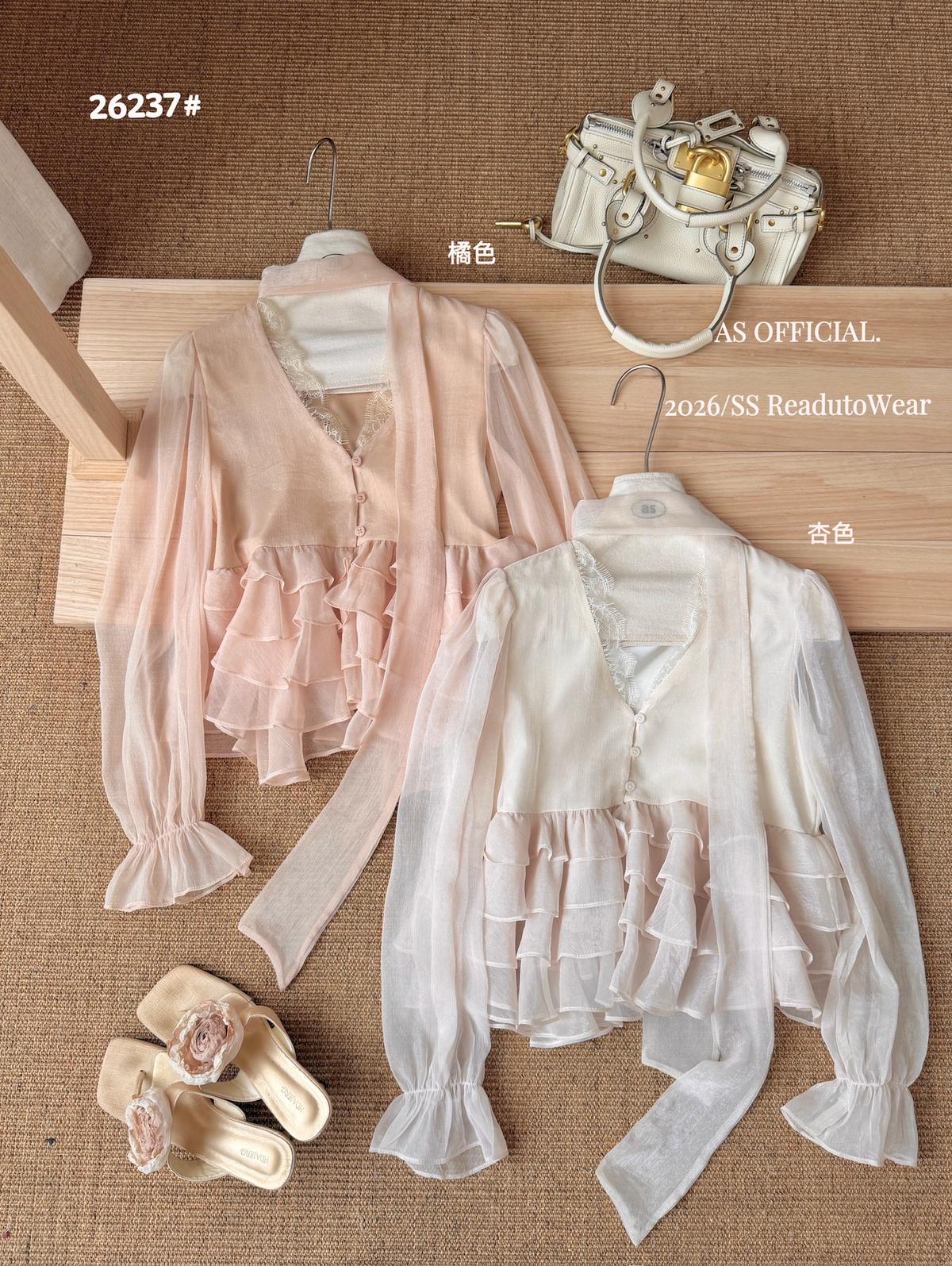 【C8794】高顏品!墜入雲絮的溫柔·爆好賣·重工法蕾荷葉花邊拼接雪紡小衫(配飄帶)(26年早春!)