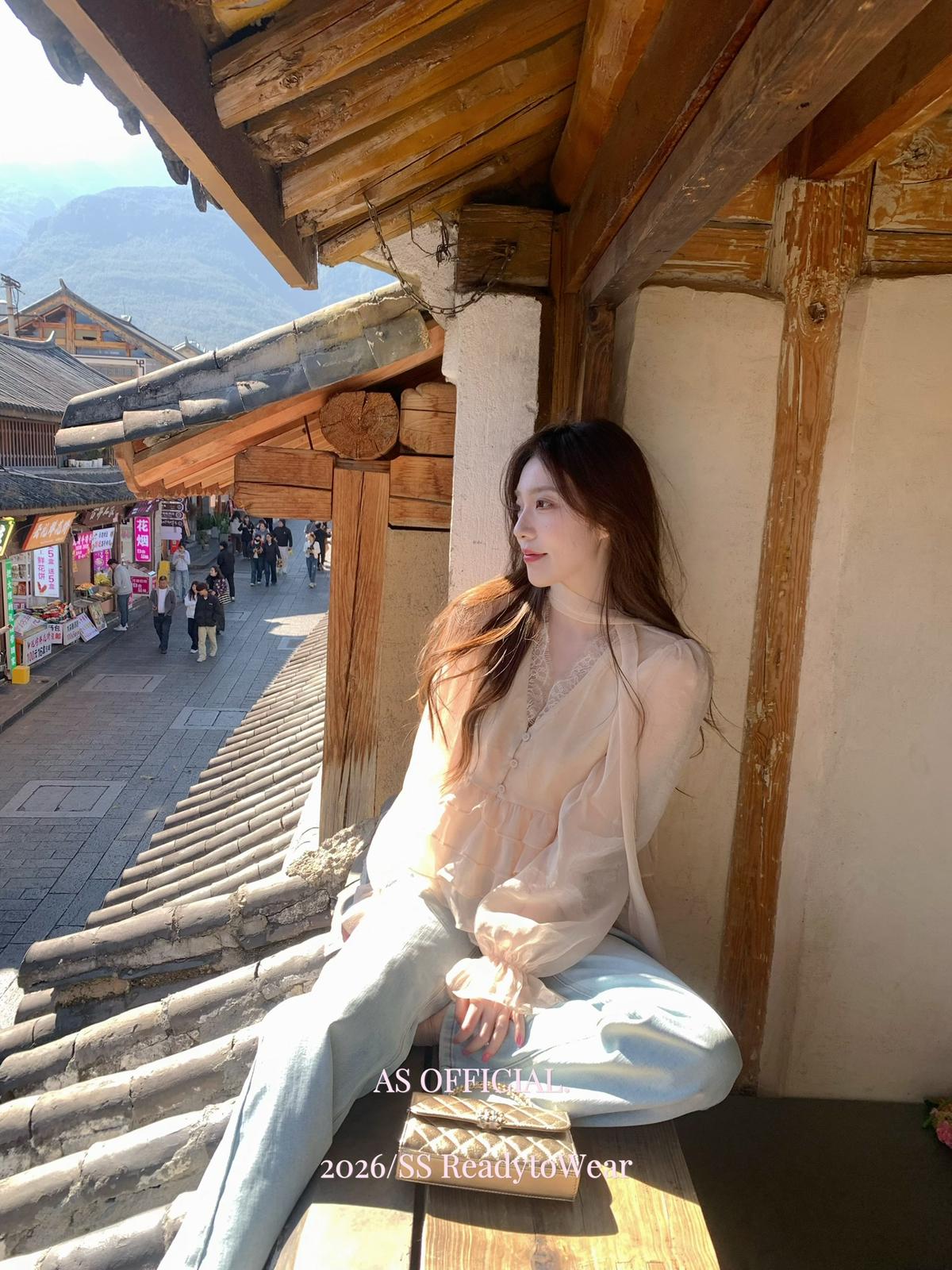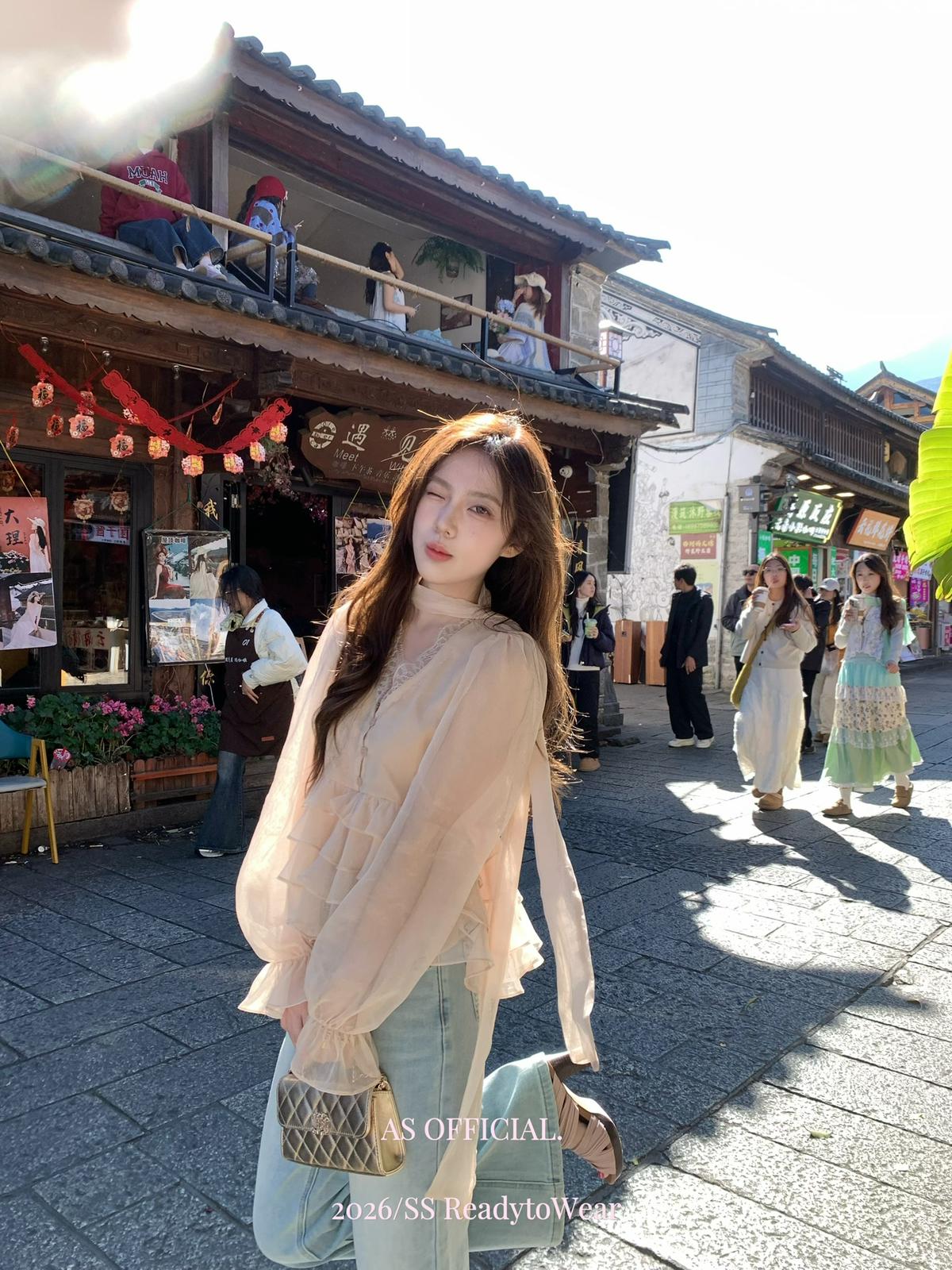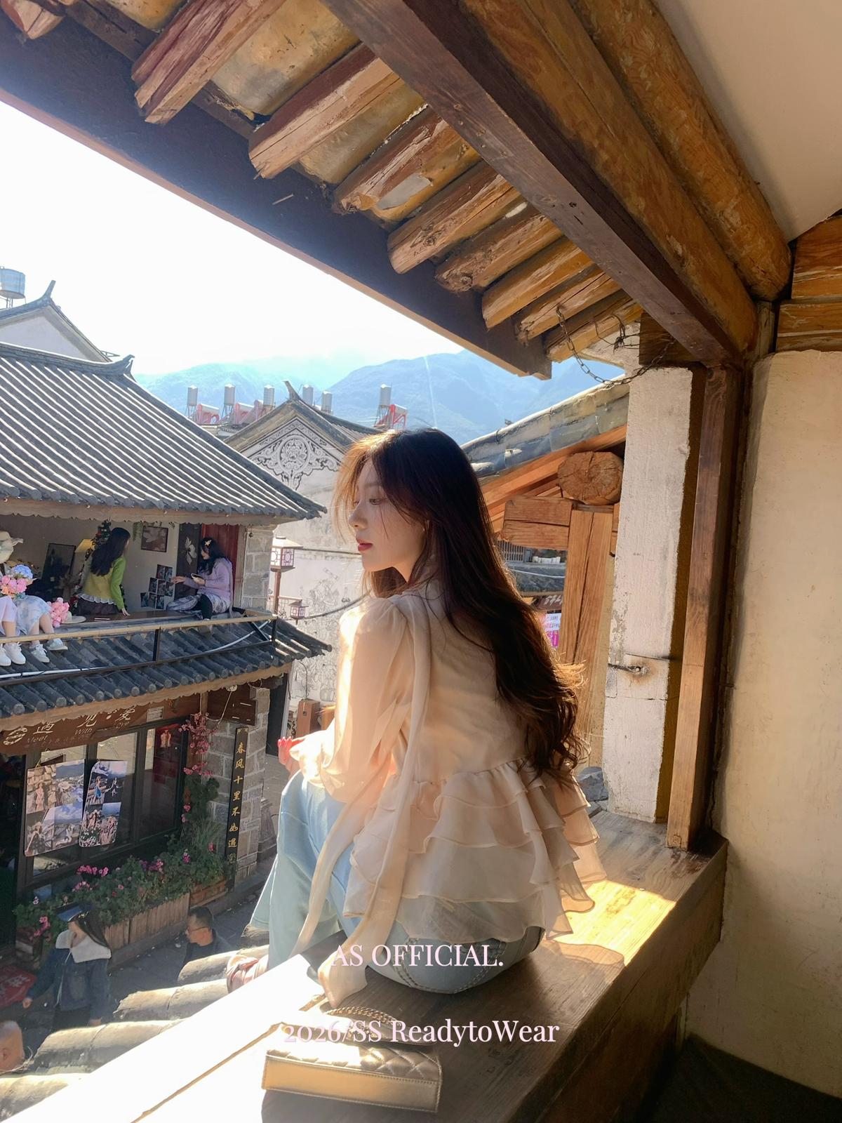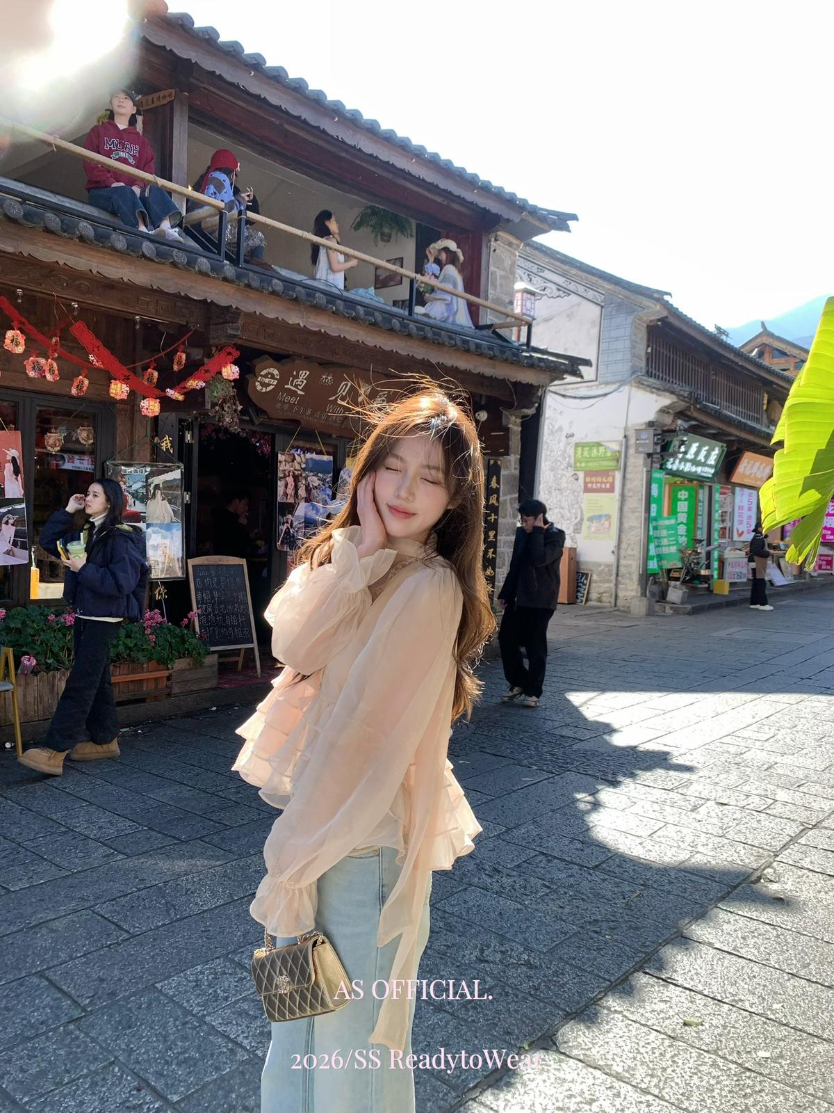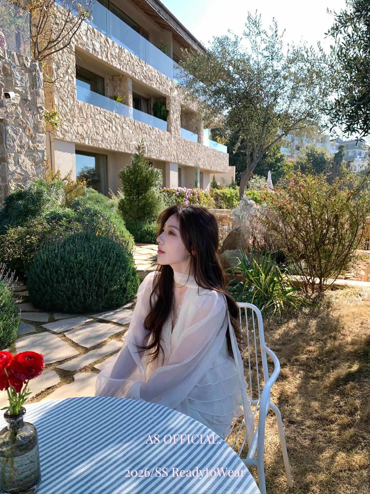 【C8794】高顏品!墜入雲絮的溫柔·爆好賣·重工法蕾荷葉花邊拼接雪紡小衫(配飄帶)(26年早春!)