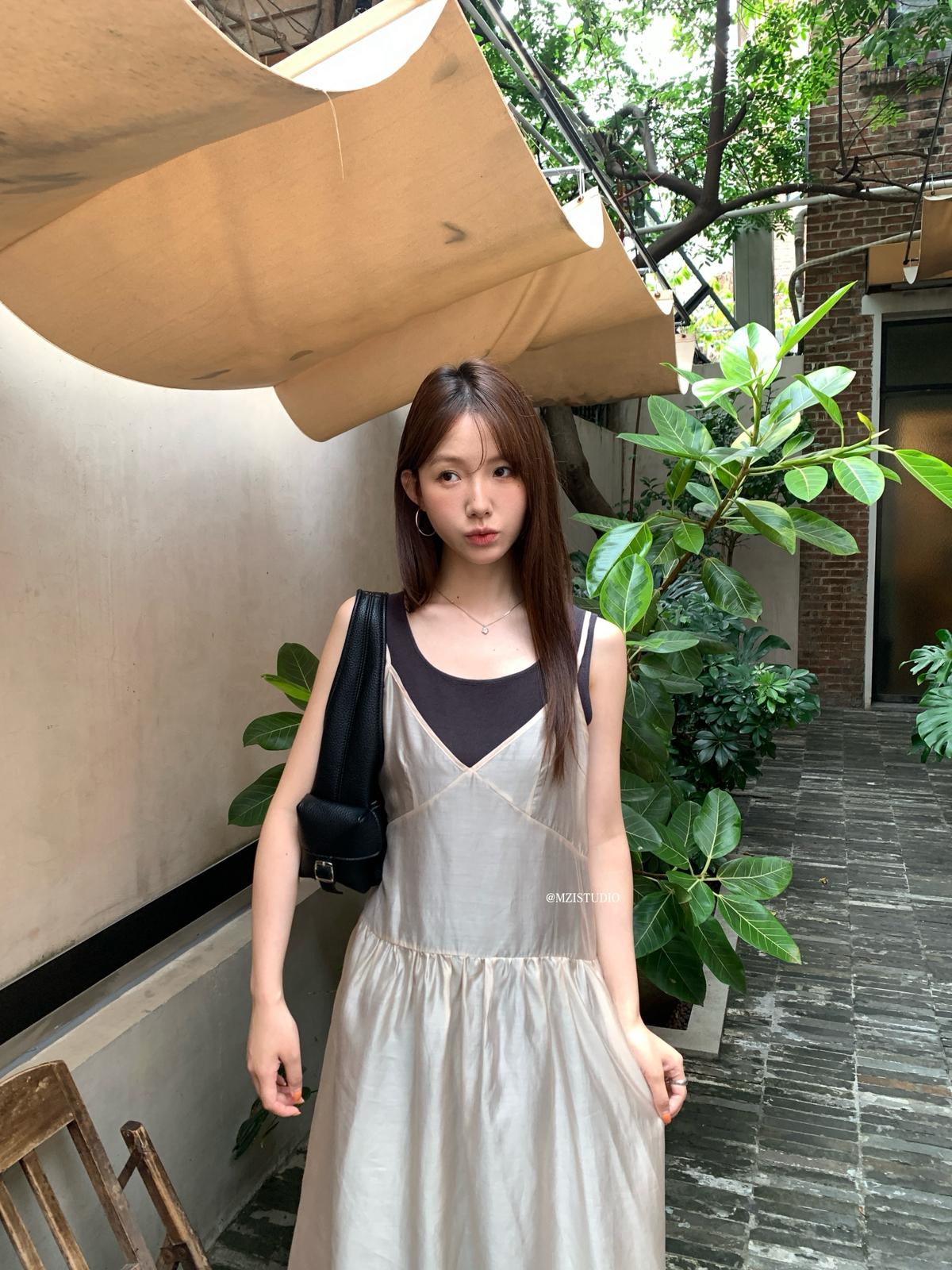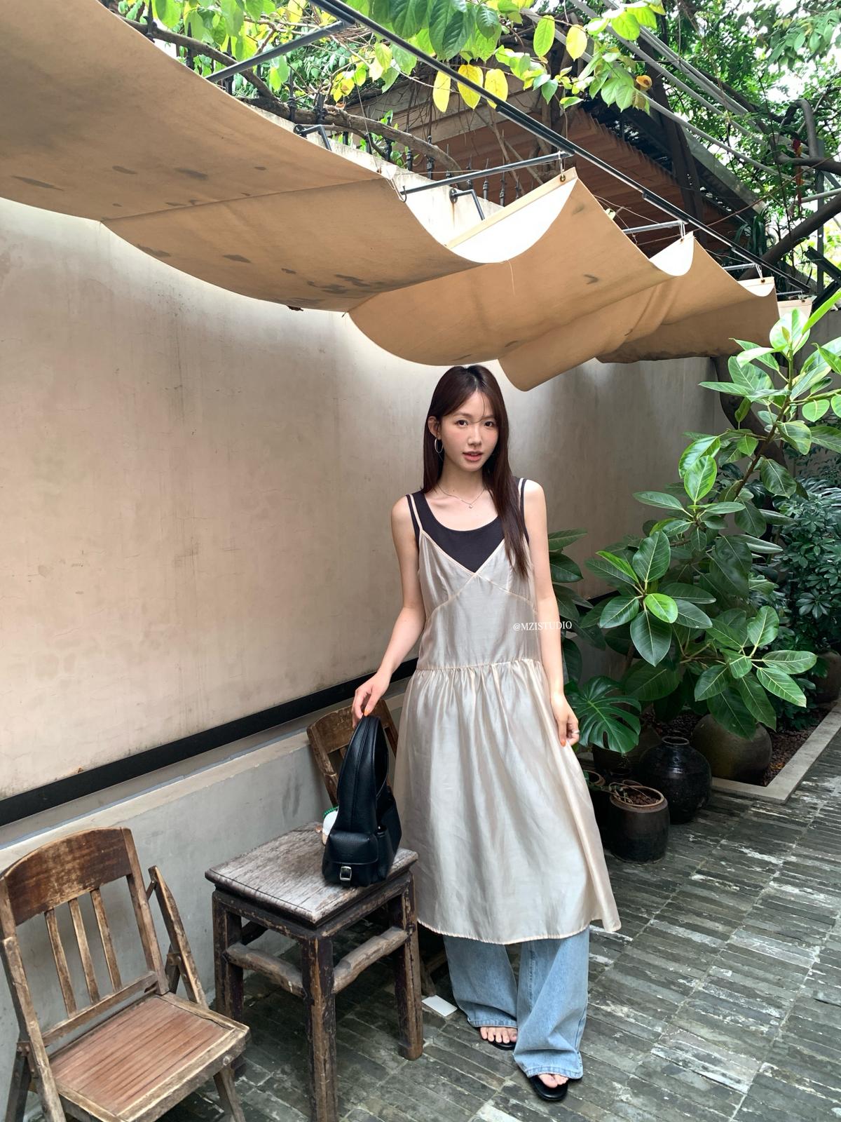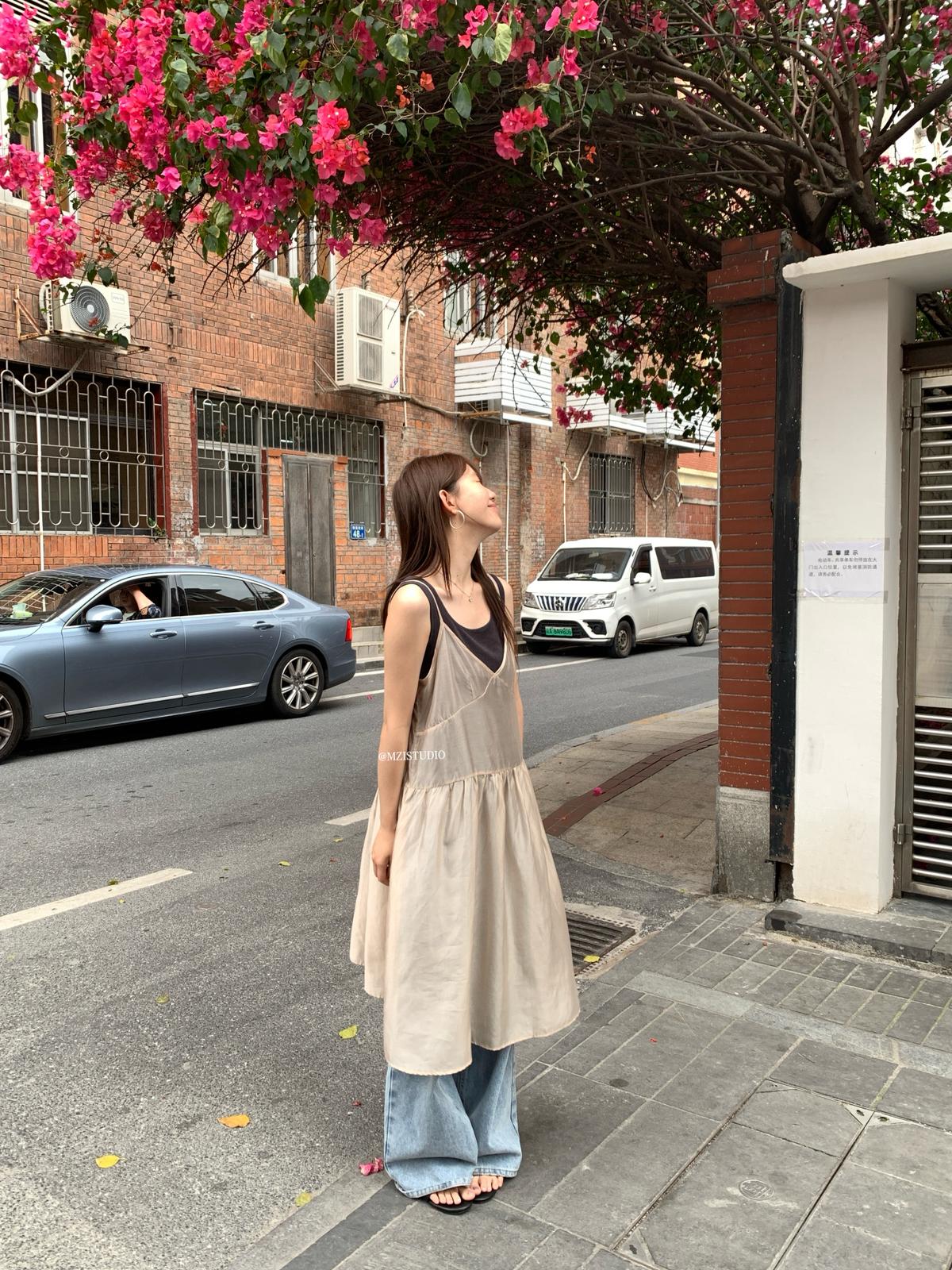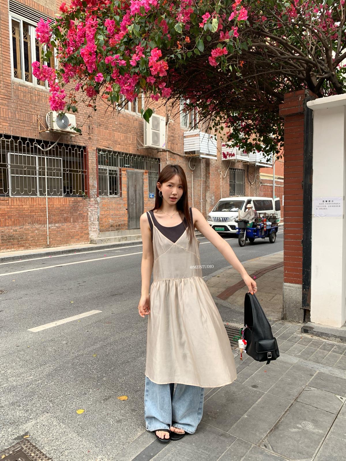 【C8821】目之所及的驚豔韓系春日度假風少女感飄逸簡約氣質優雅吊帶連衣裙(只賣連衣裙)