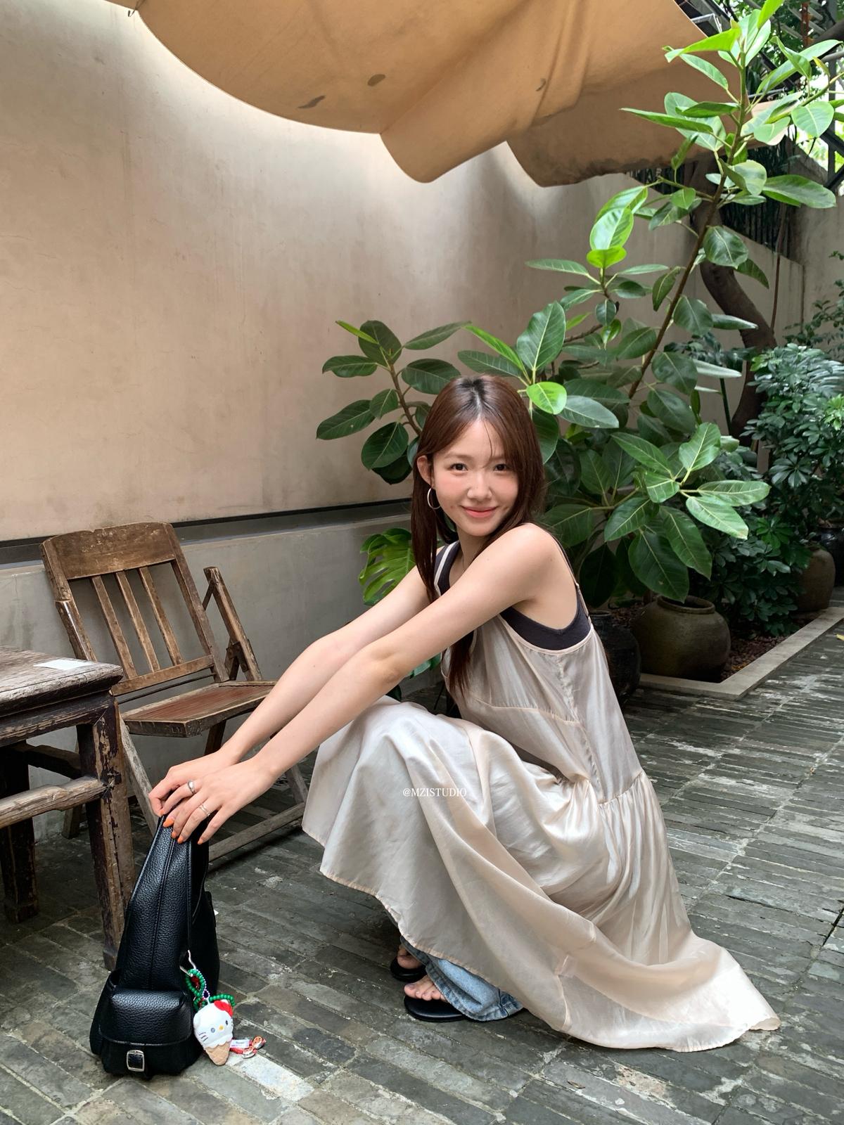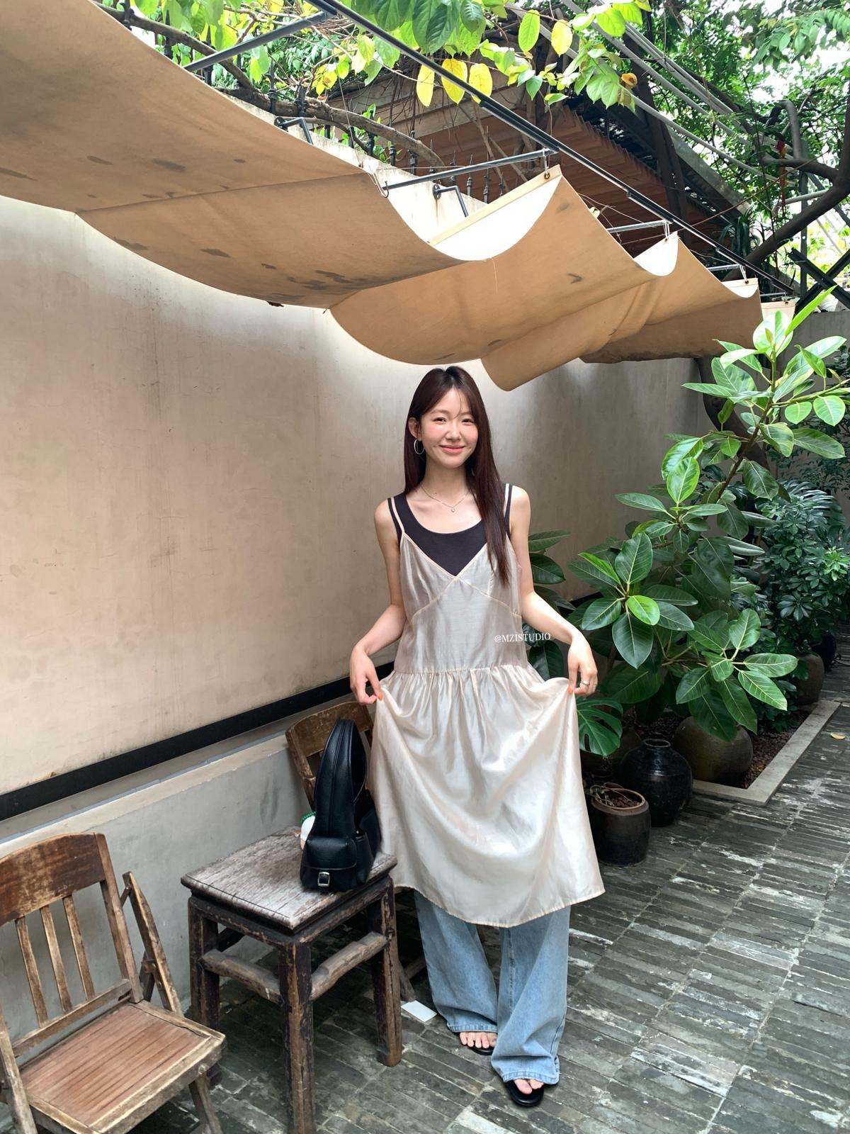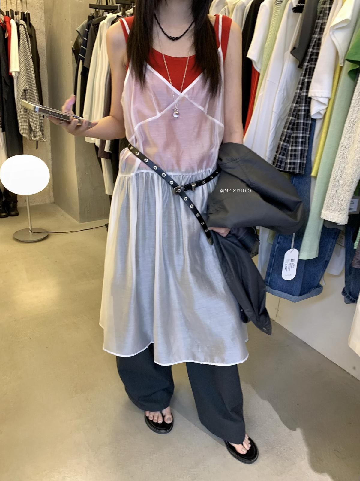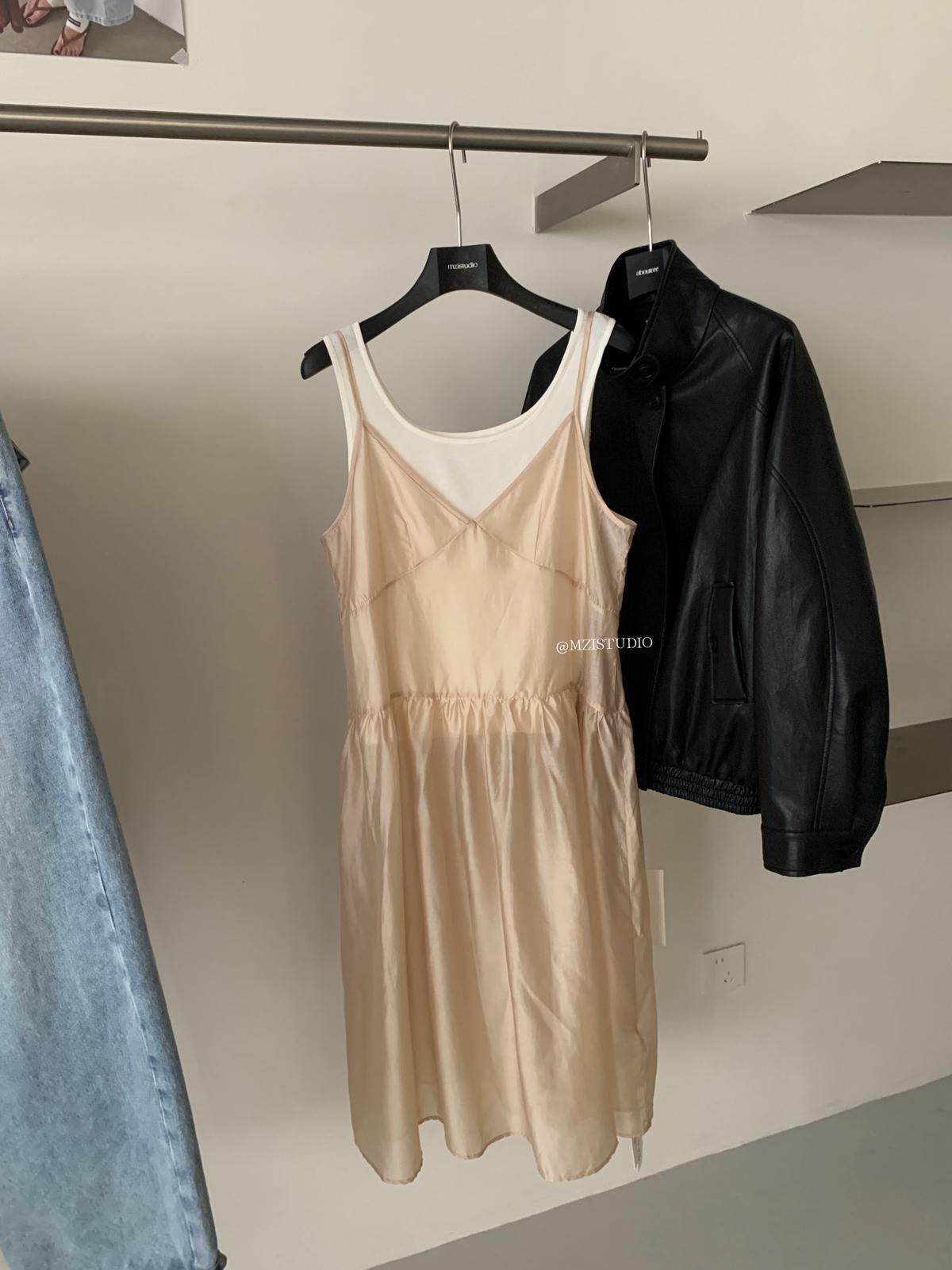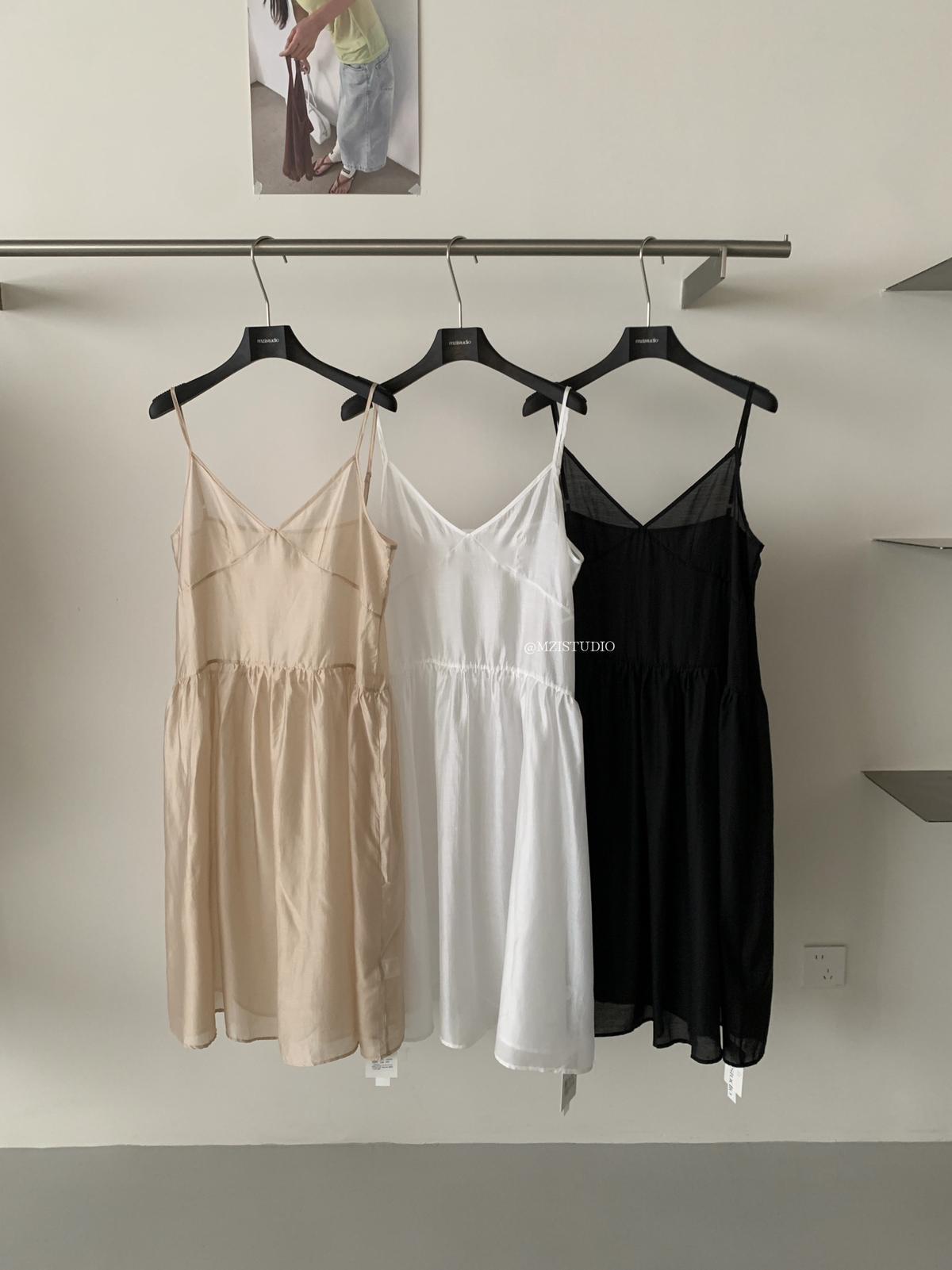 【C8821】目之所及的驚豔韓系春日度假風少女感飄逸簡約氣質優雅吊帶連衣裙(只賣連衣裙)