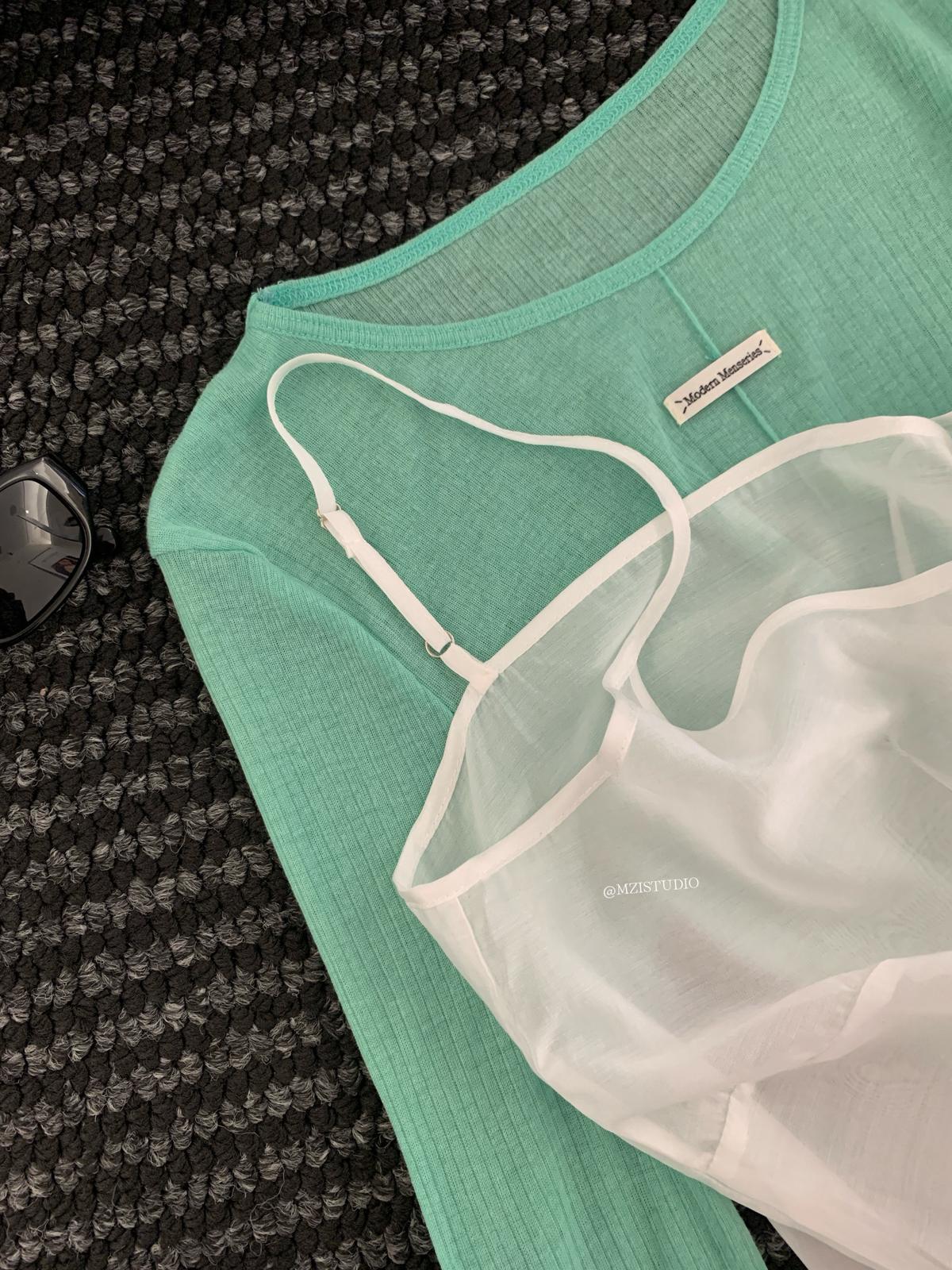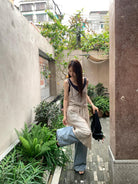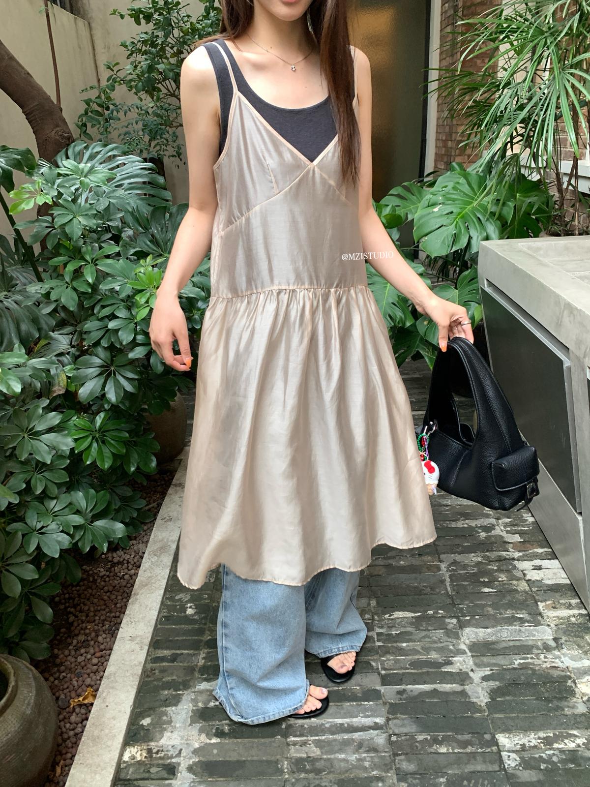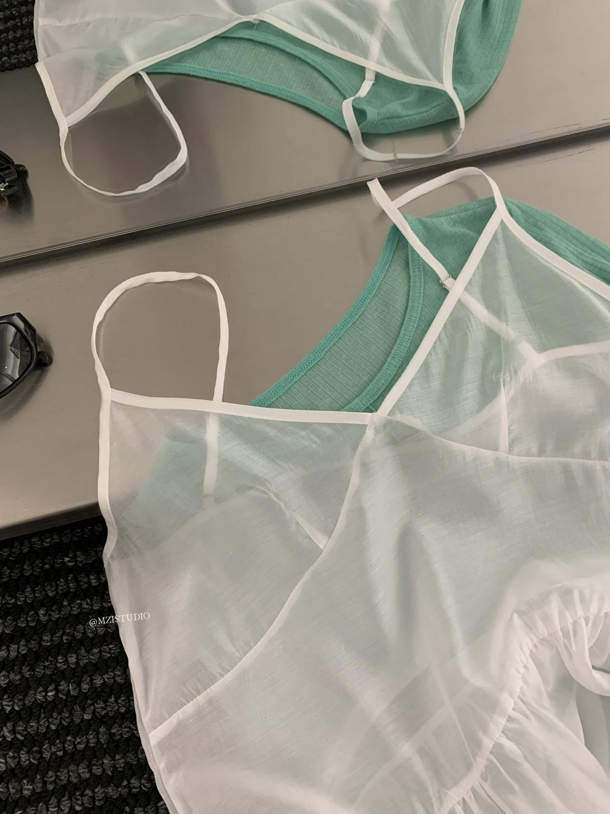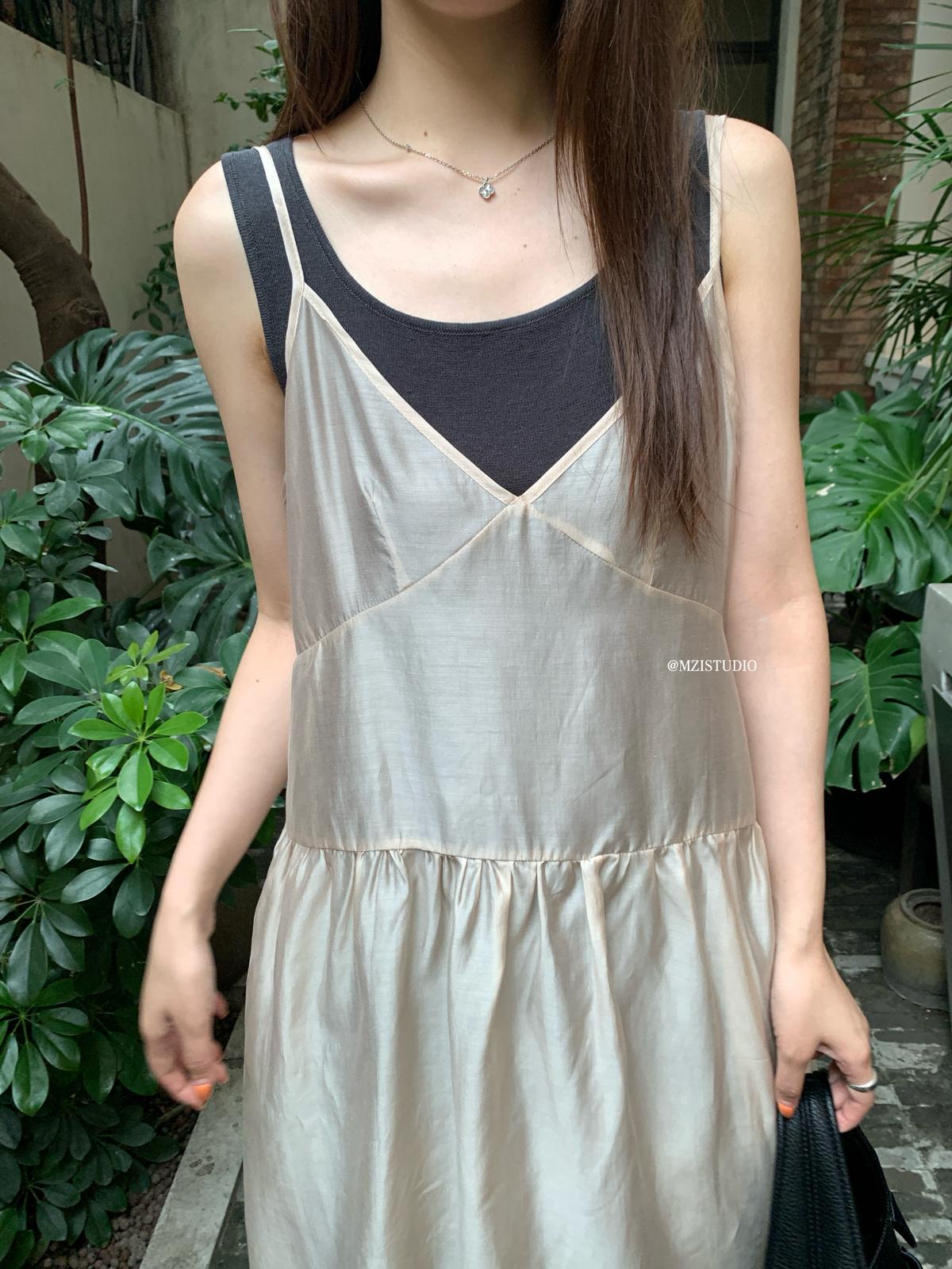【C8821】目之所及的驚豔韓系春日度假風少女感飄逸簡約氣質優雅吊帶連衣裙(只賣連衣裙)