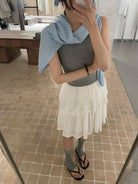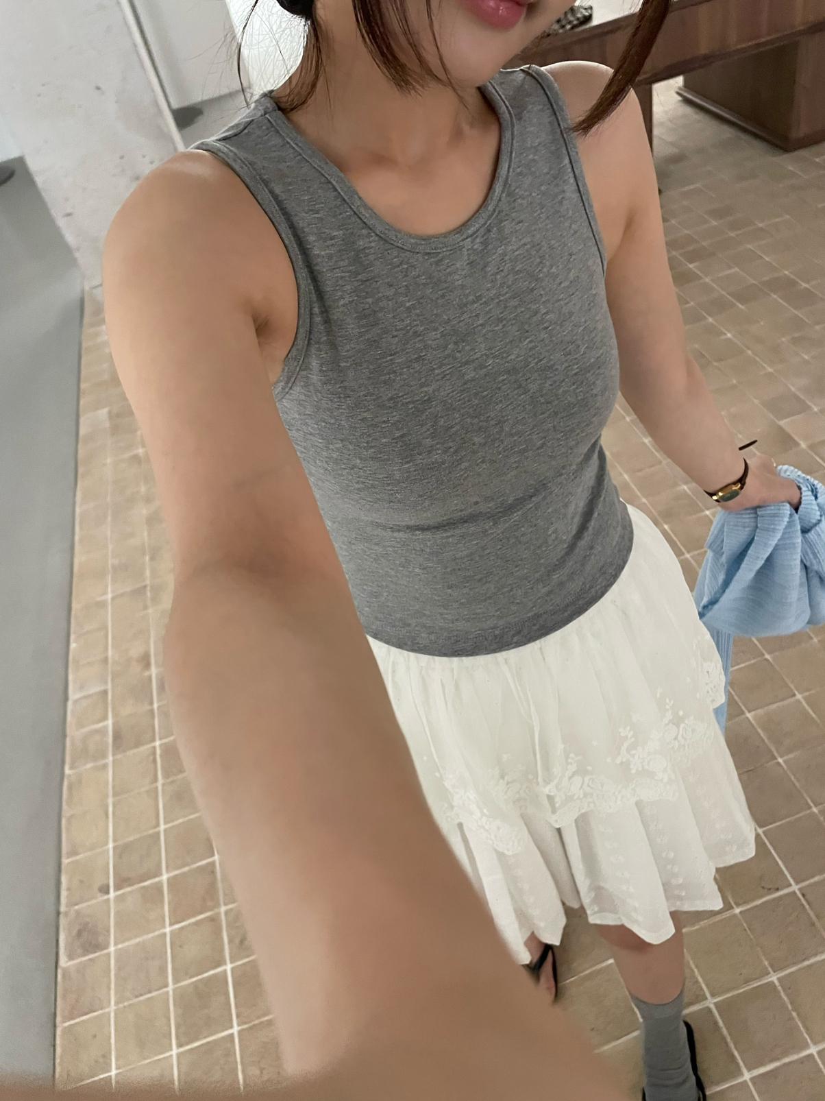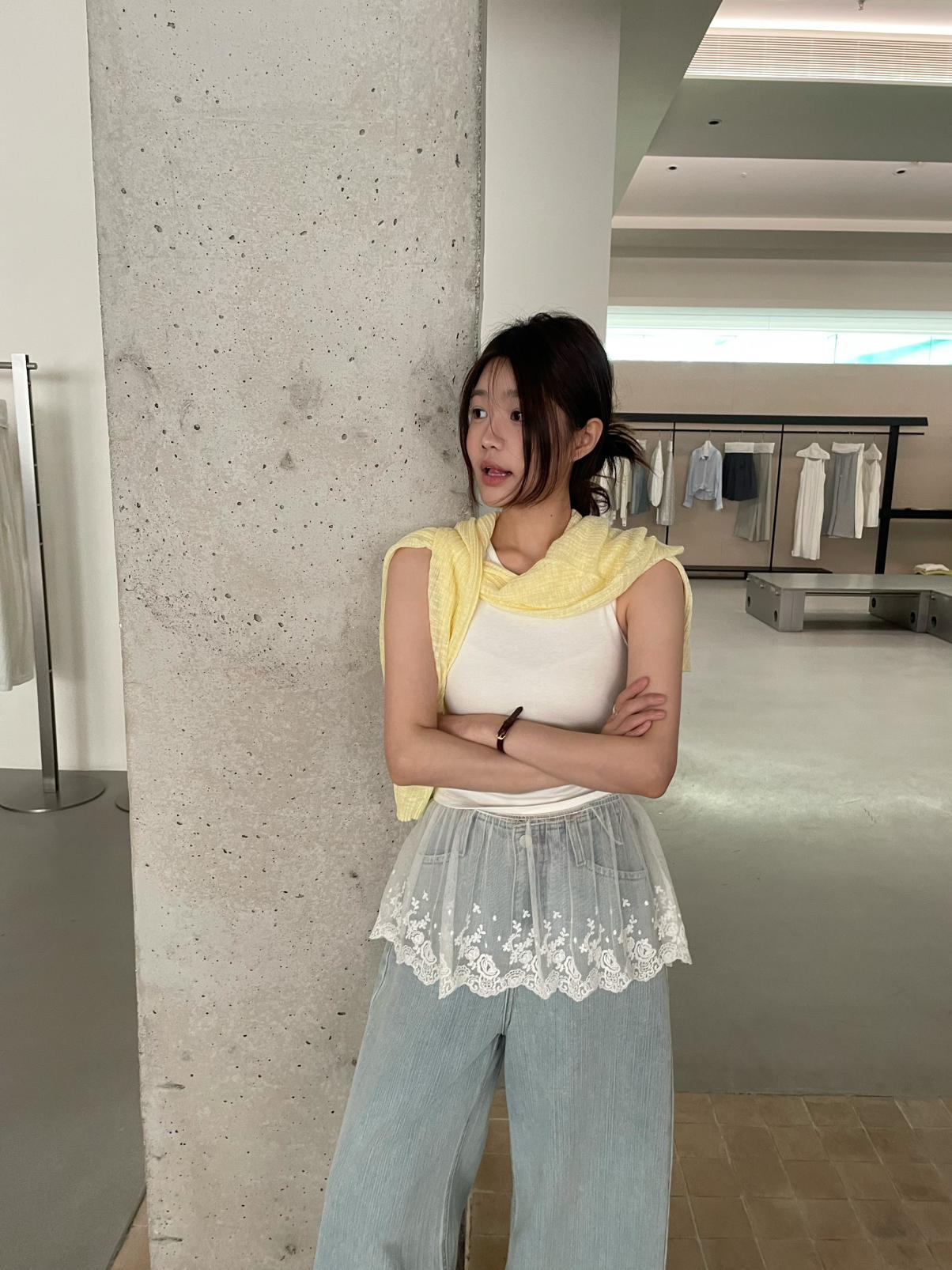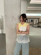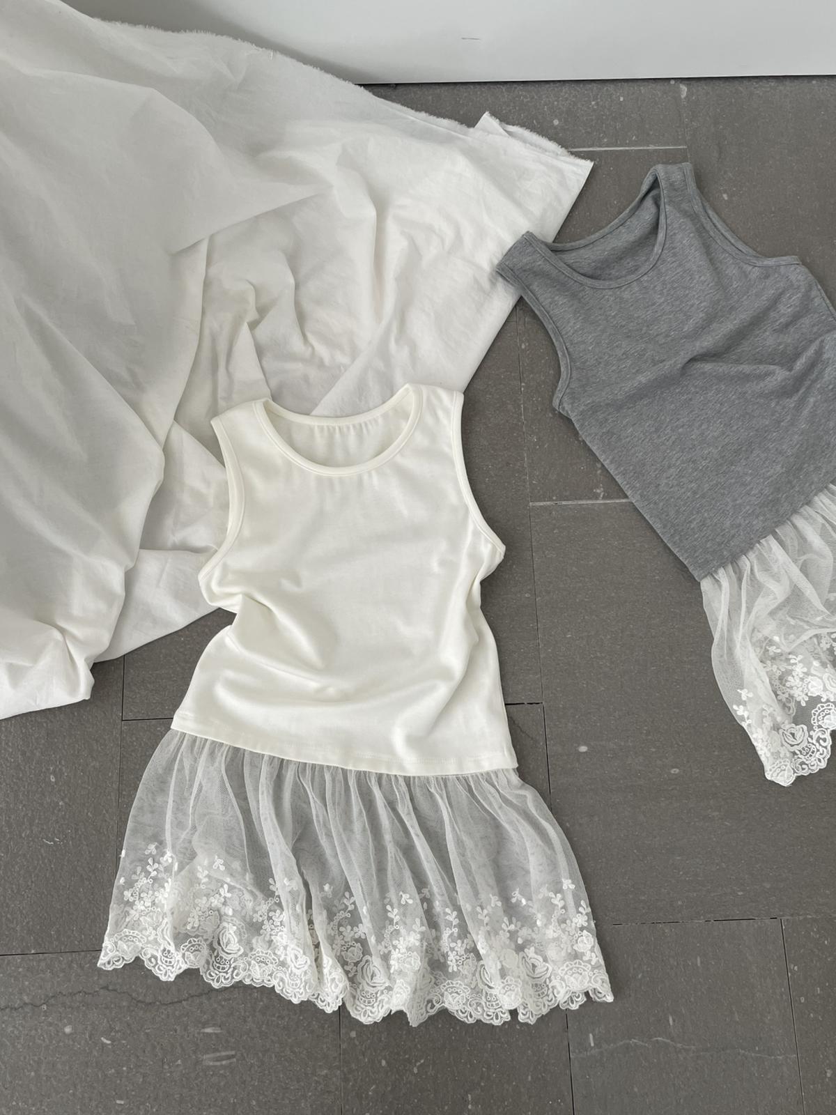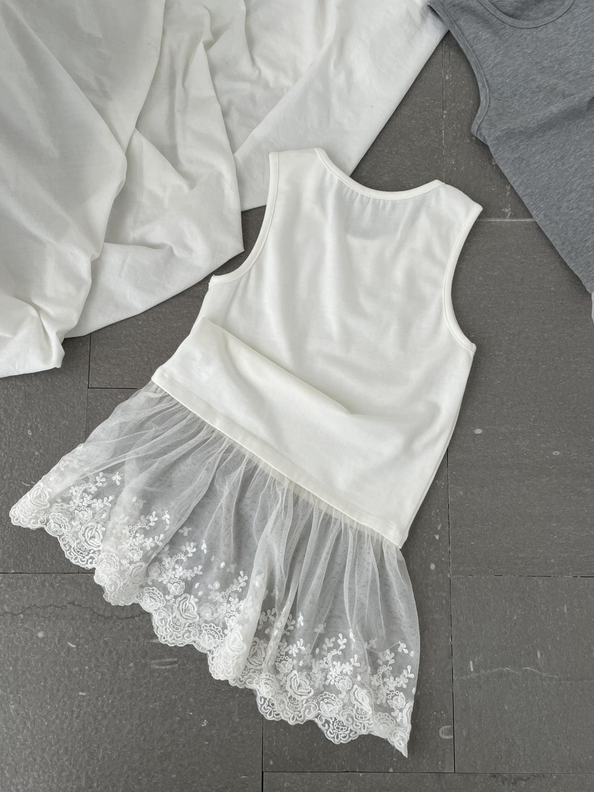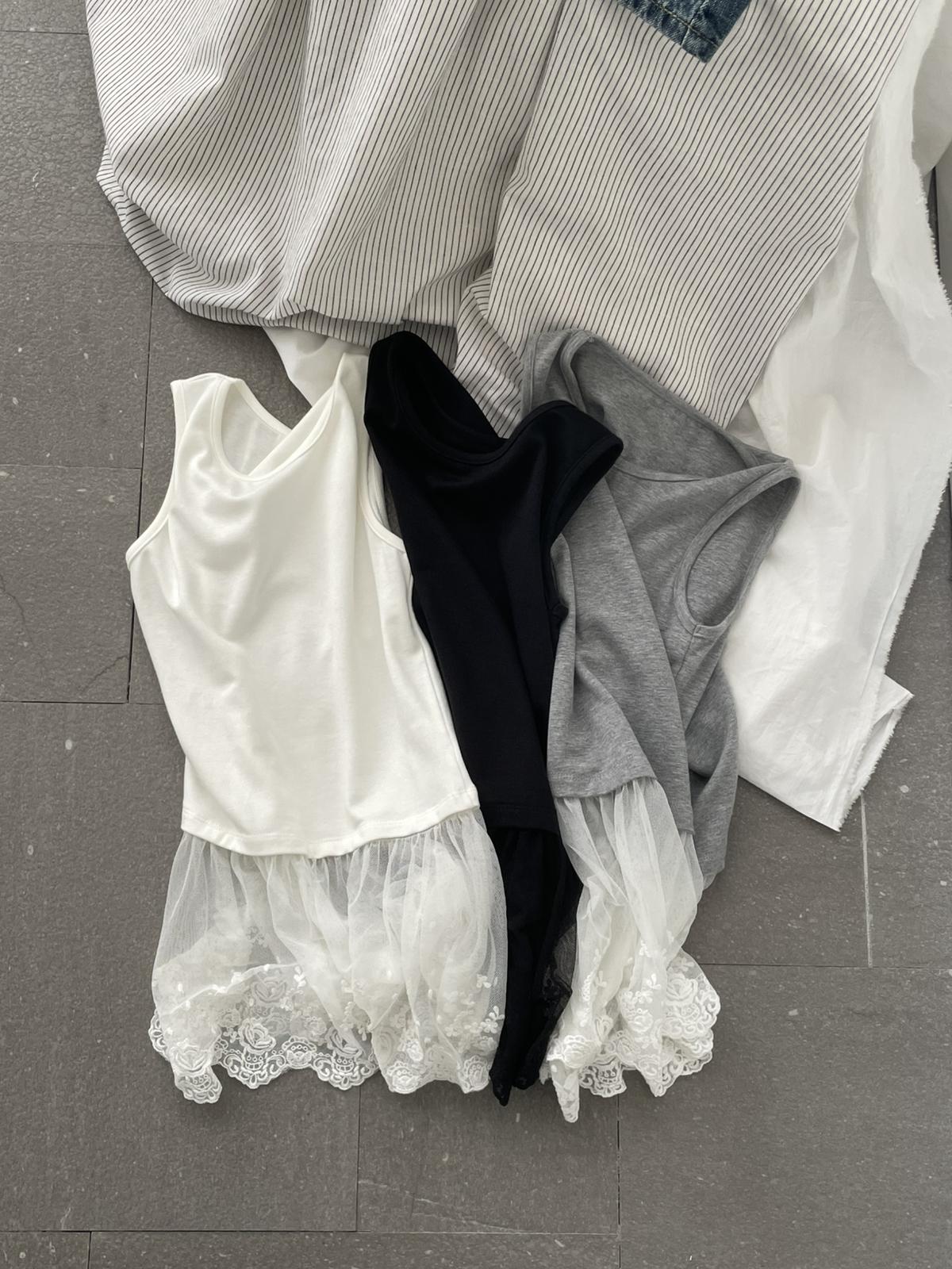 3. 【C8828】韓系純色拼接蕾絲花邊背心(單賣背心)
