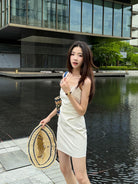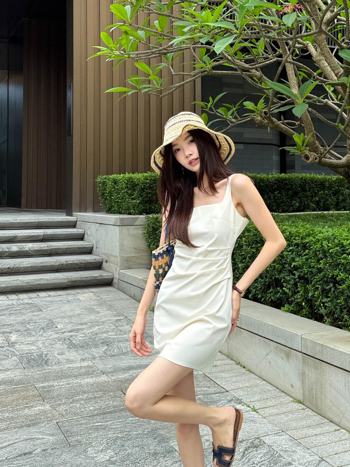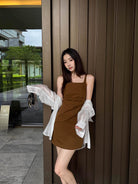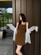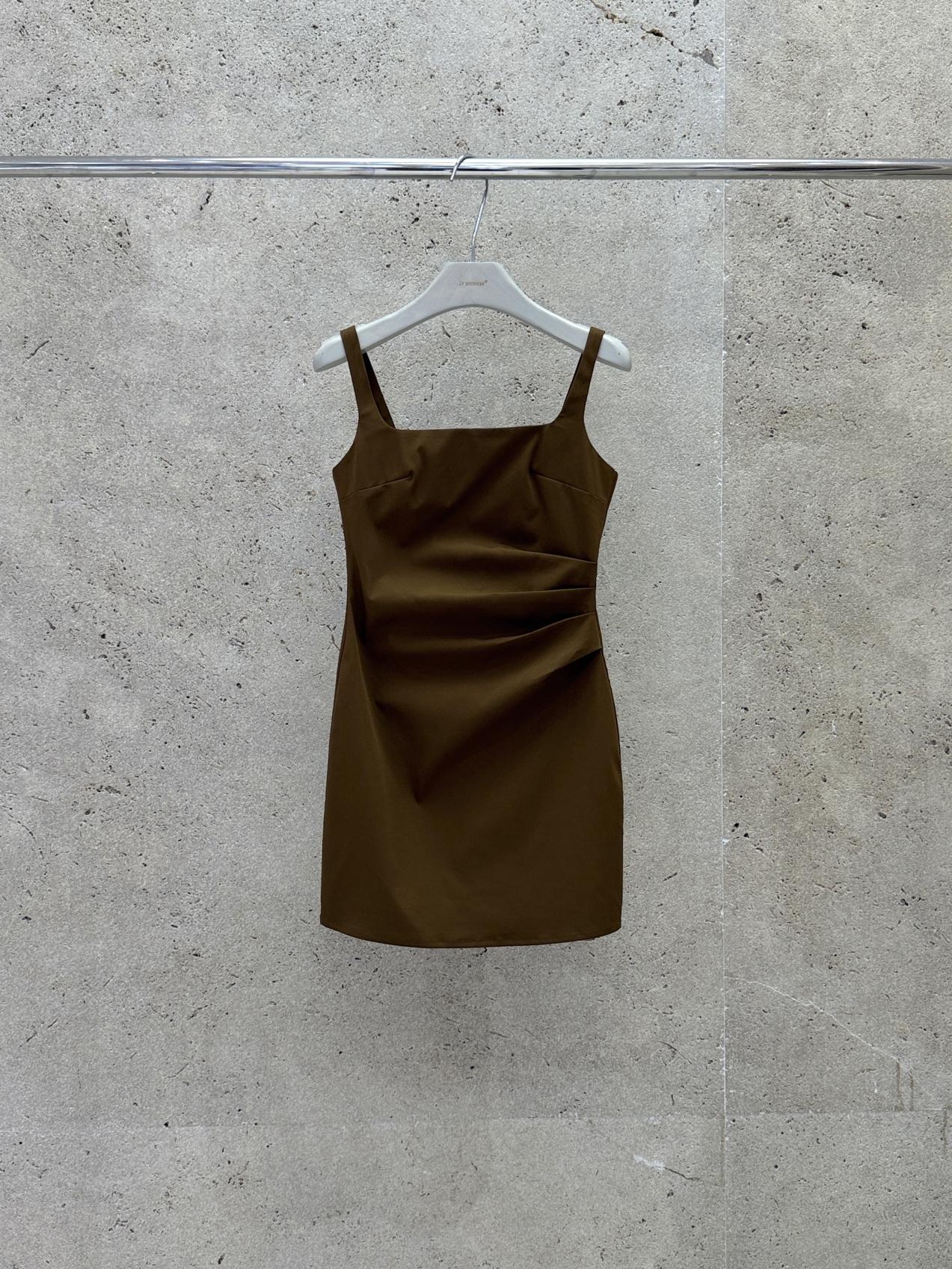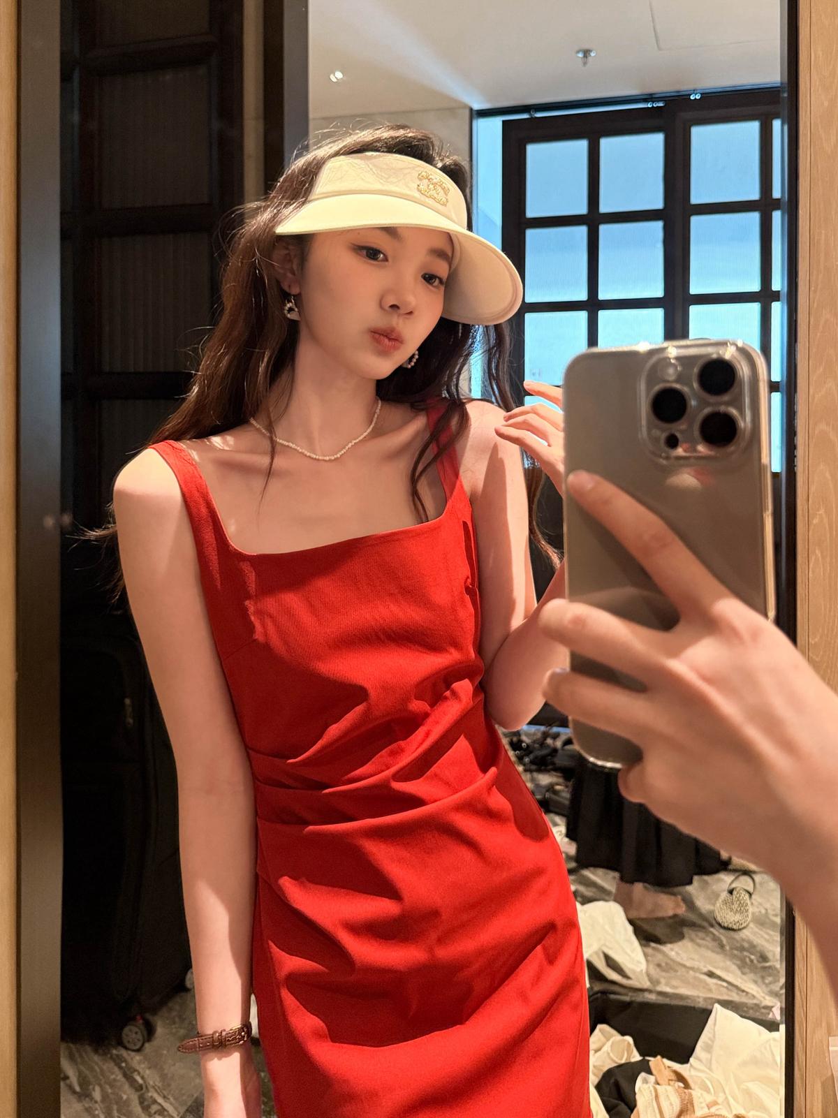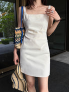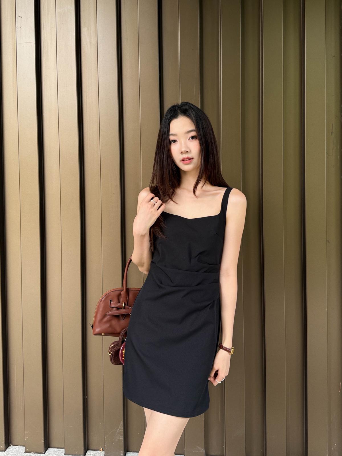 【C8834】韓版氣質網紅方領修身褶皺顯瘦基礎吊帶連衣裙
