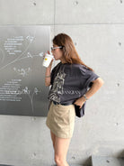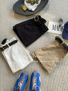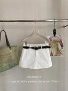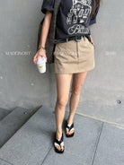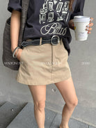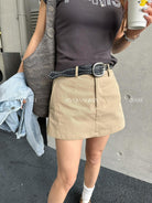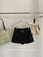 【C8856】極簡復古鉚釘腰帶休閒短款裙褲(配腰帶)