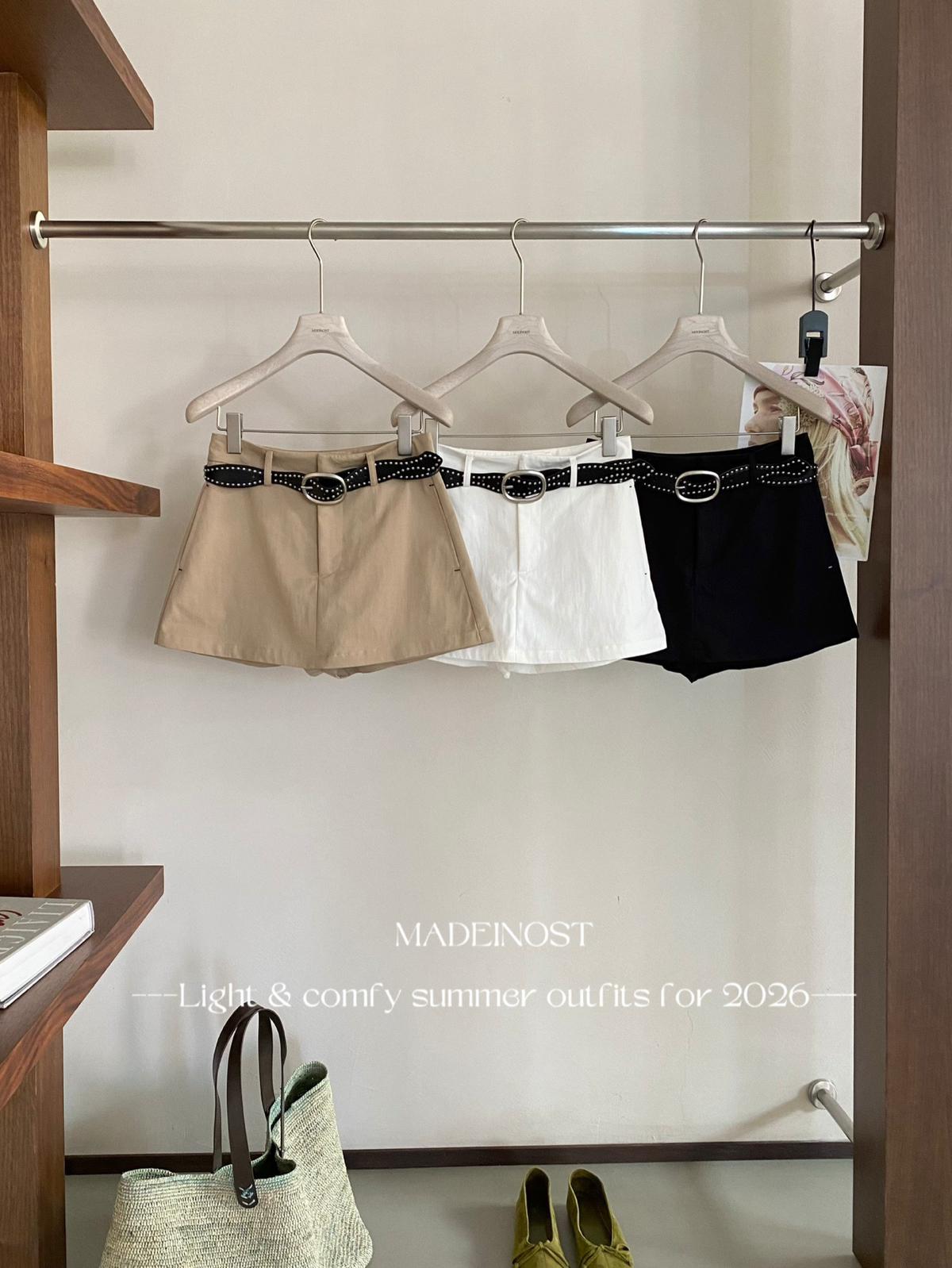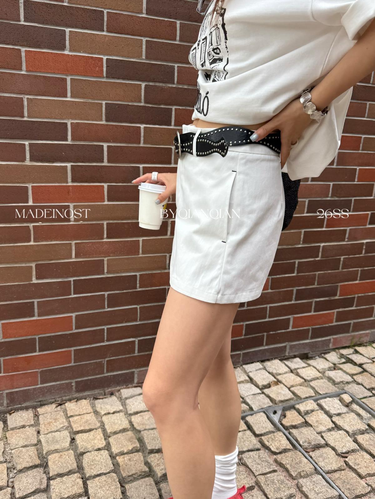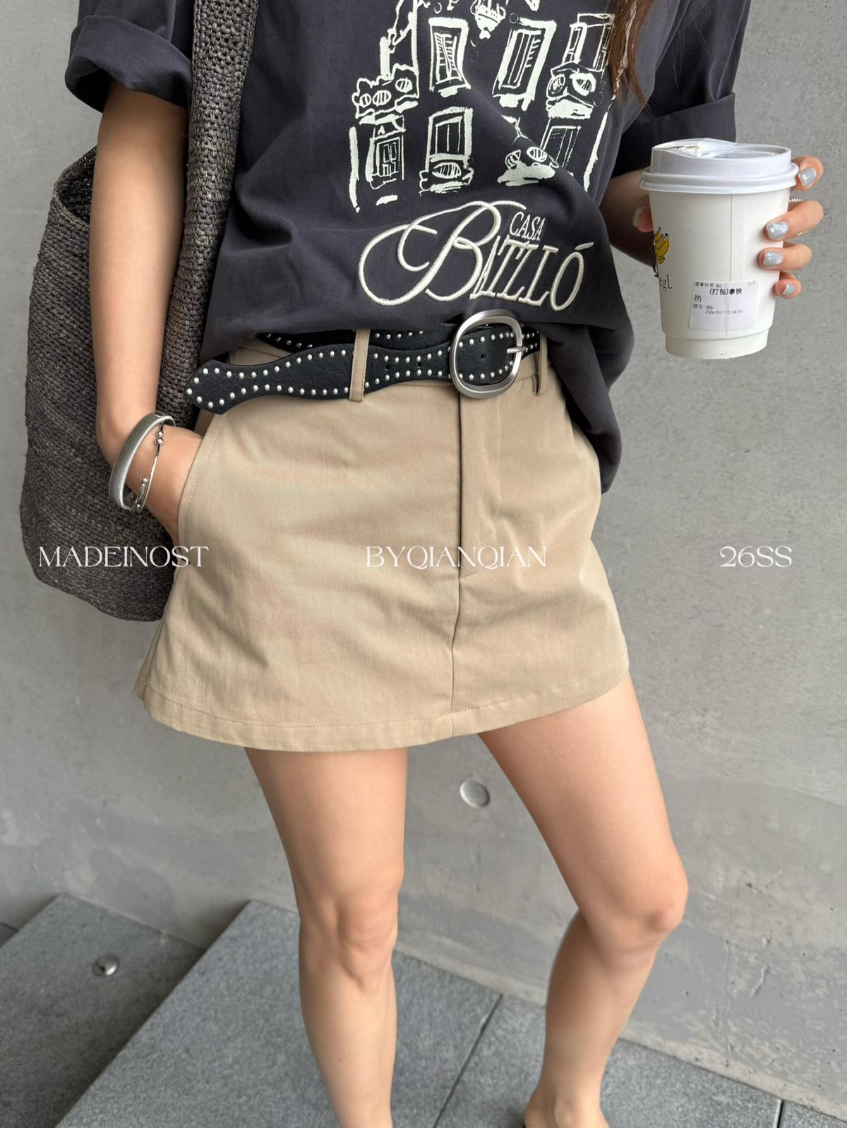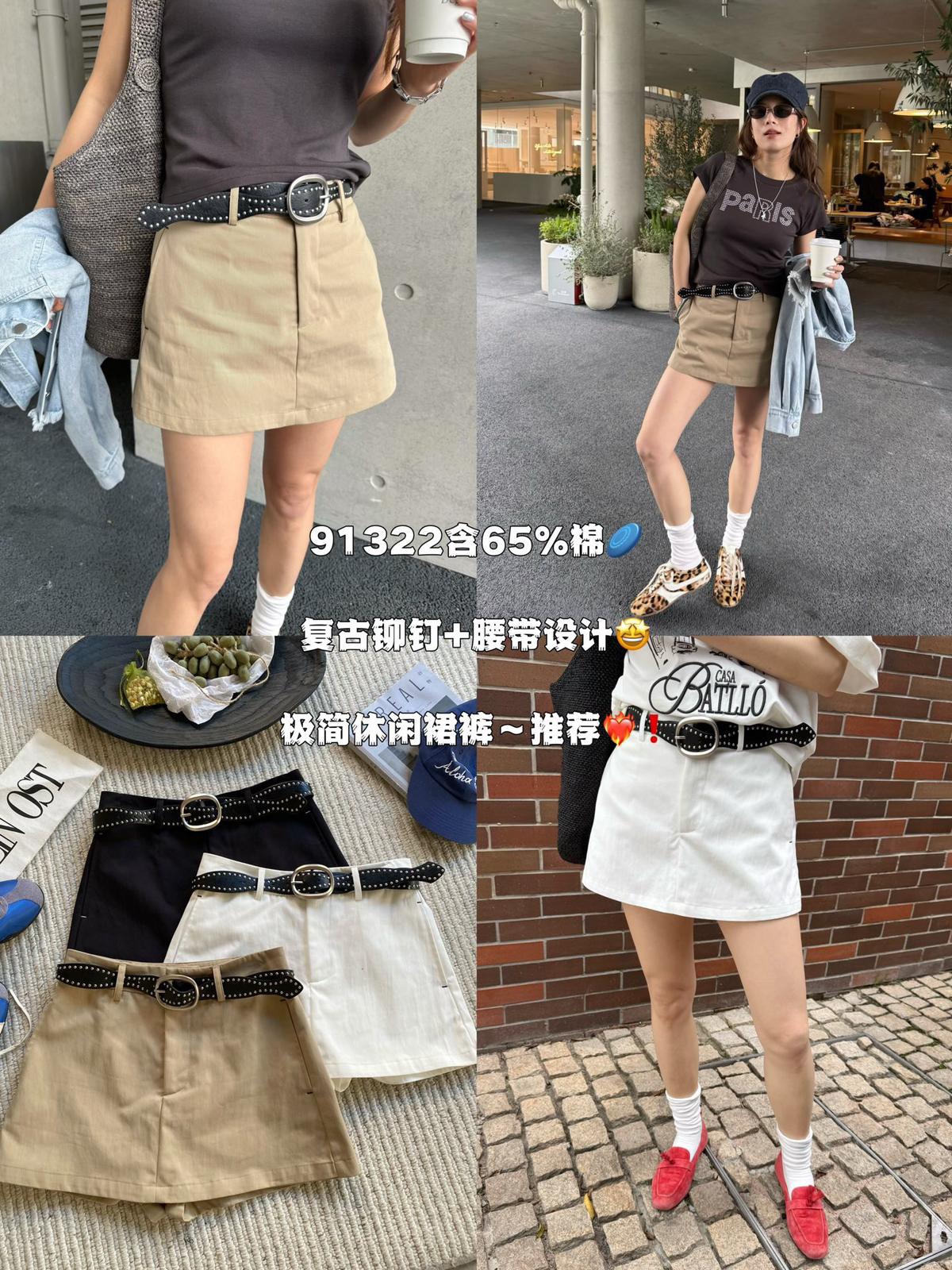 3. 【C8856】極簡復古鉚釘腰帶休閒短款裙褲(配腰帶)