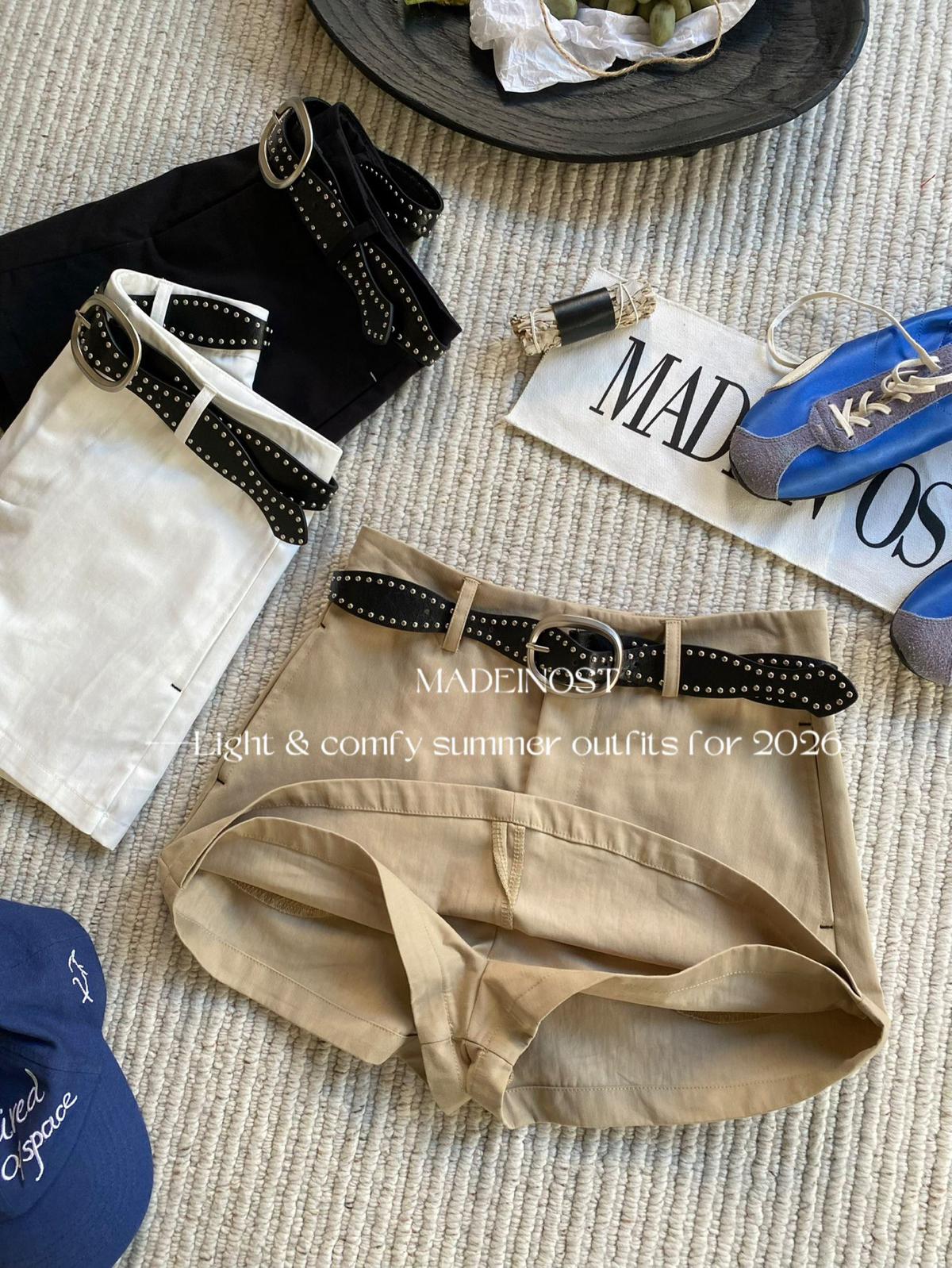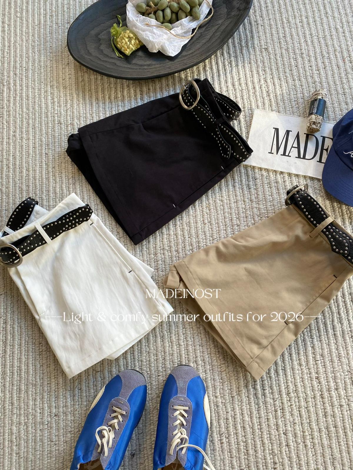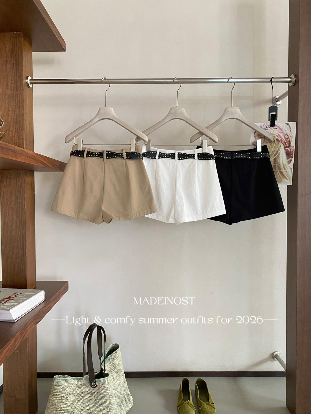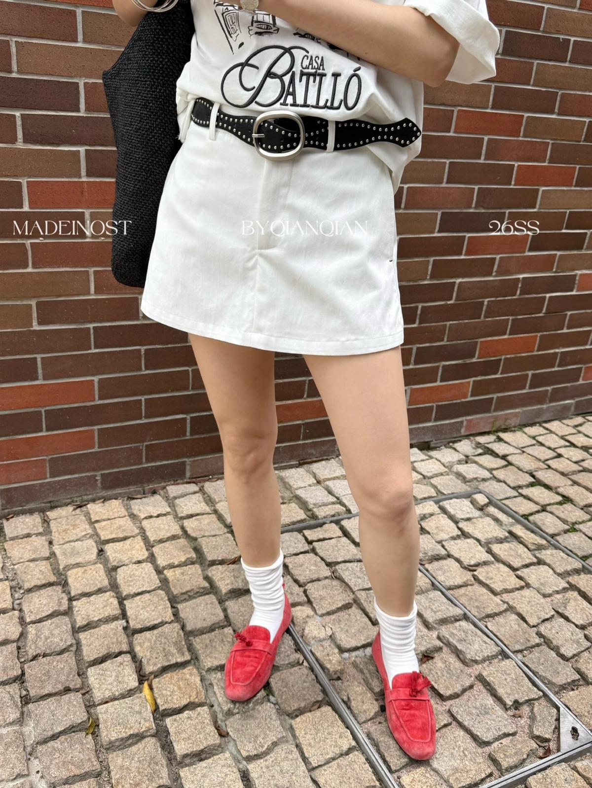 3. 【C8856】極簡復古鉚釘腰帶休閒短款裙褲(配腰帶)