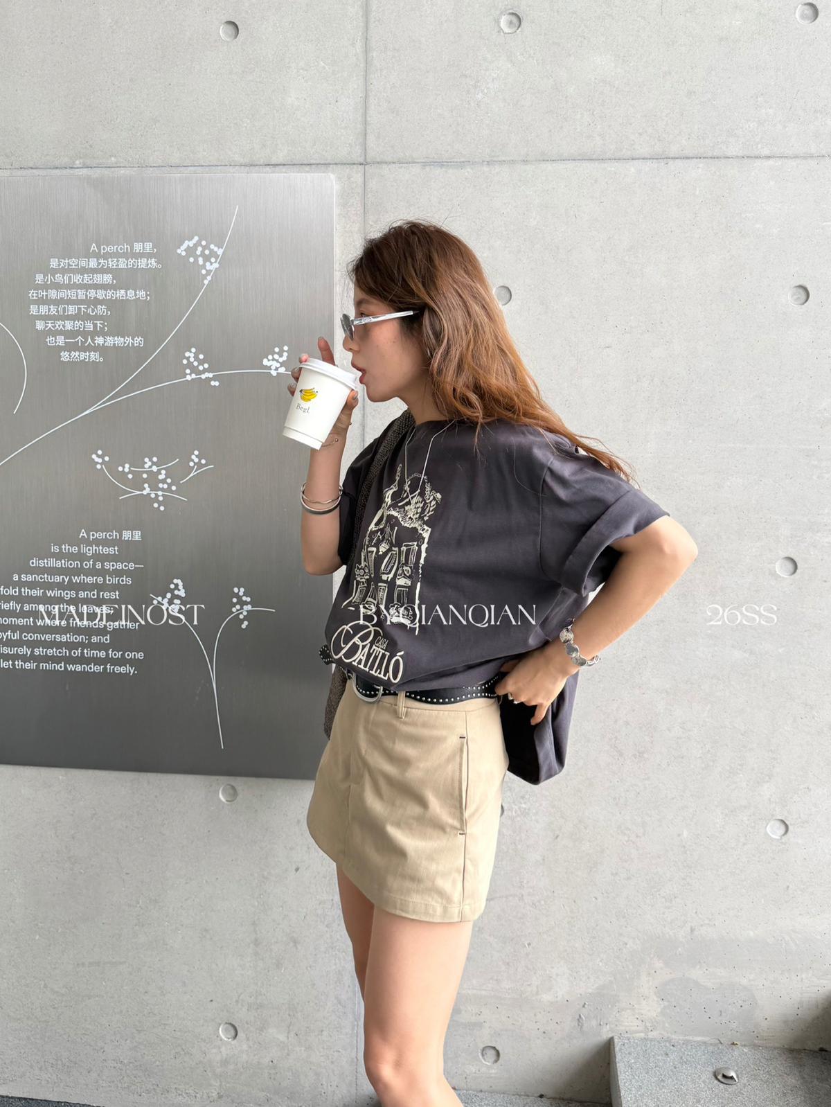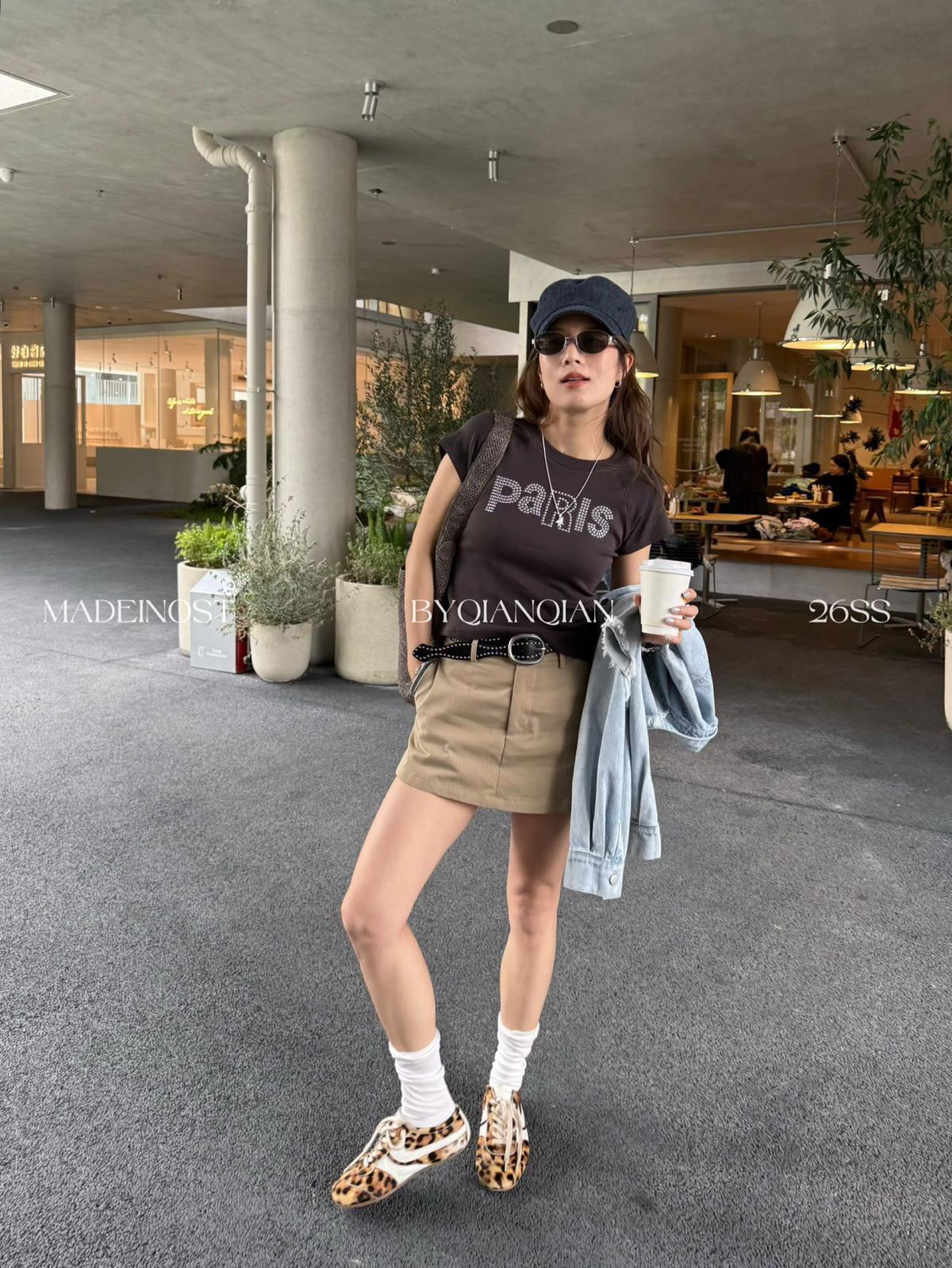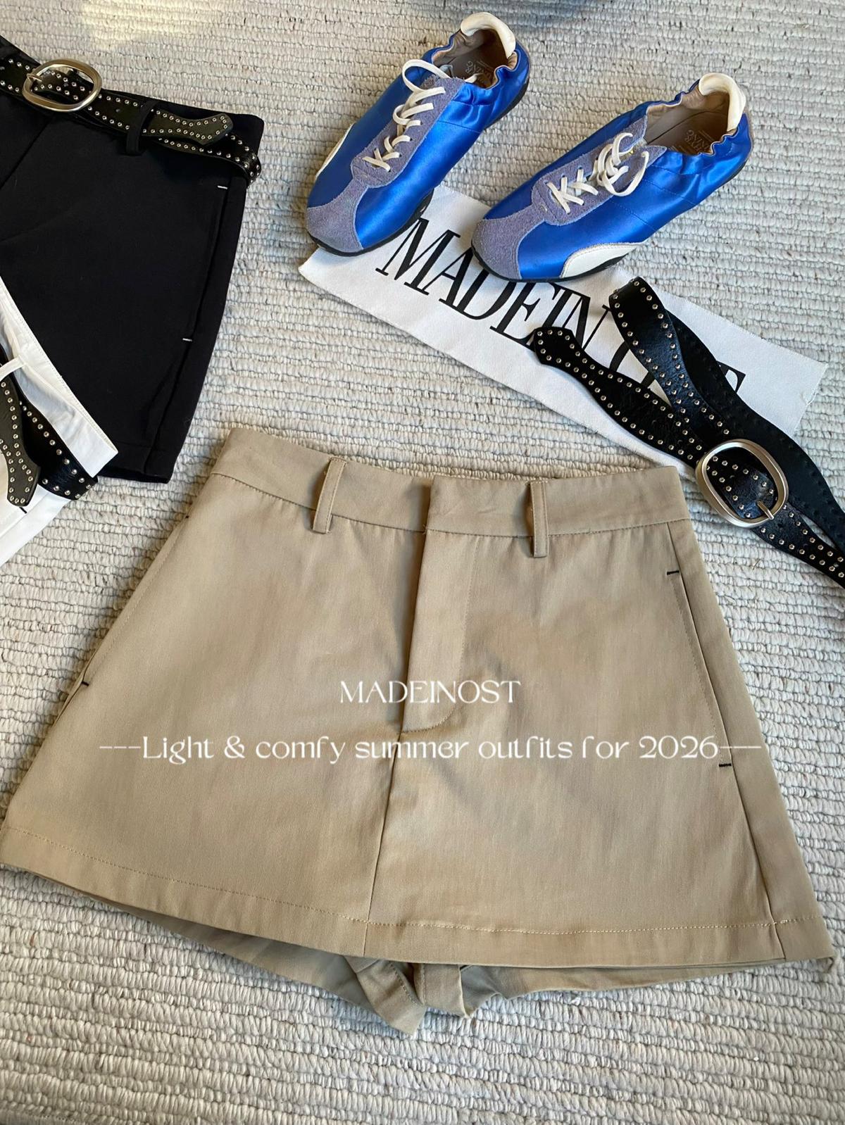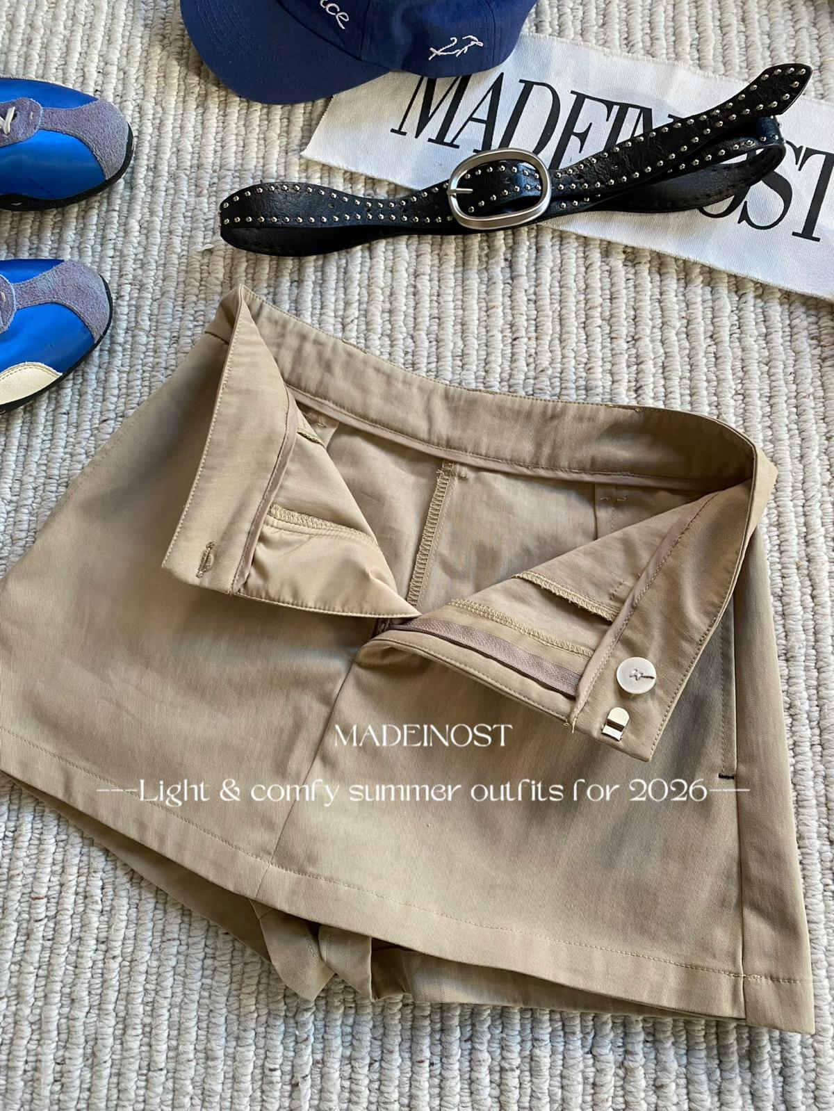 3. 【C8856】極簡復古鉚釘腰帶休閒短款裙褲(配腰帶)