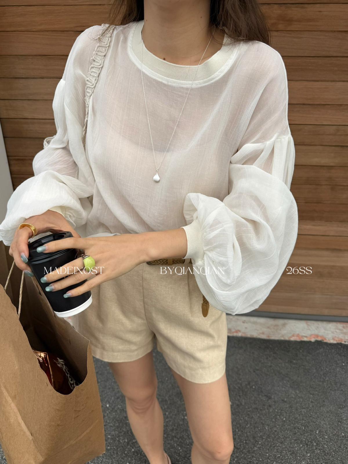 【C8858】25%亞麻輕薄透氣慵懶小衫