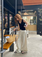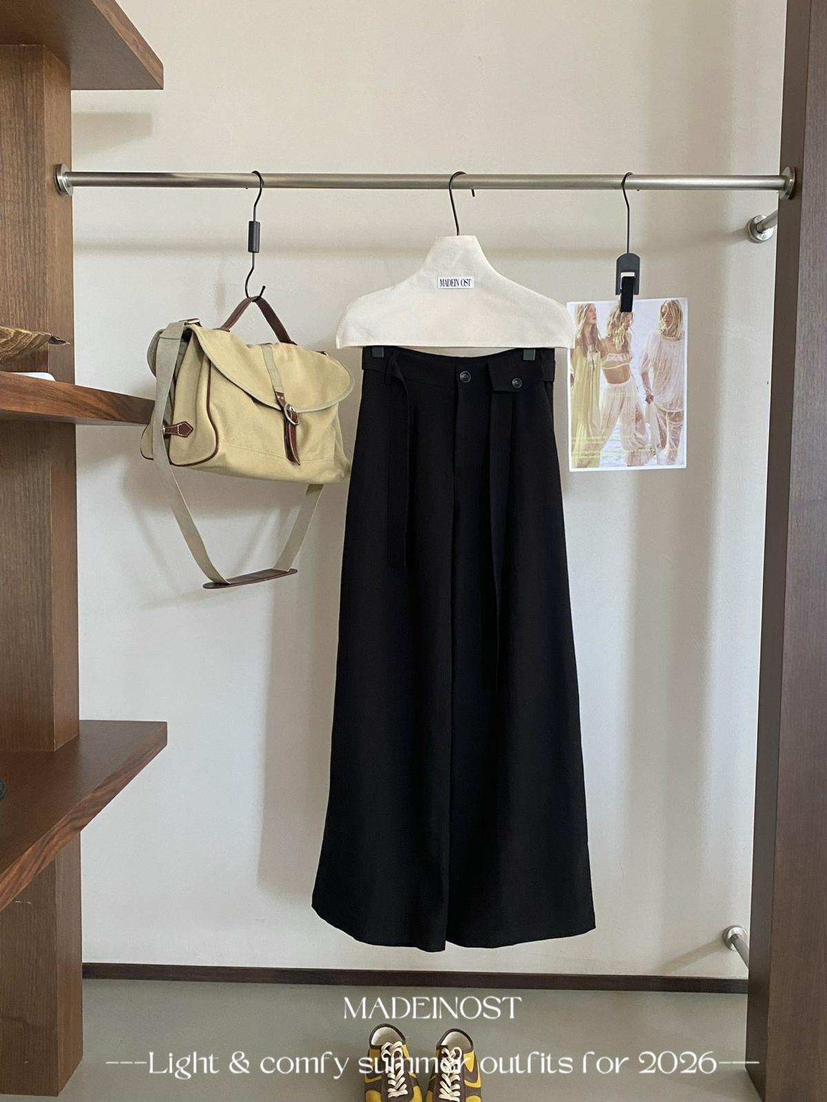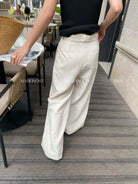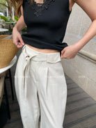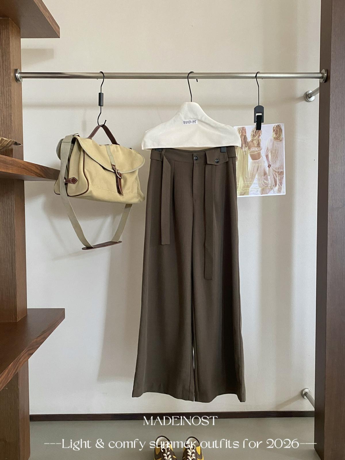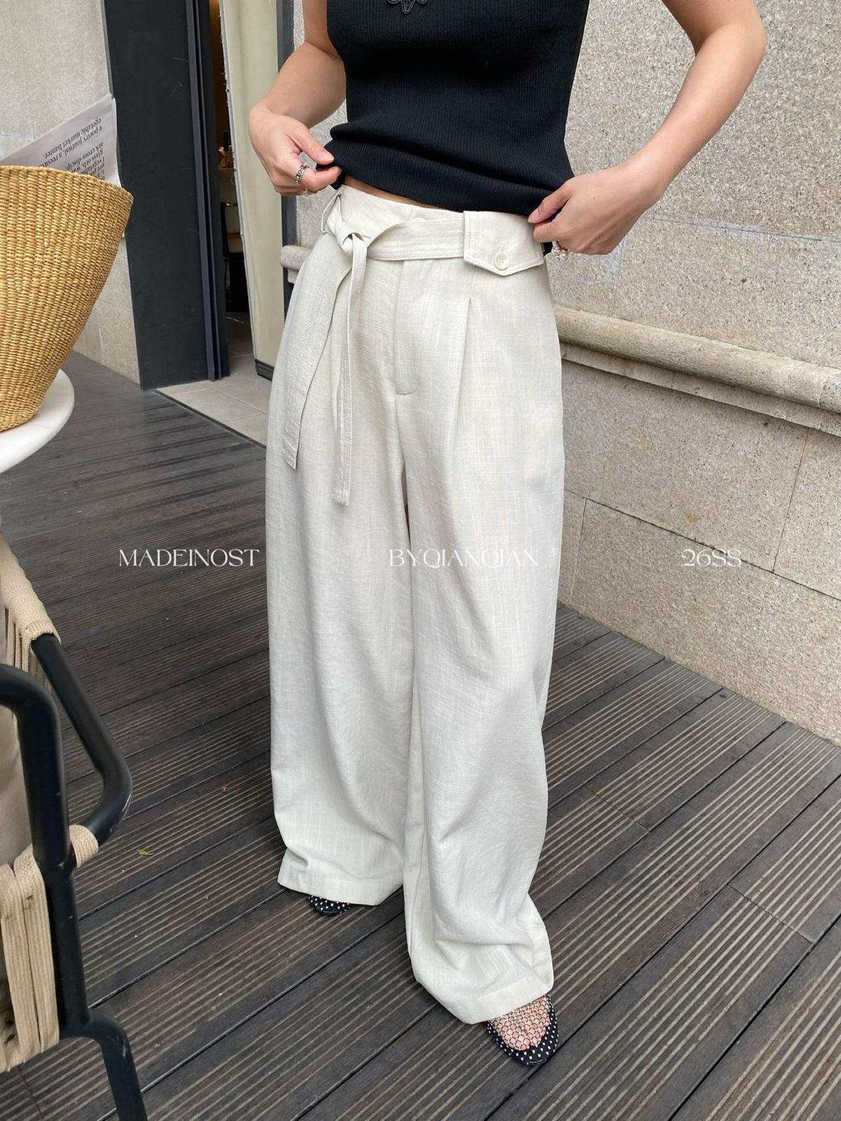 【C8861】28%天絲麻感慵懶寬鬆休閒褲(配腰帶)