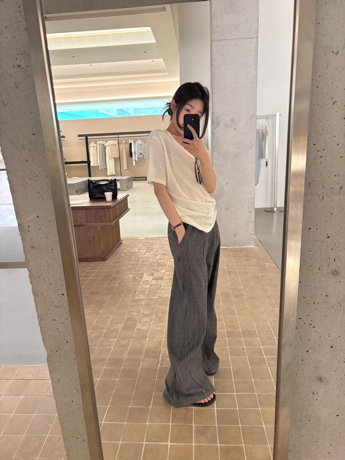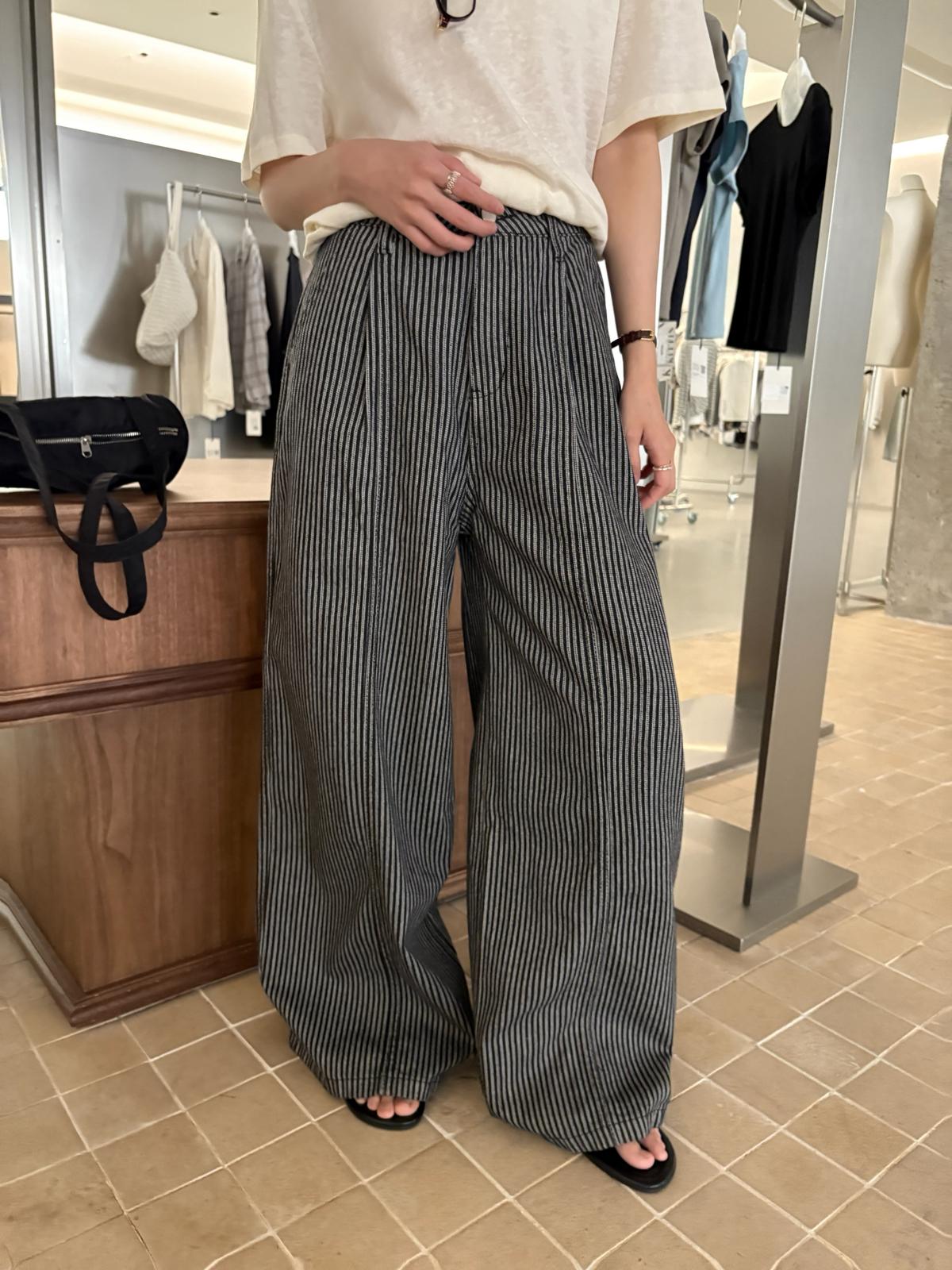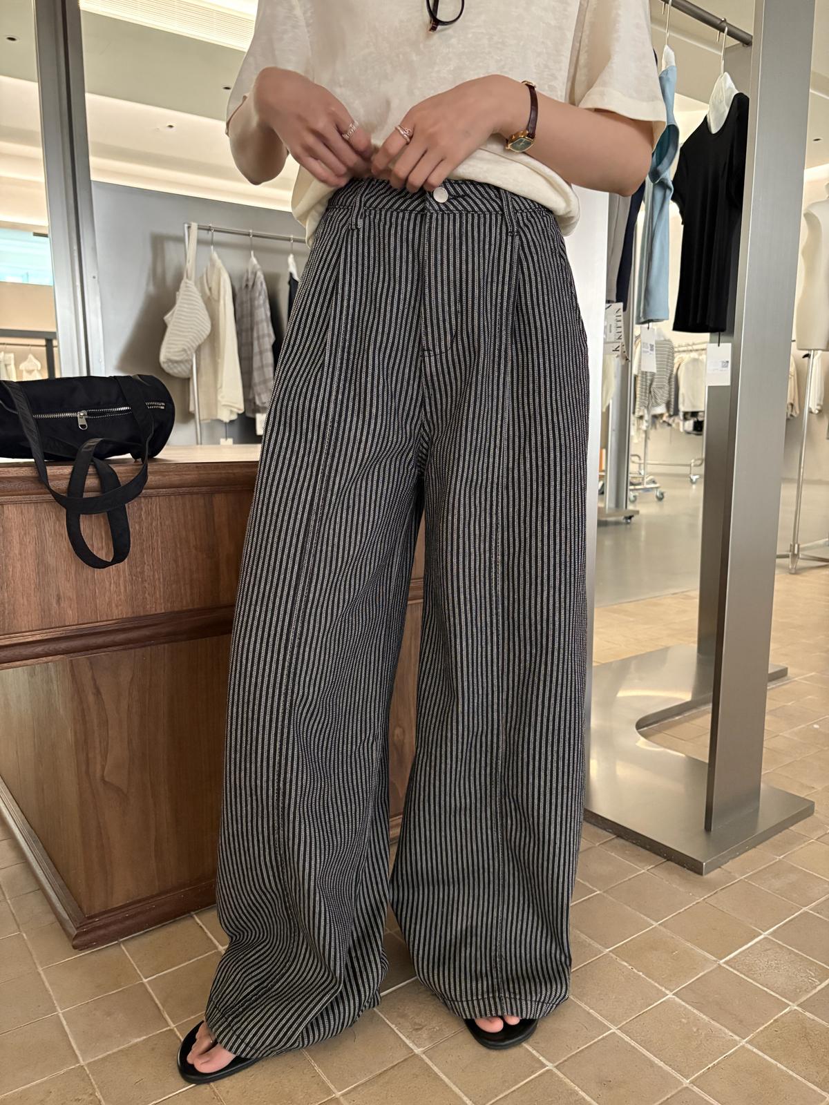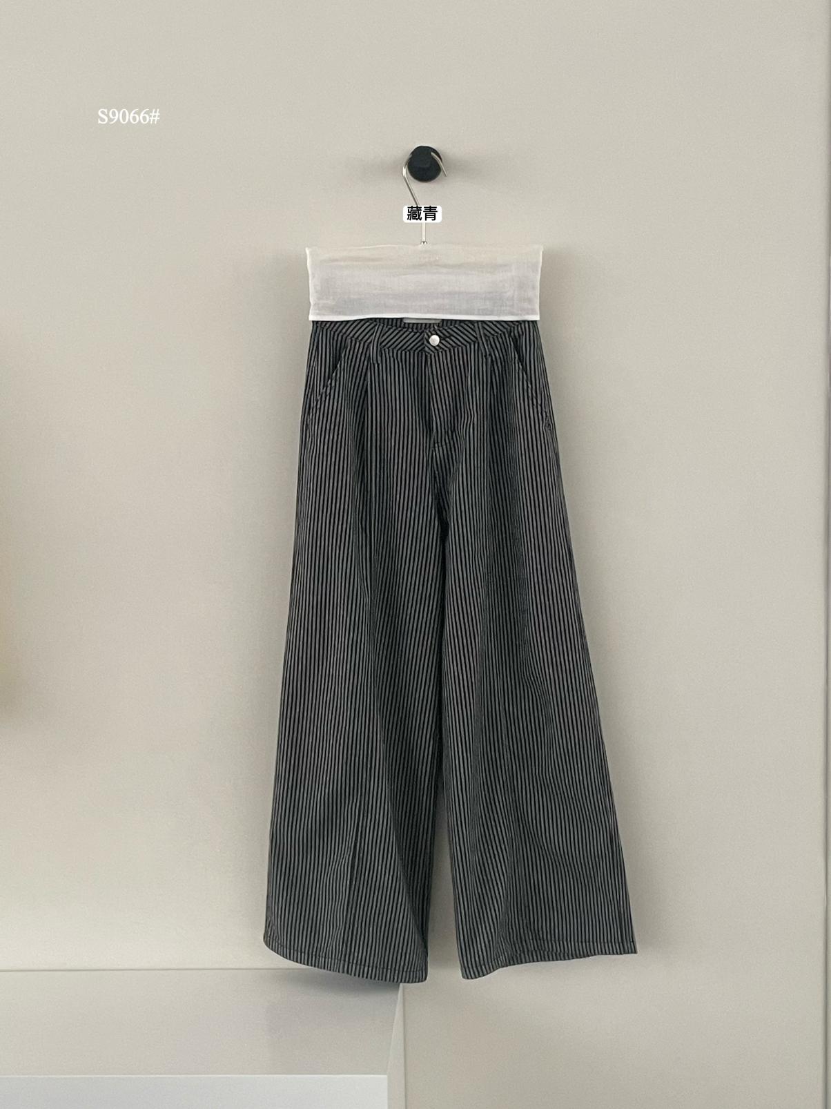 3. 【C8867】韓版簡約百搭條紋高腰牛仔闊腿休閒褲
