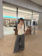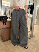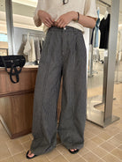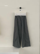 【C8867】韓版簡約百搭條紋高腰牛仔闊腿休閒褲