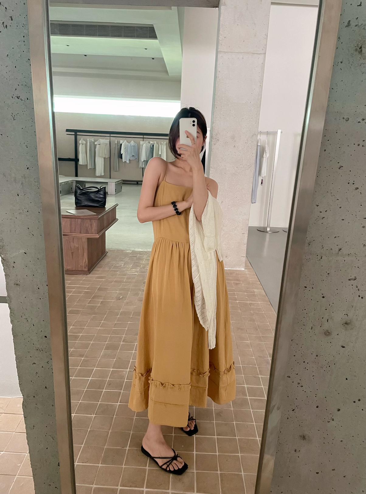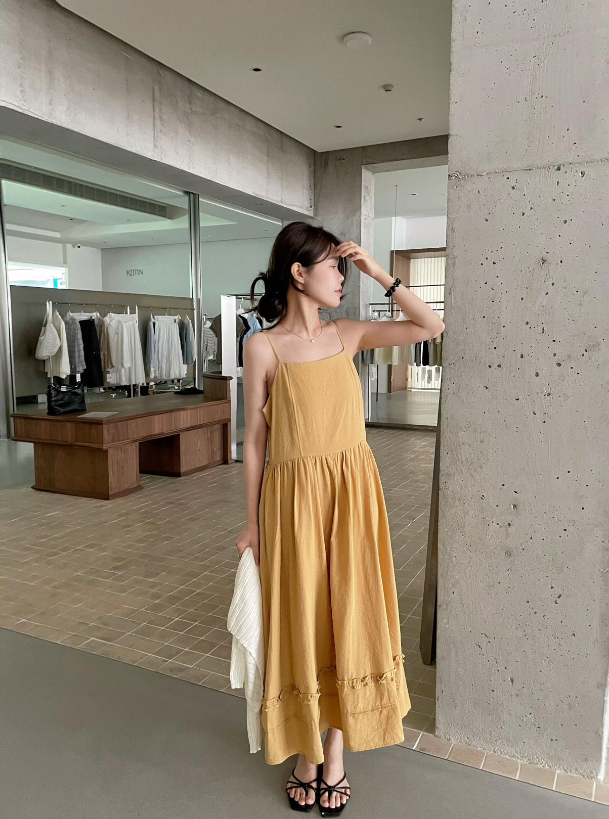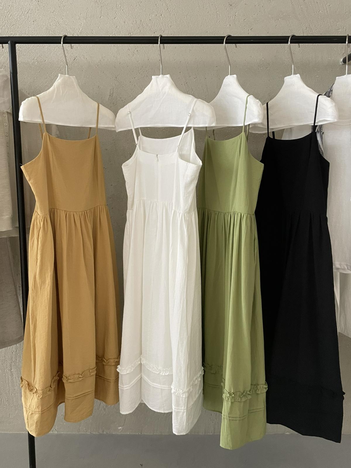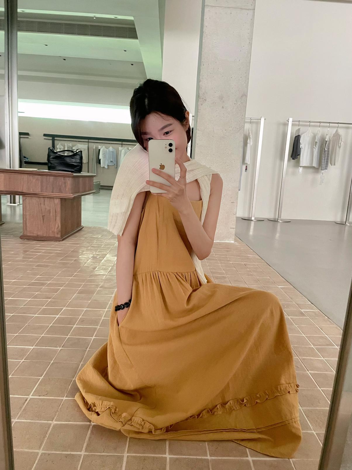 3. 【C8872】韓系木耳花邊設計感寬鬆A字吊帶連衣裙