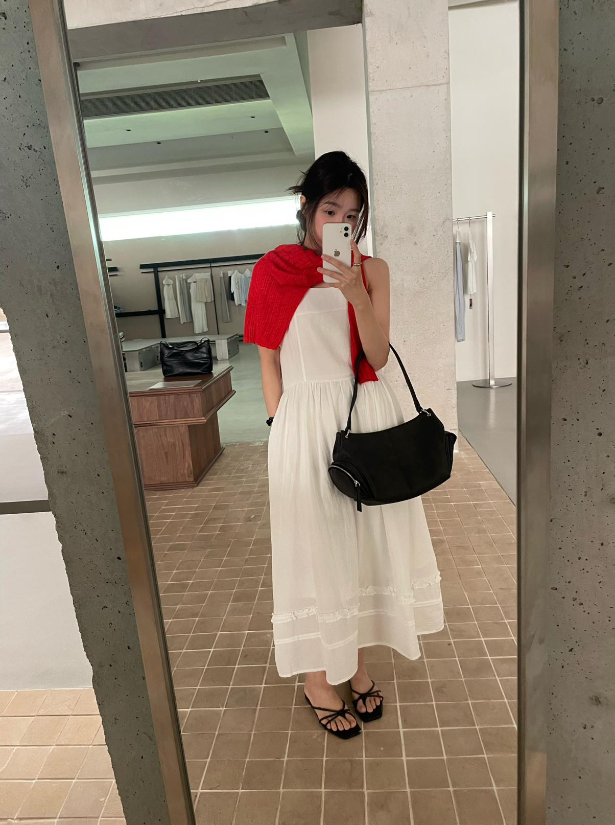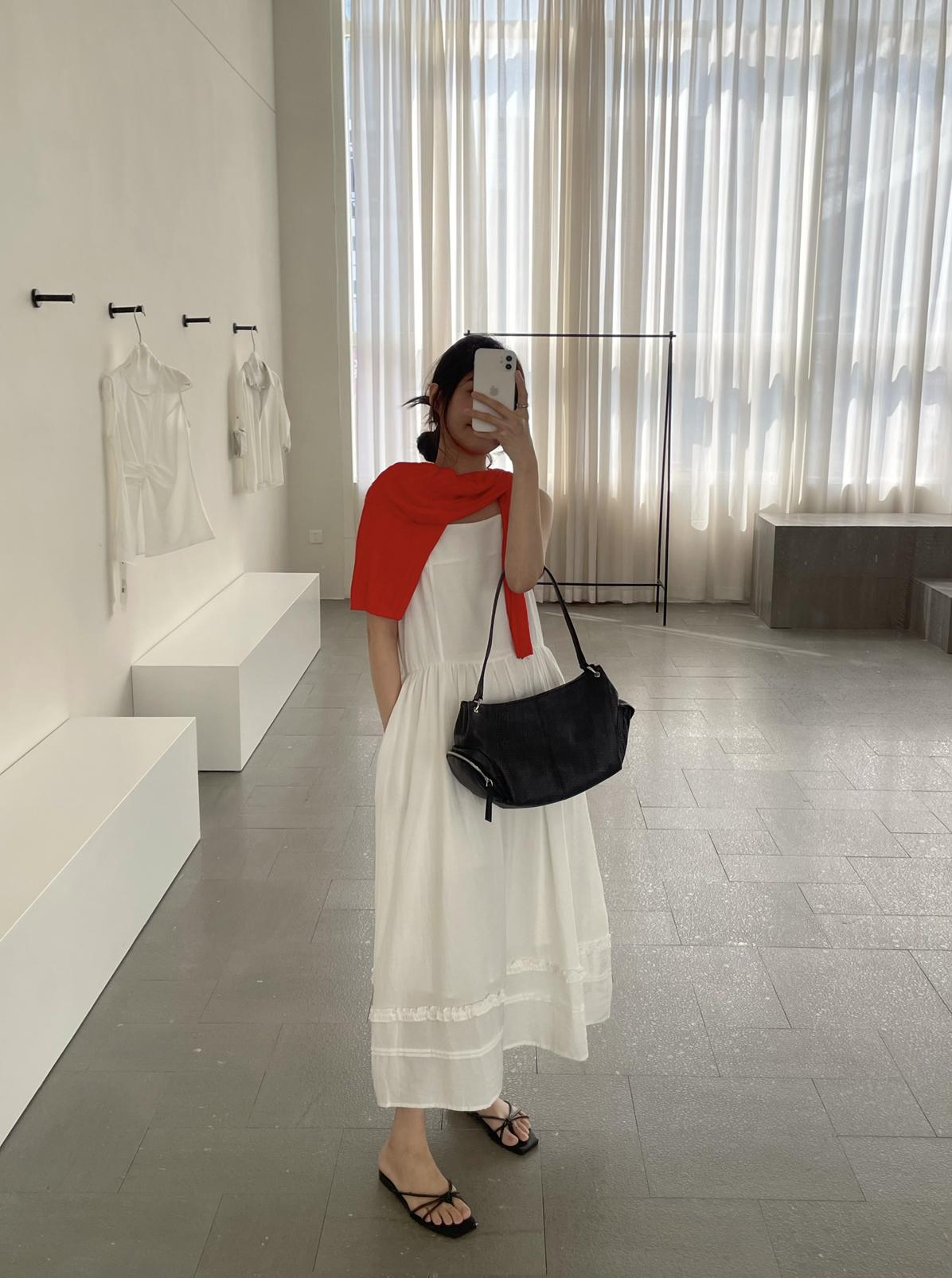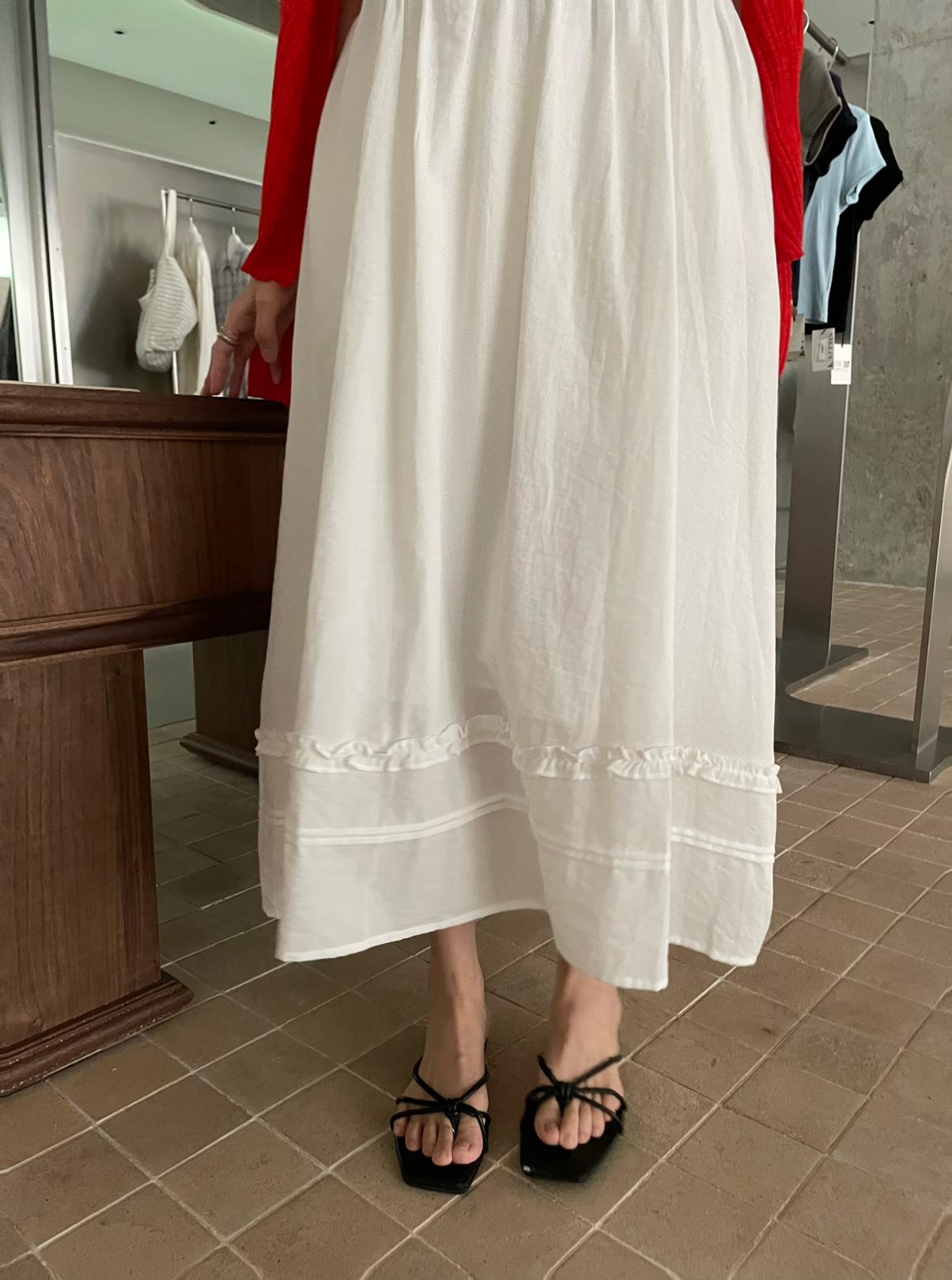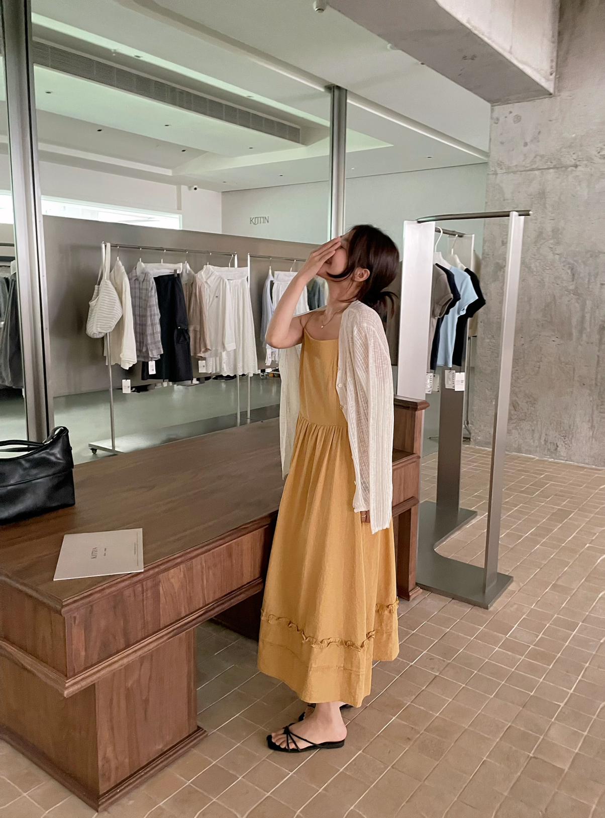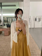 3. 【C8872】韓系木耳花邊設計感寬鬆A字吊帶連衣裙