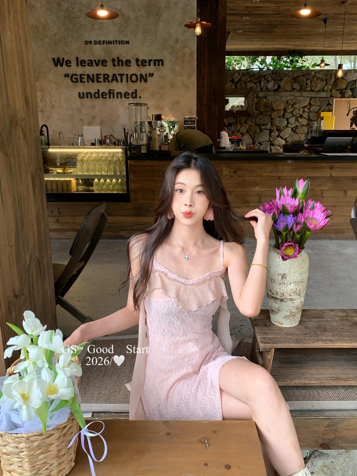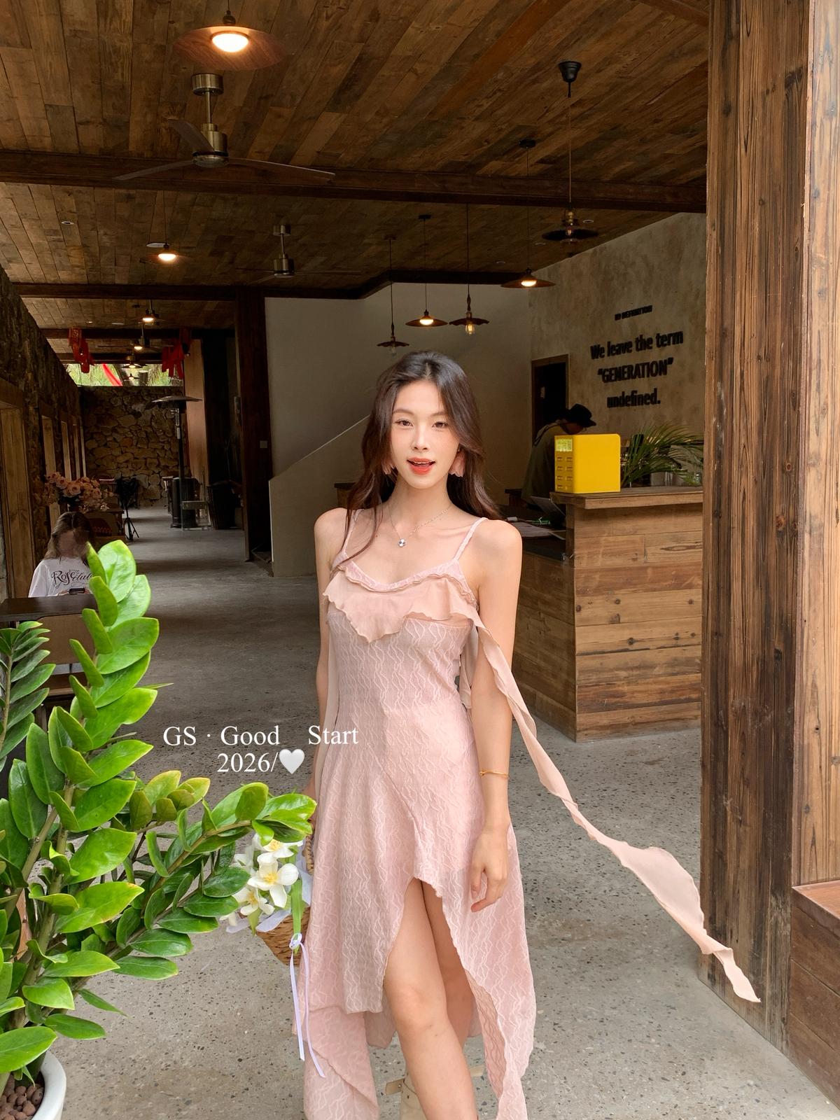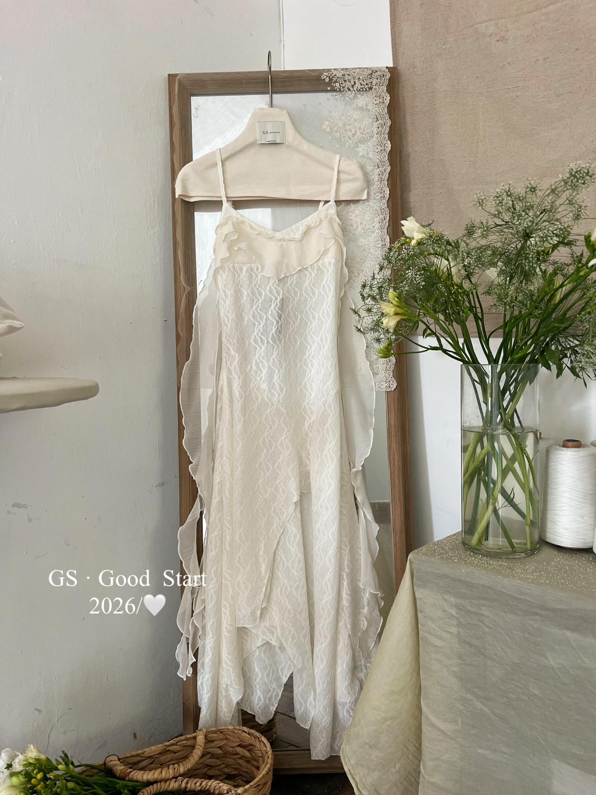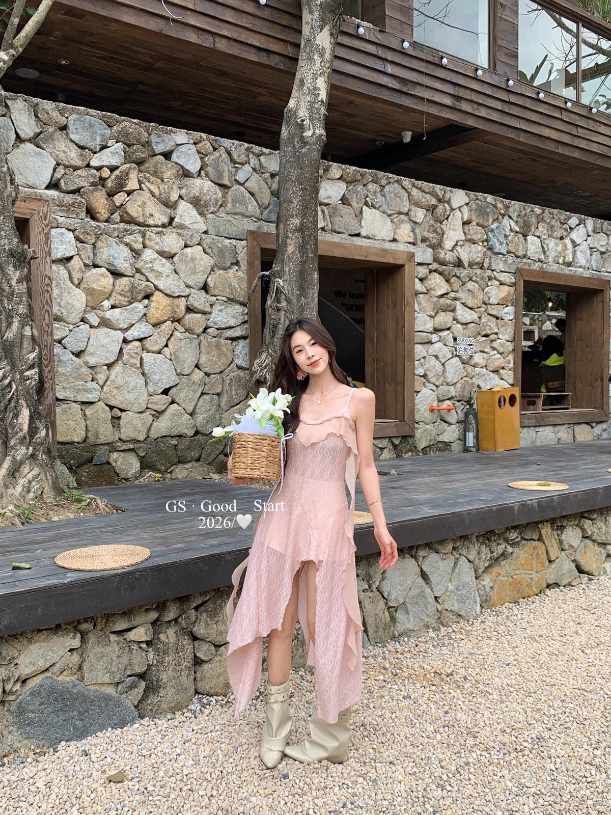 【C8896】C位主角*顏控有福了~狠哇塞!法式浪漫荷葉邊不規則設計感吊帶連衣裙