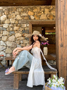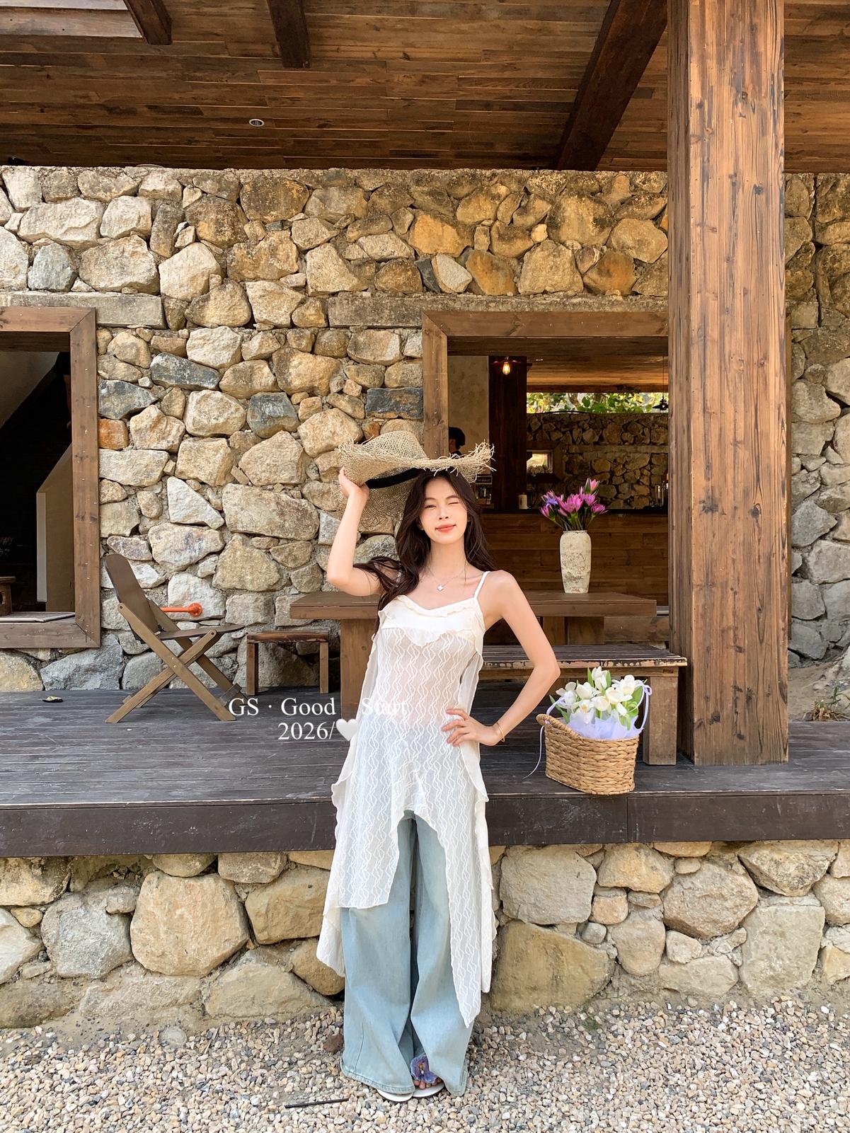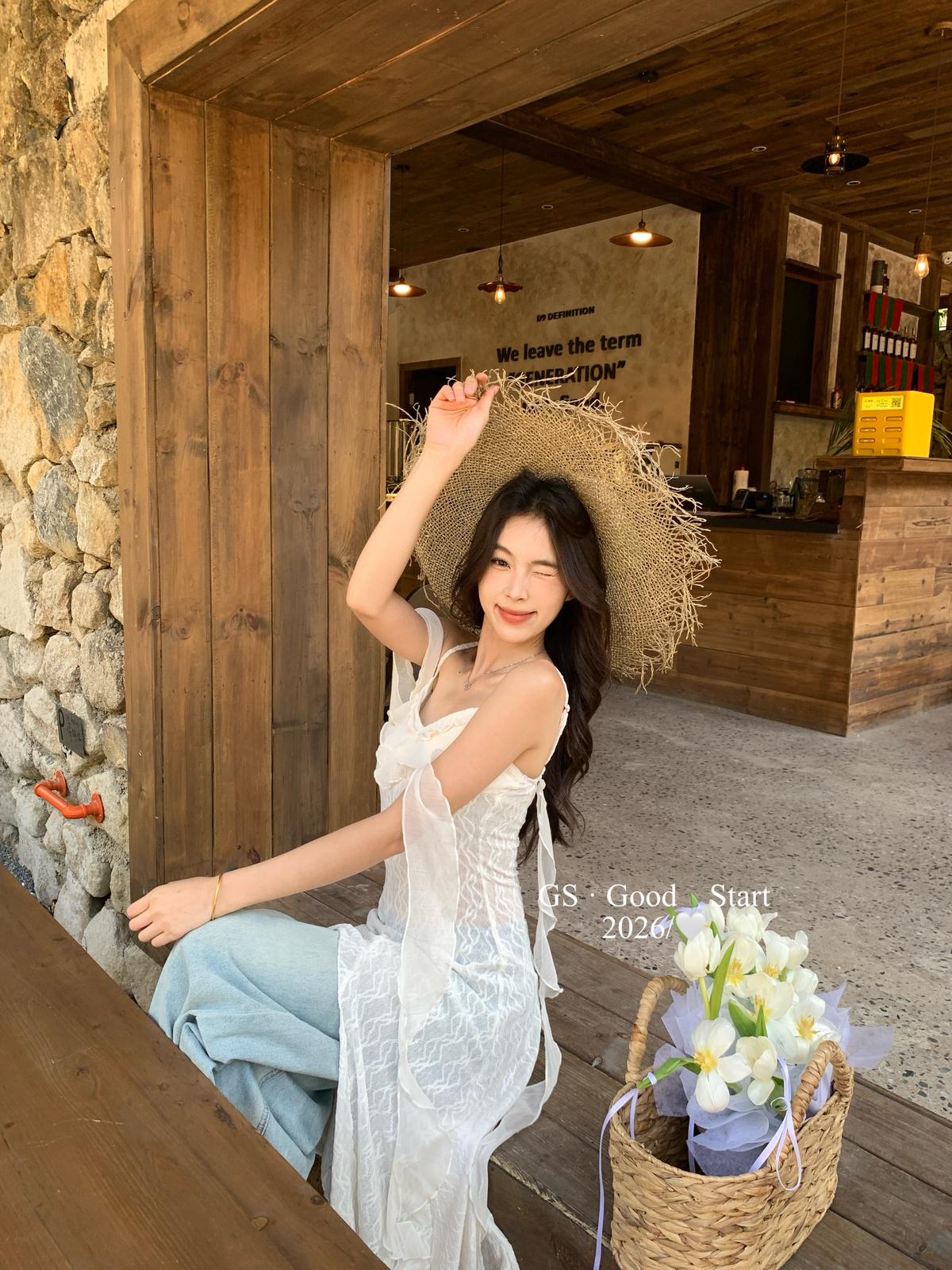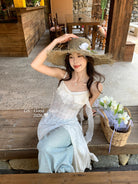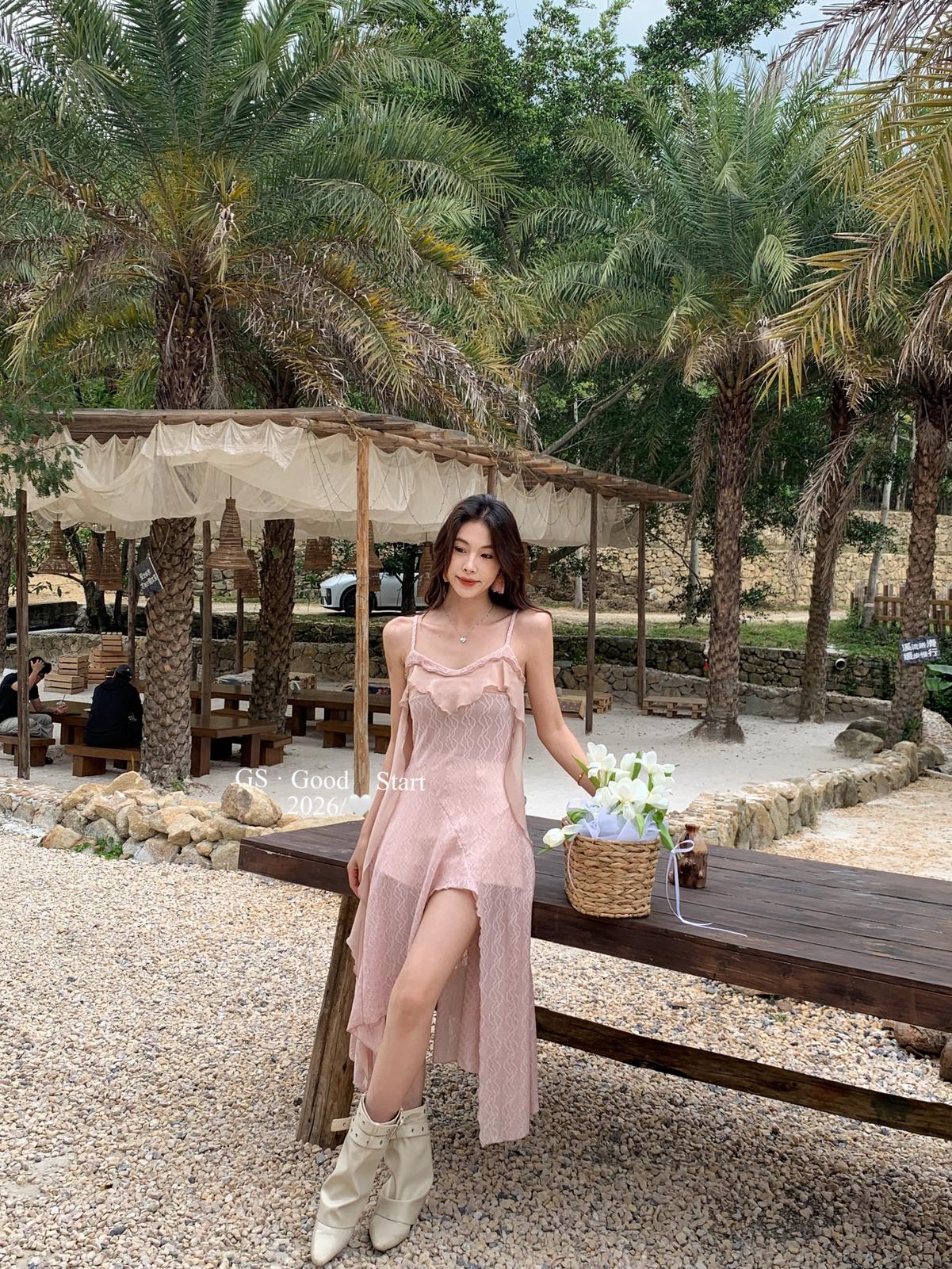 【C8896】C位主角*顏控有福了~狠哇塞!法式浪漫荷葉邊不規則設計感吊帶連衣裙