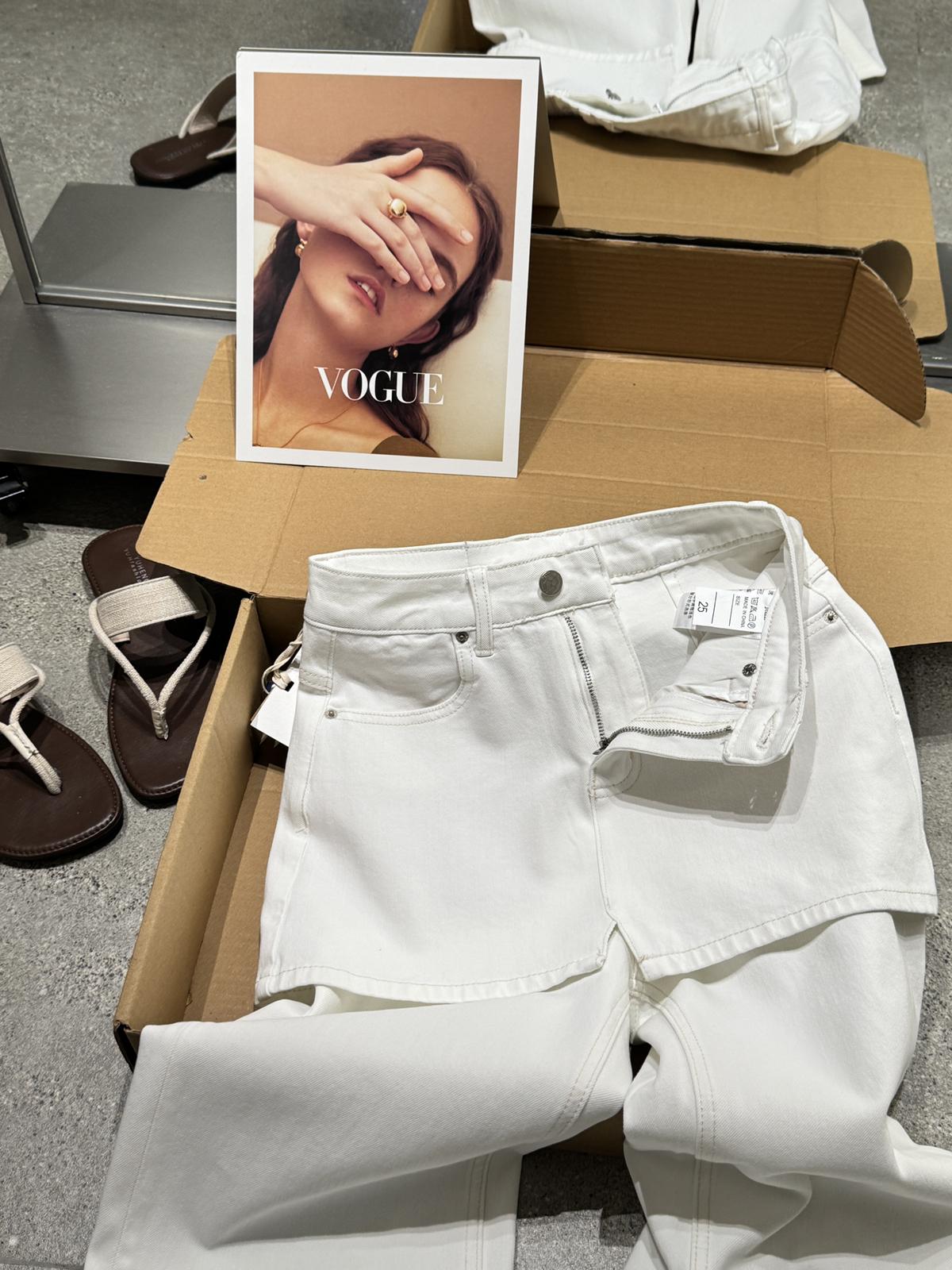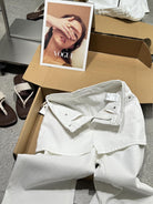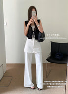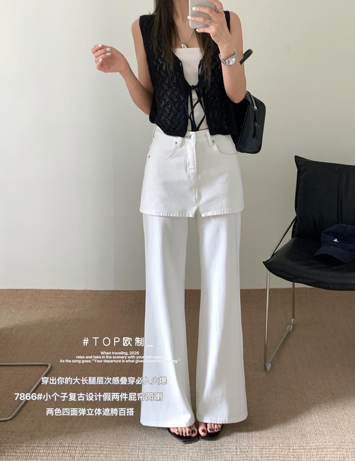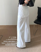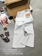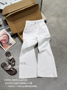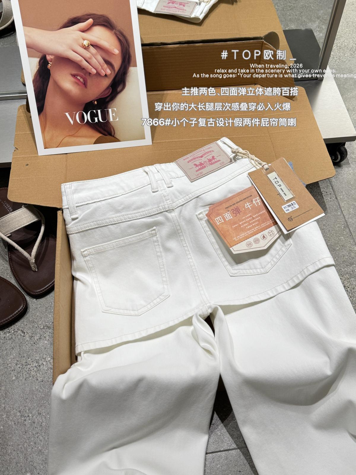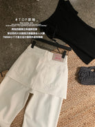 【C8899】韓版百搭層次感疊穿小個子復古假兩件屁簾四面彈筒喇牛仔褲