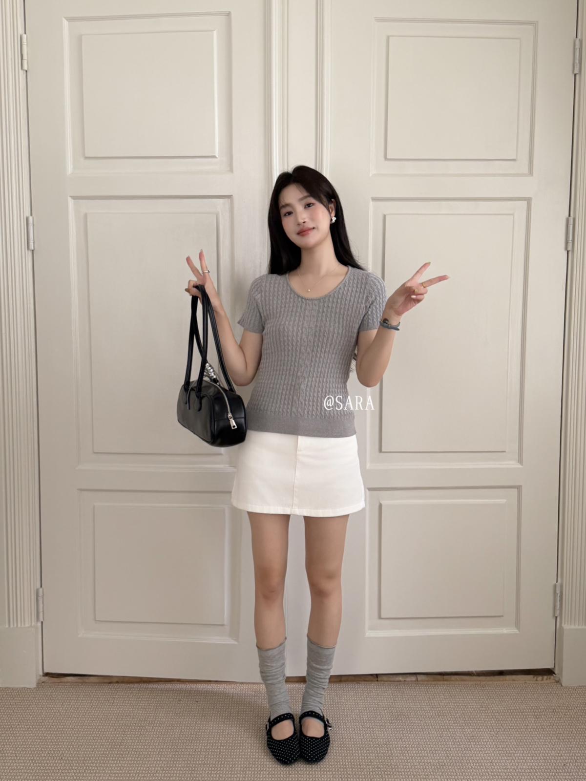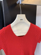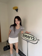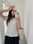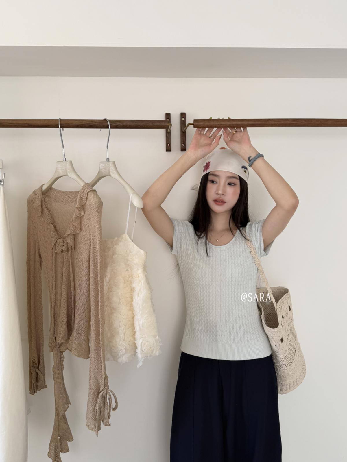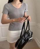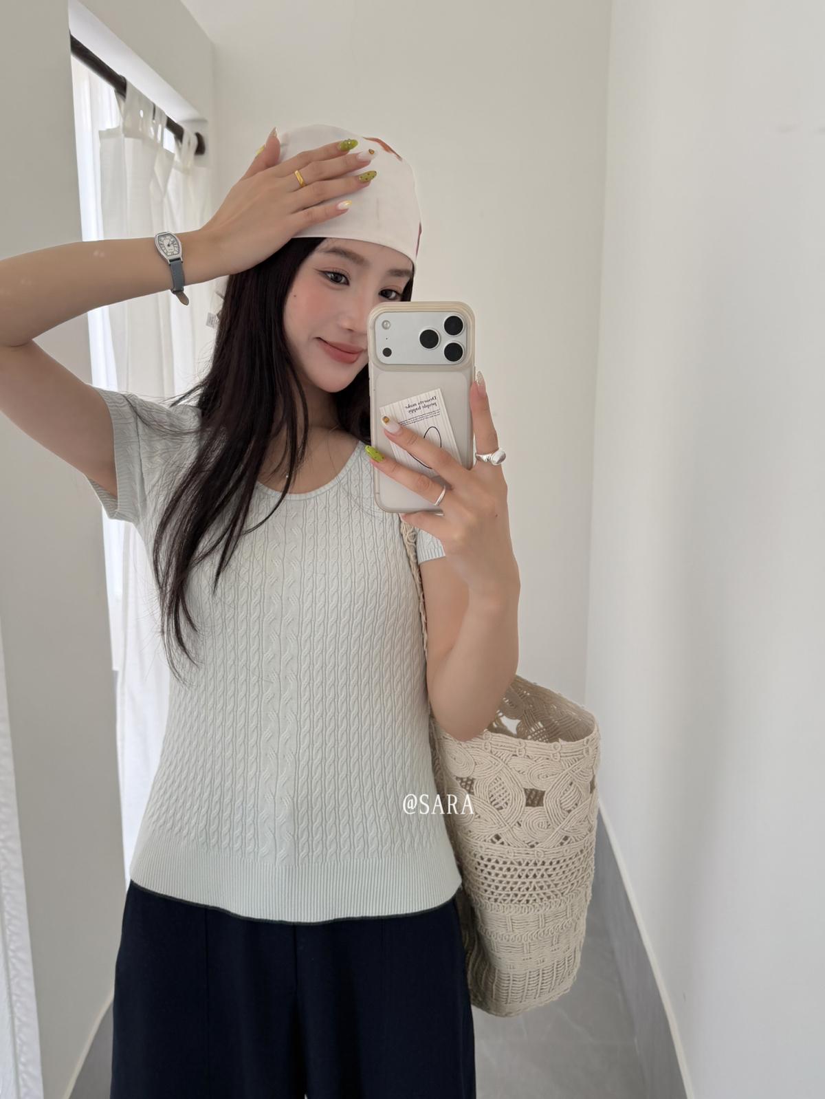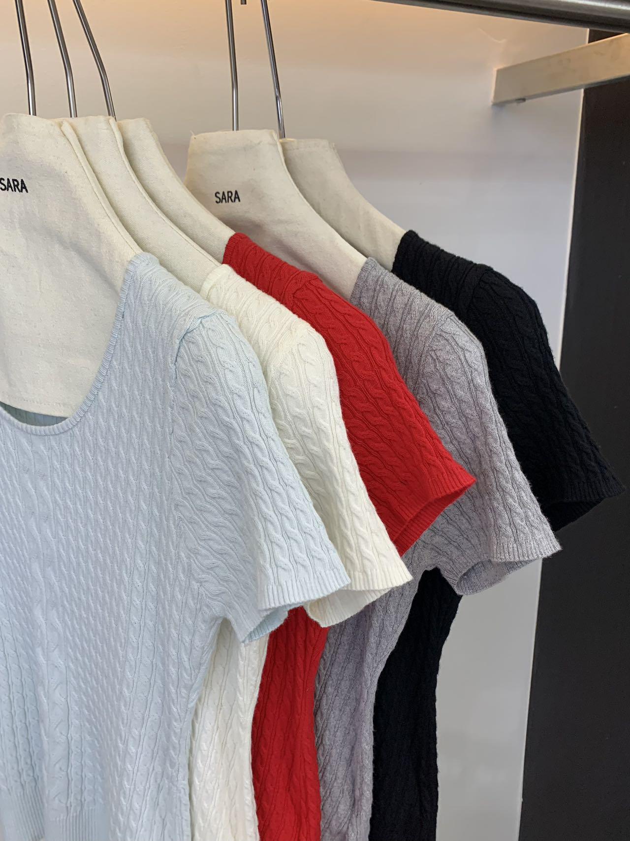 【C8903】韓系U領麻花紋短袖針織衫