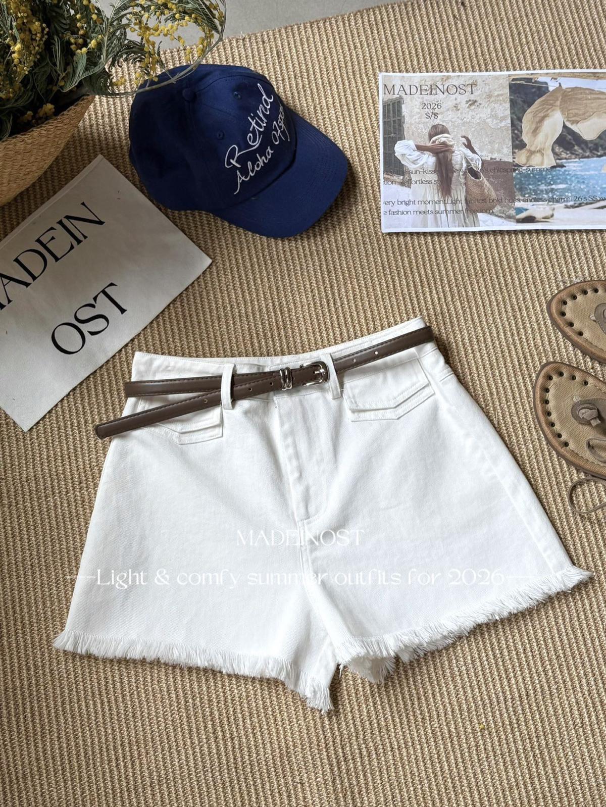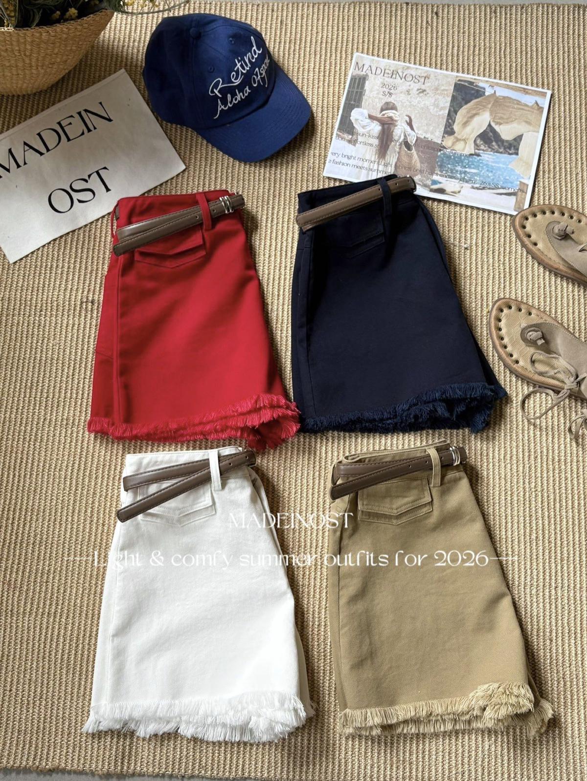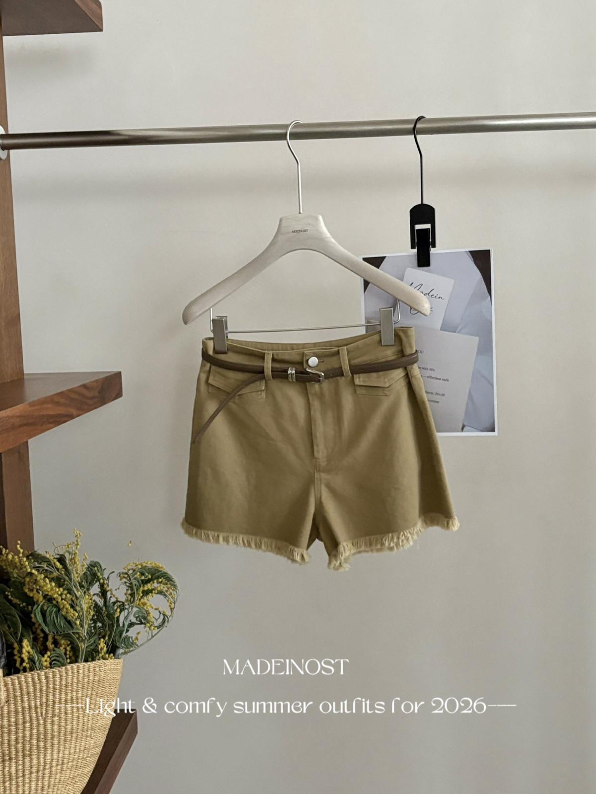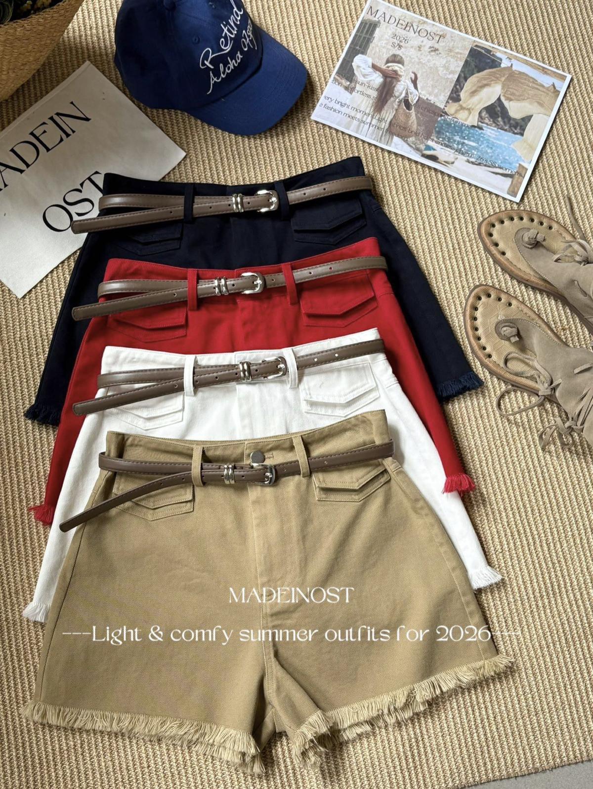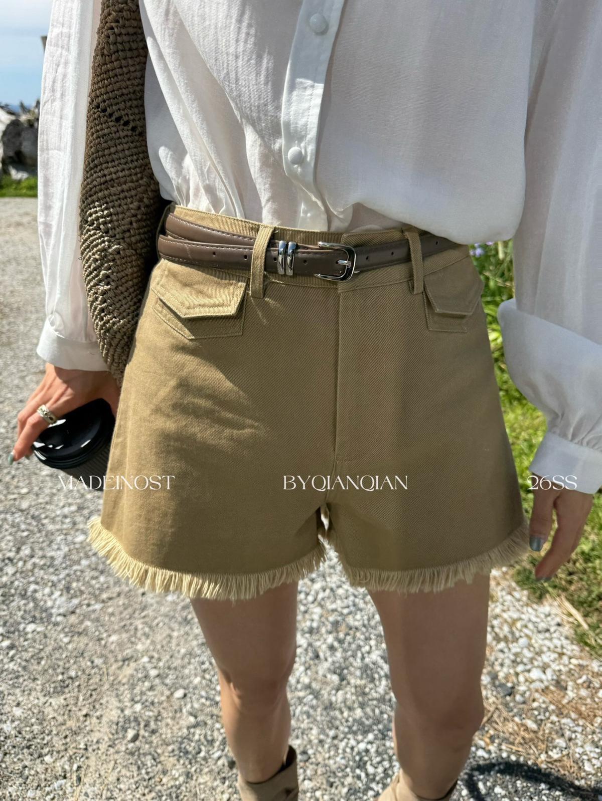 【C8906】英倫極簡口袋毛須休閒短褲(配腰帶)
