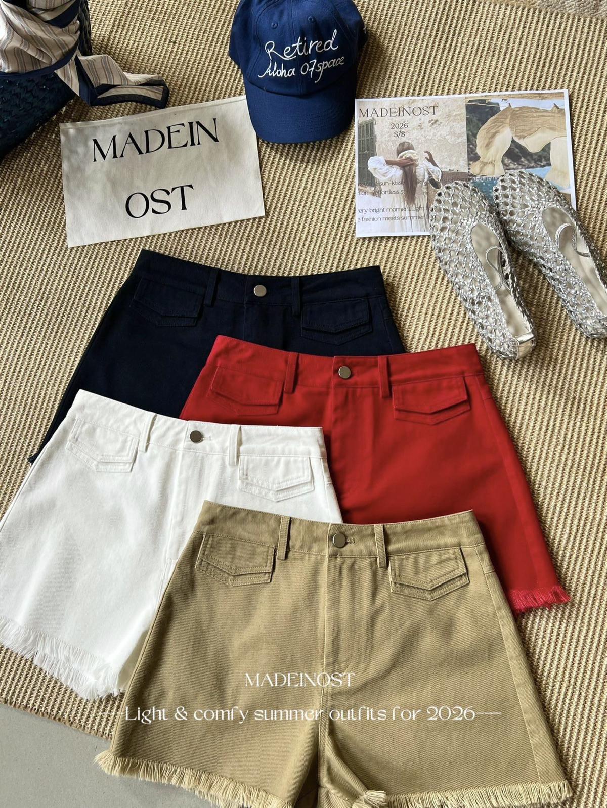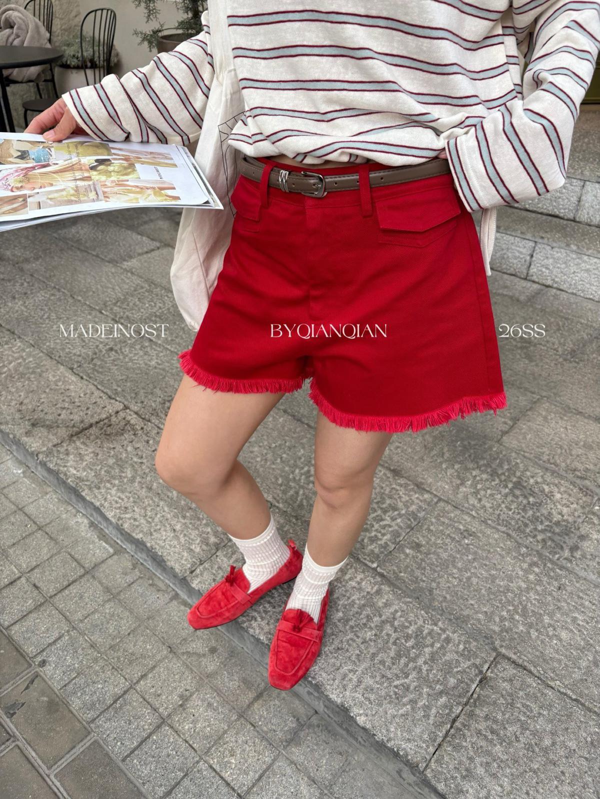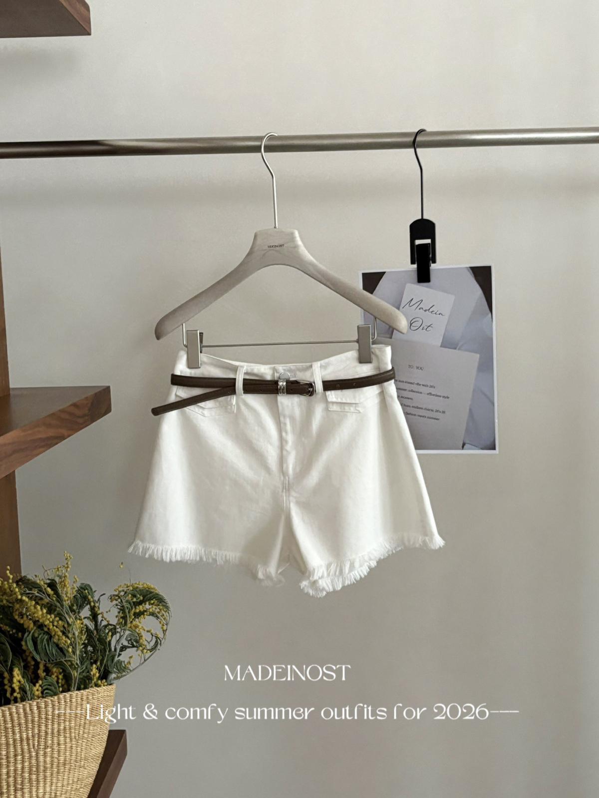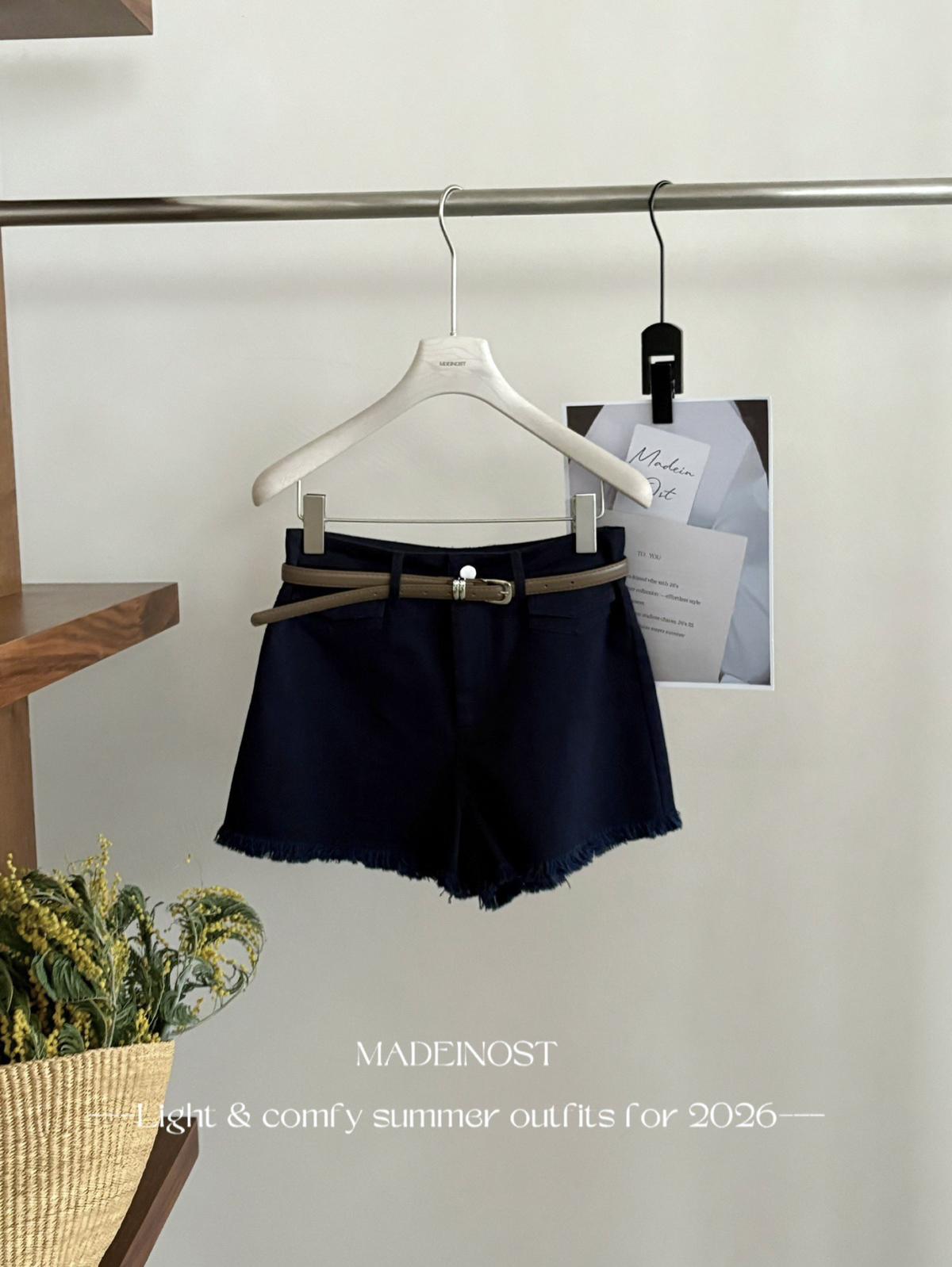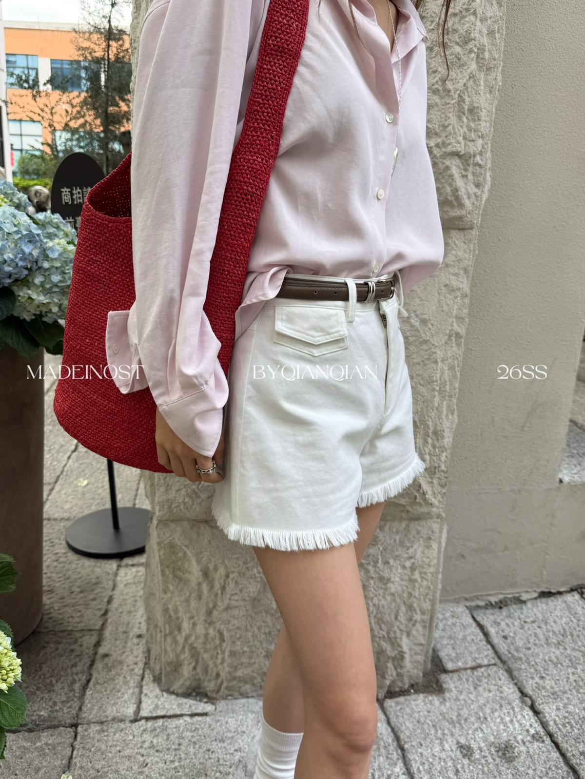 【C8906】英倫極簡口袋毛須休閒短褲(配腰帶)