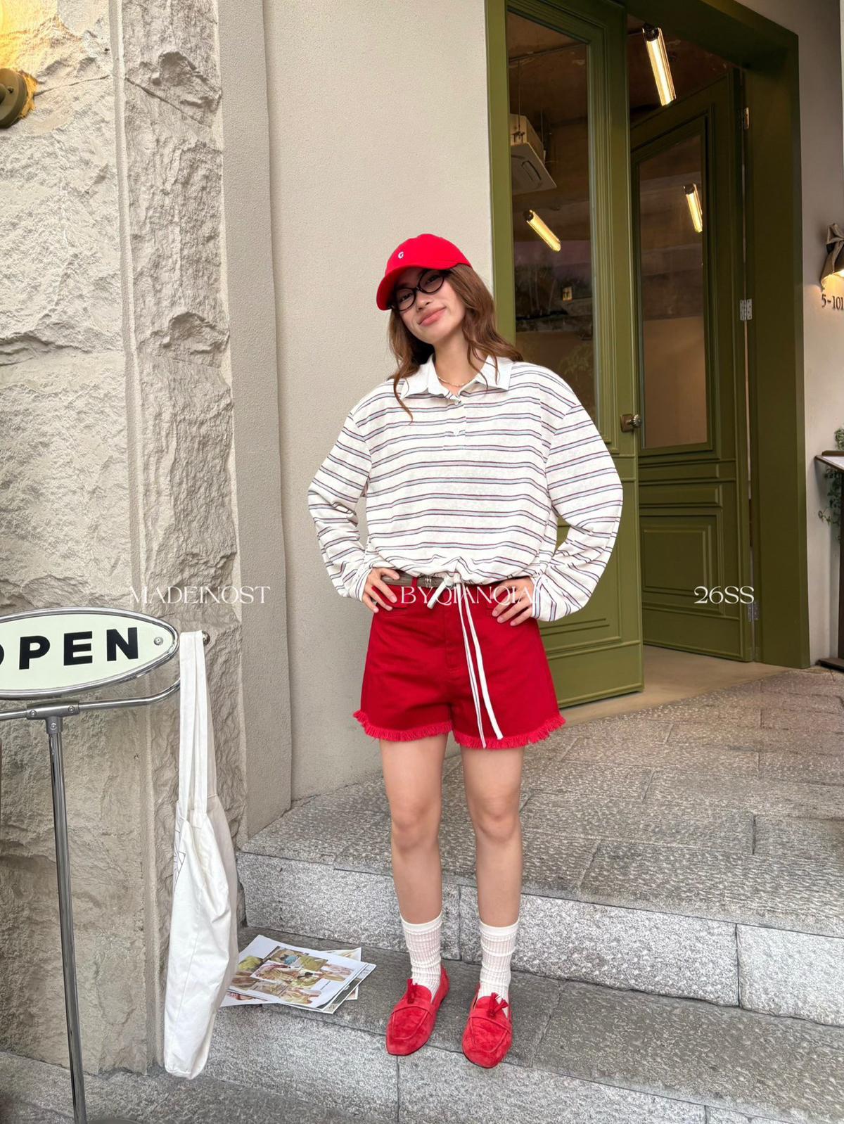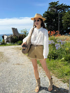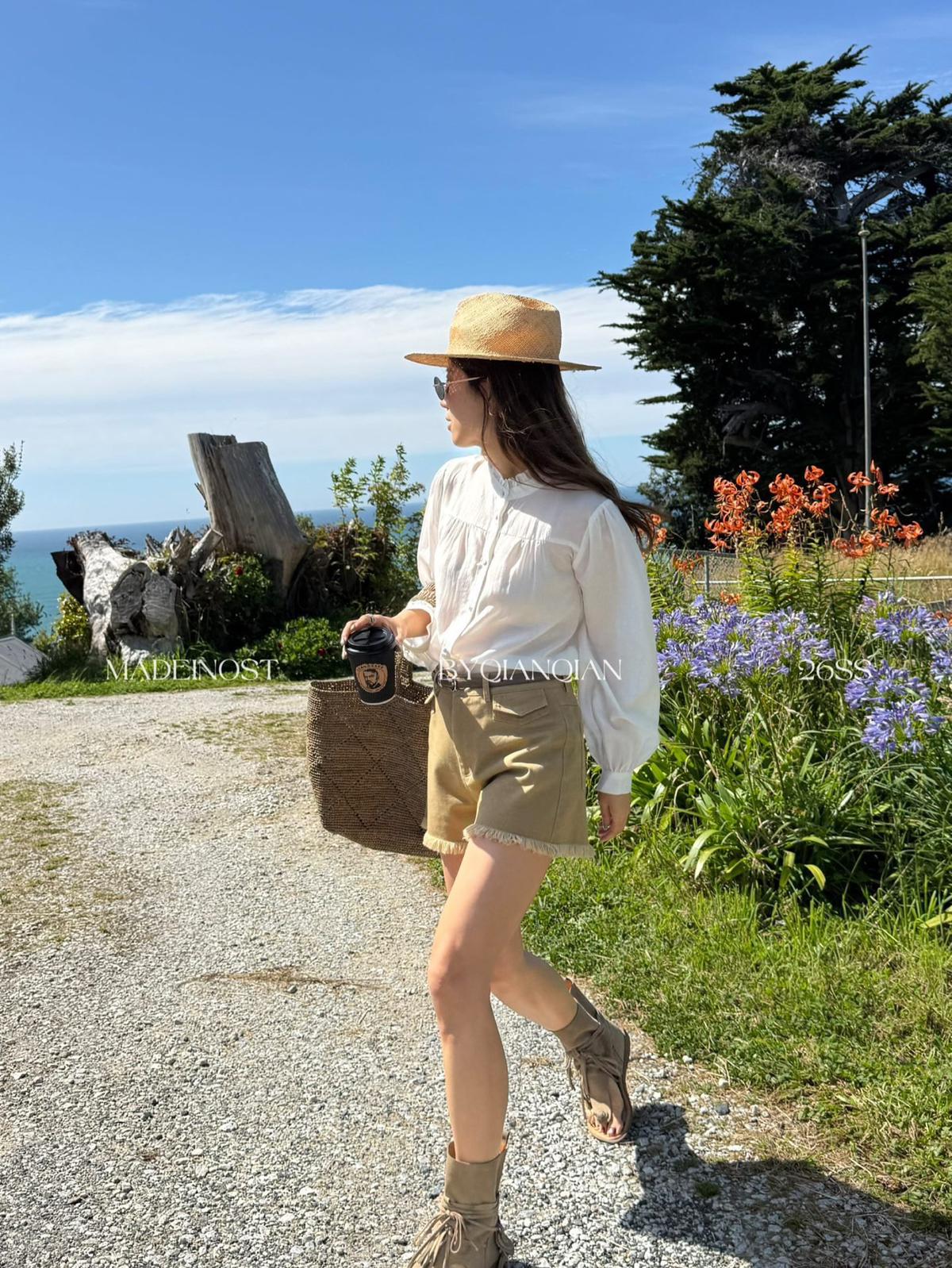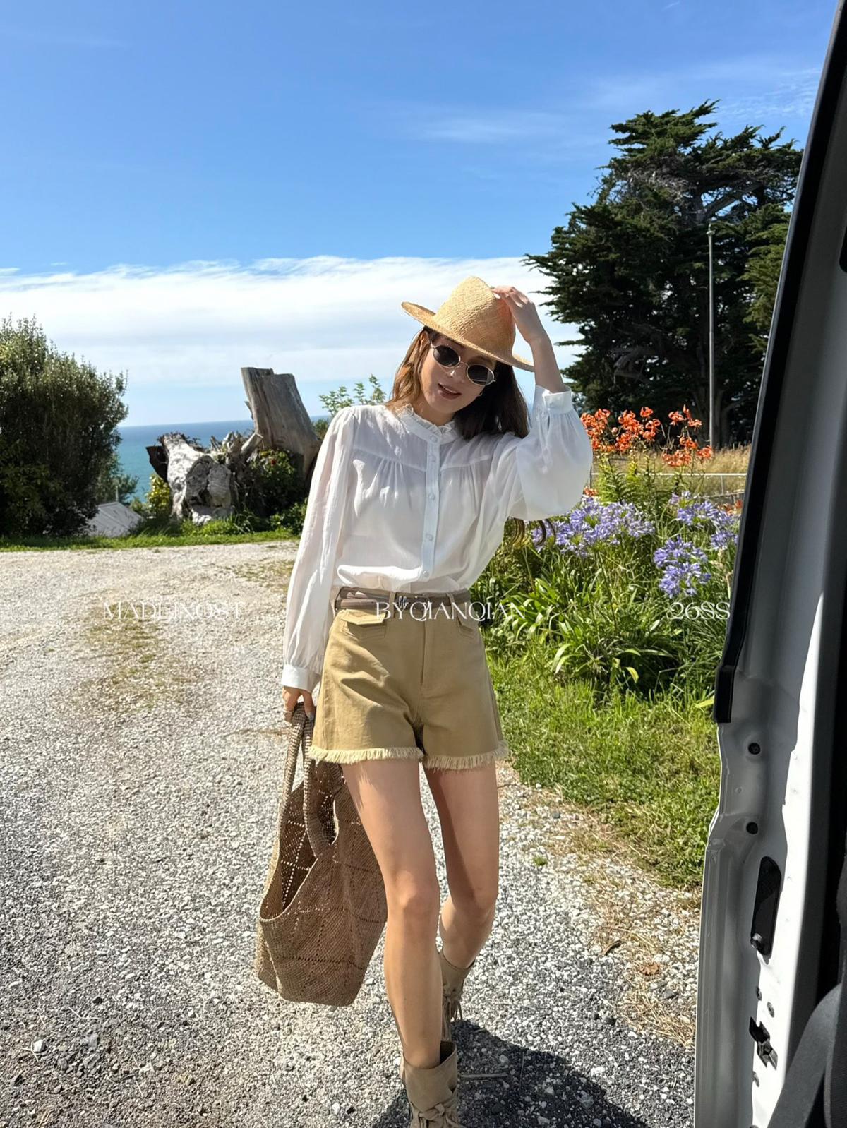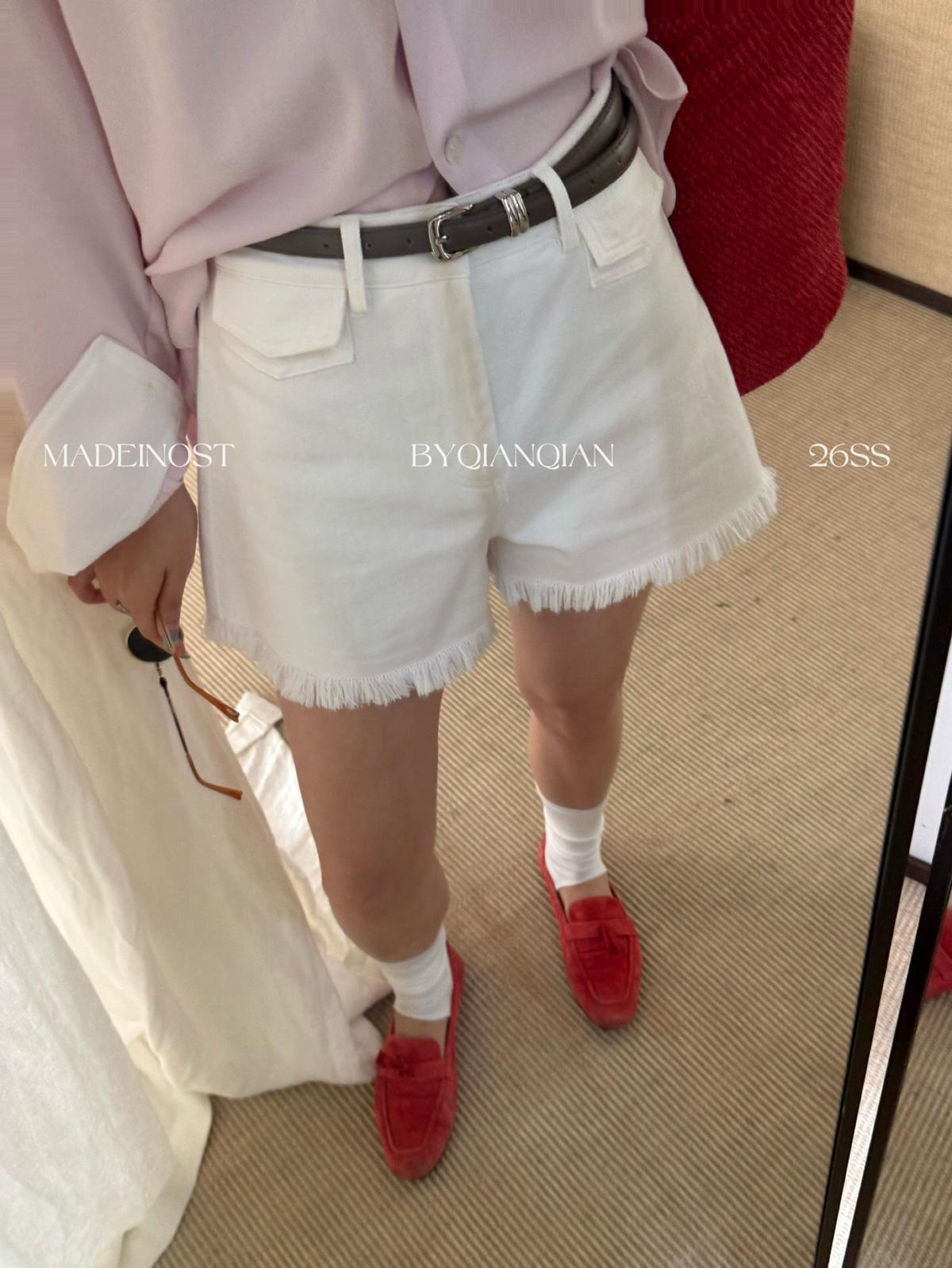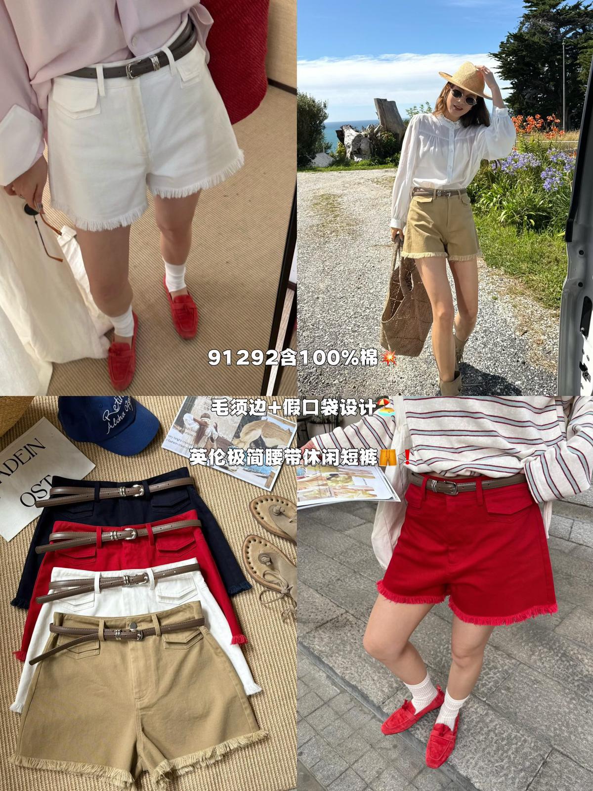 【C8906】英倫極簡口袋毛須休閒短褲(配腰帶)