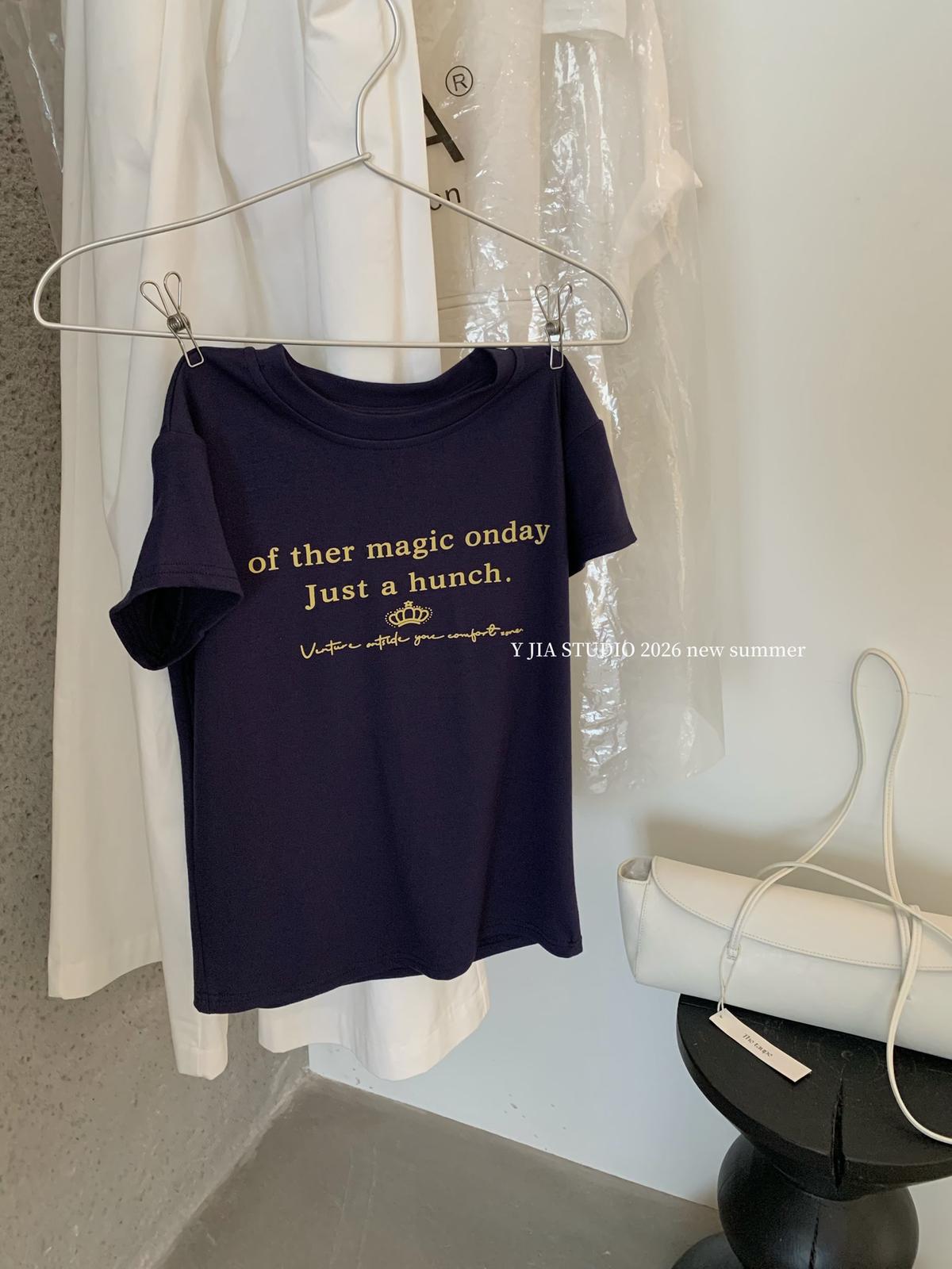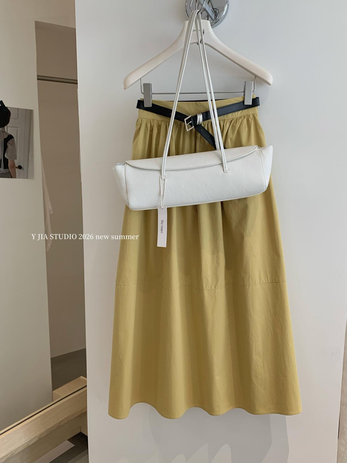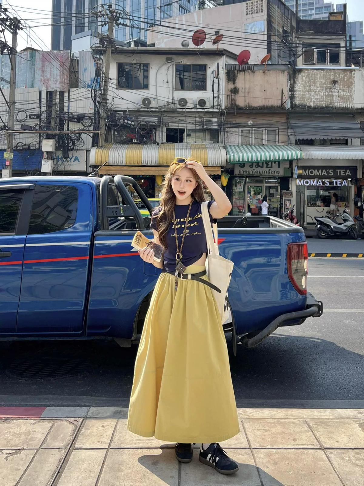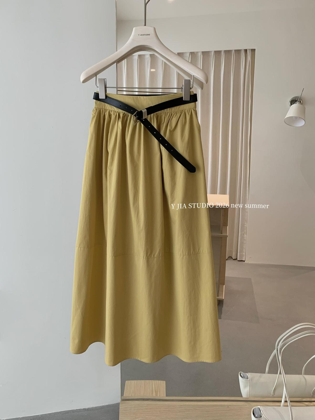 3. 【C8910】仲夏清涼美式復古撞色印花修身短袖T恤+高腰壓褶a字半裙兩件套套裝(配腰帶)