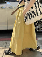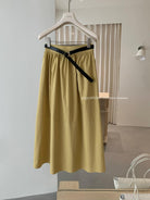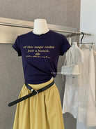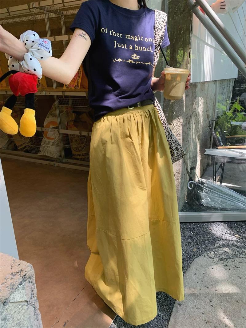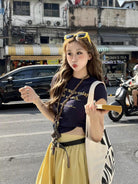 【C8910】仲夏清涼美式復古撞色印花修身短袖T恤+高腰壓褶a字半裙兩件套套裝(配腰帶)