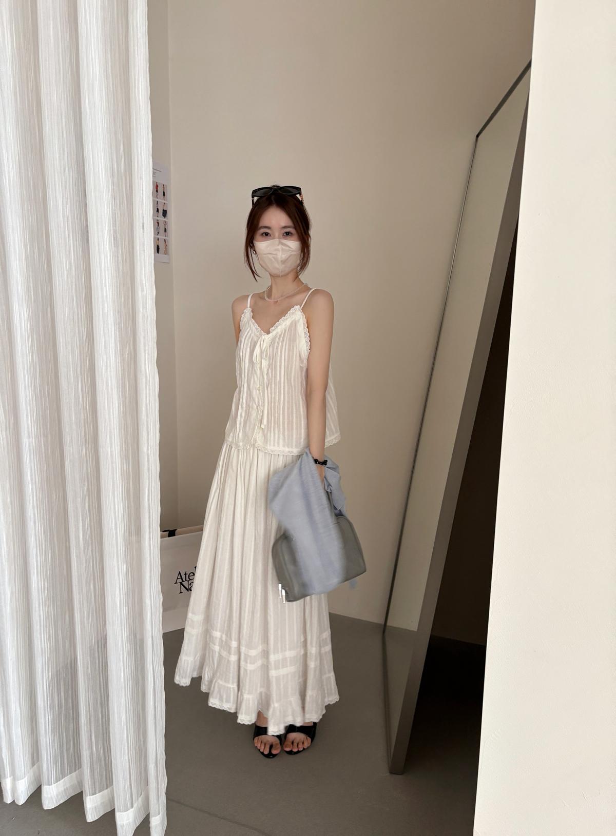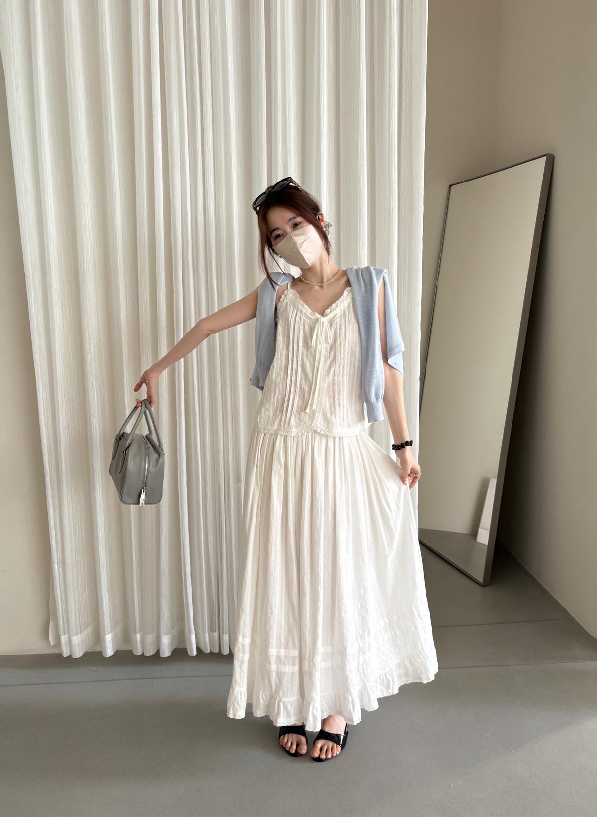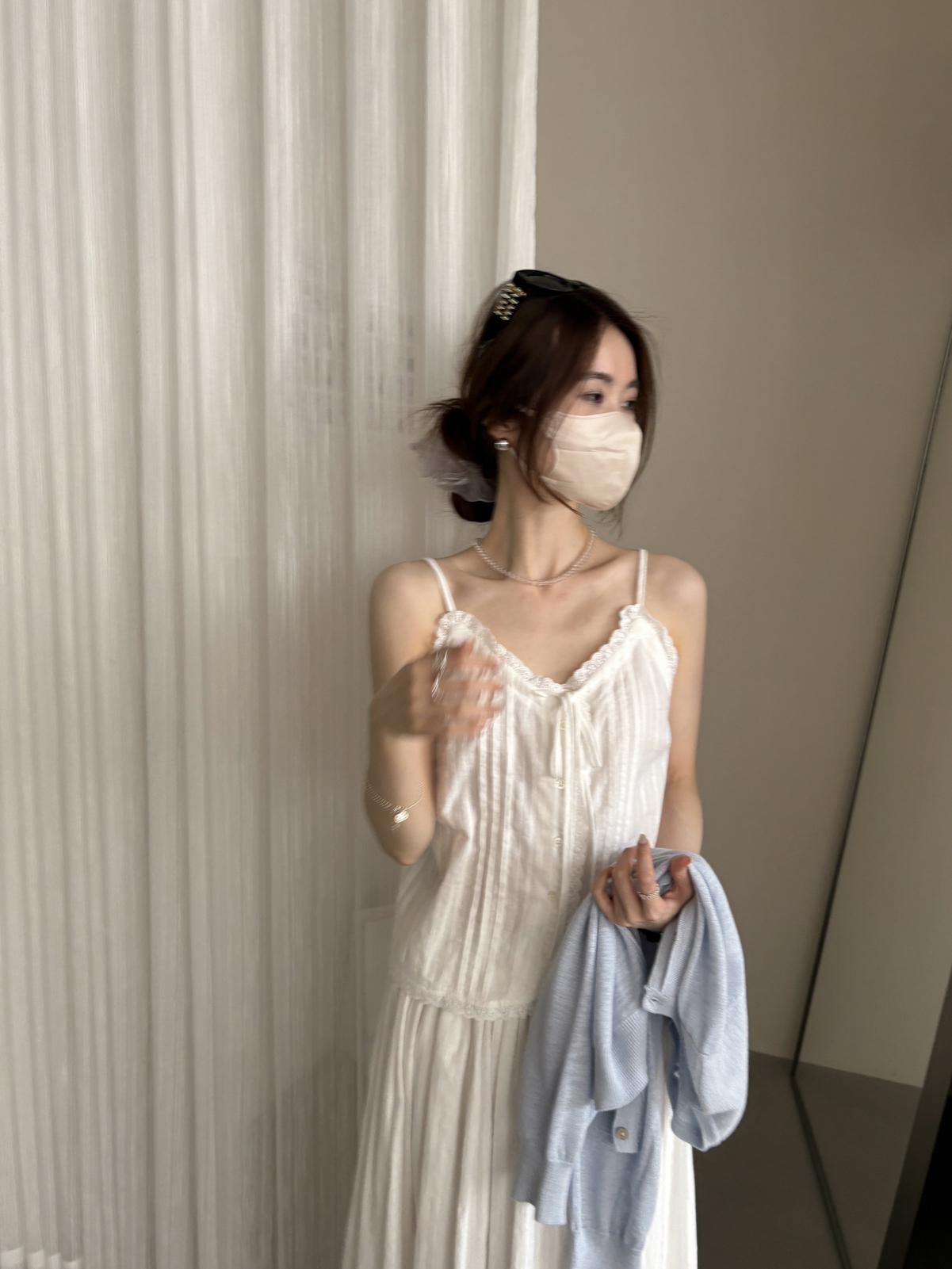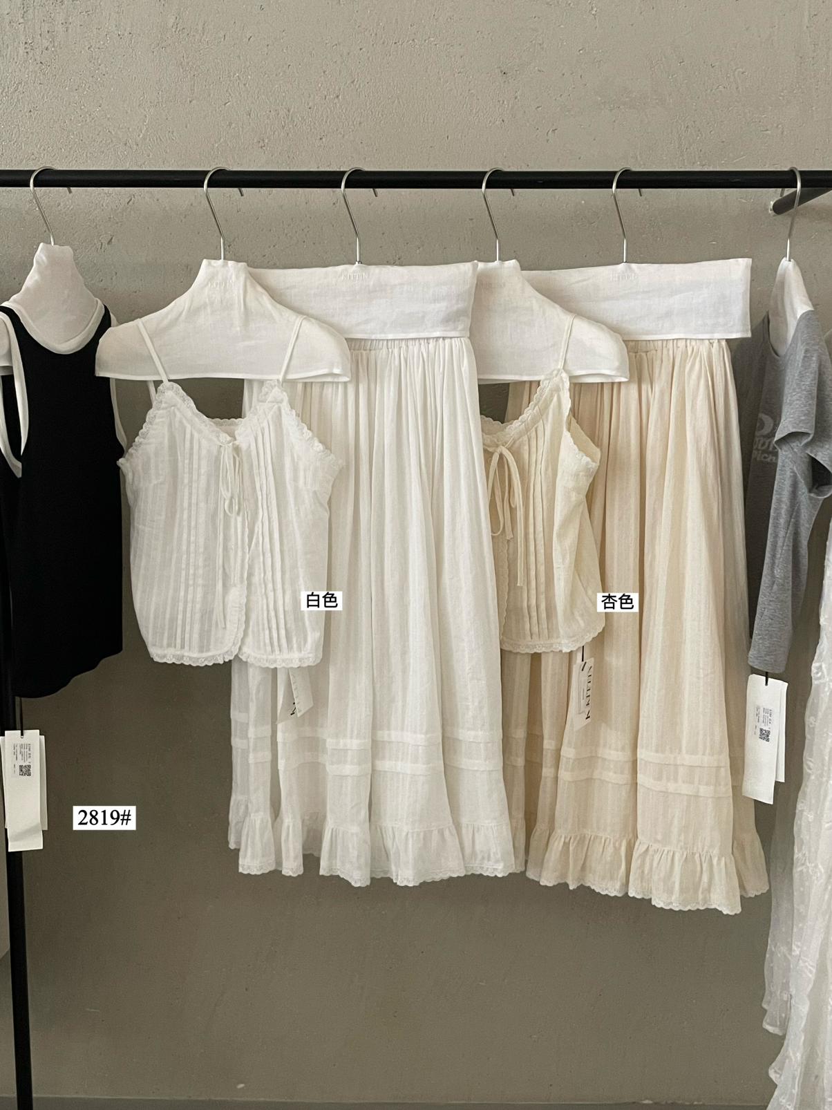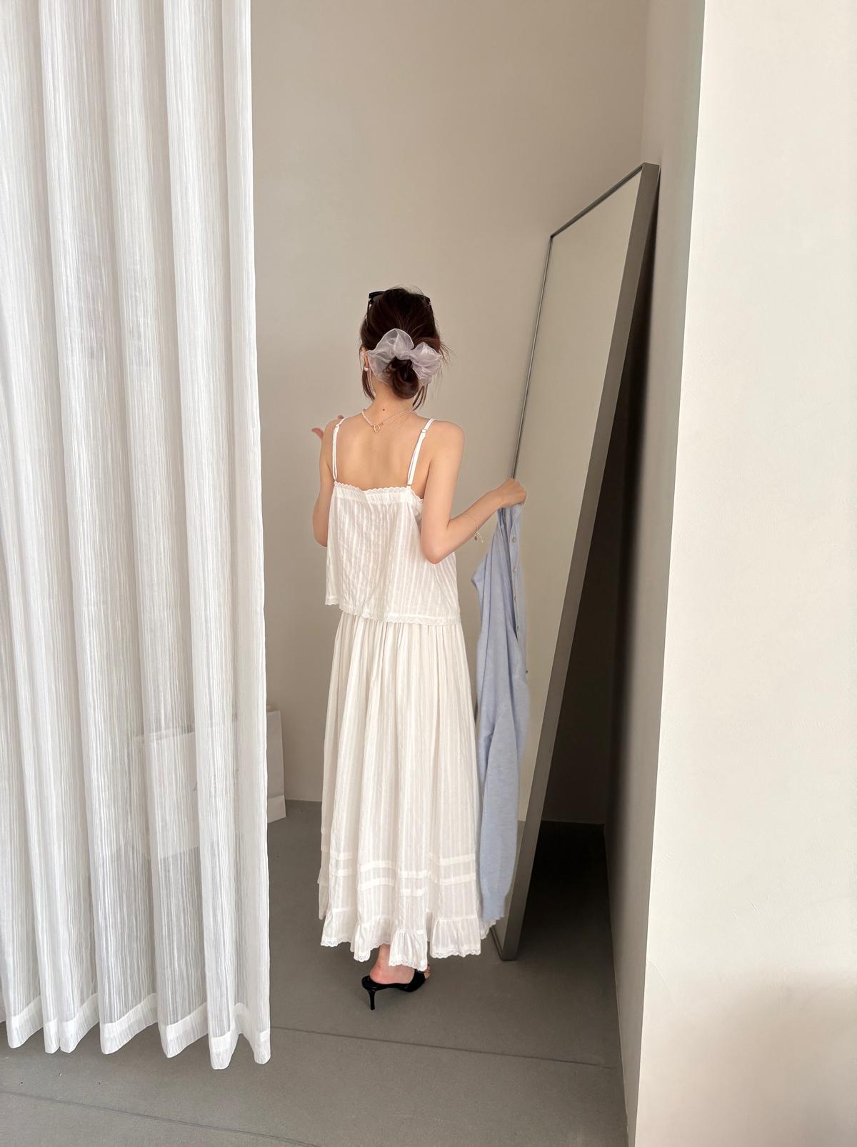 3. 【C9149】韓系精緻氣質小女人慵懶花邊吊帶背心+半身裙套裝