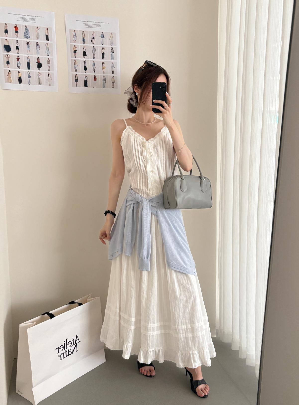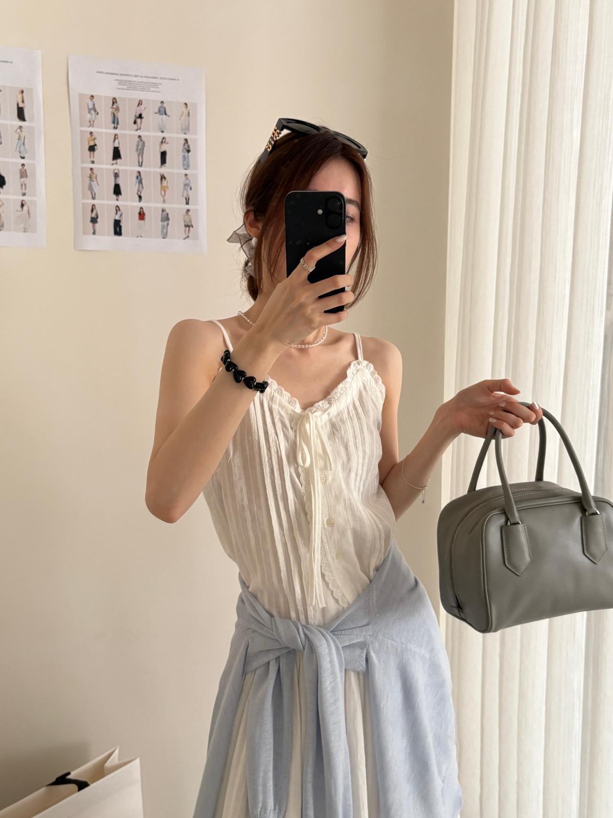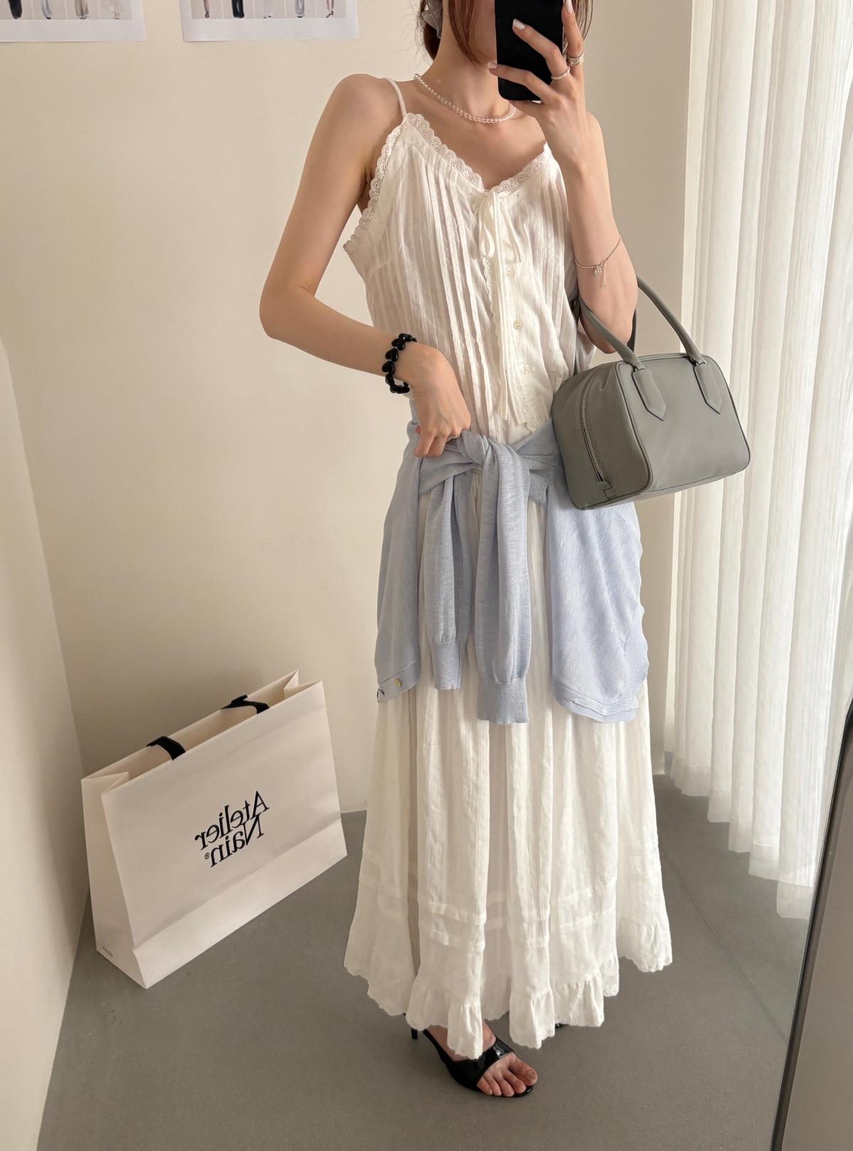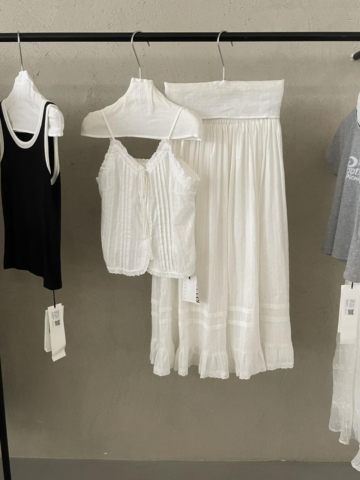 3. 【C9149】韓系精緻氣質小女人慵懶花邊吊帶背心+半身裙套裝
