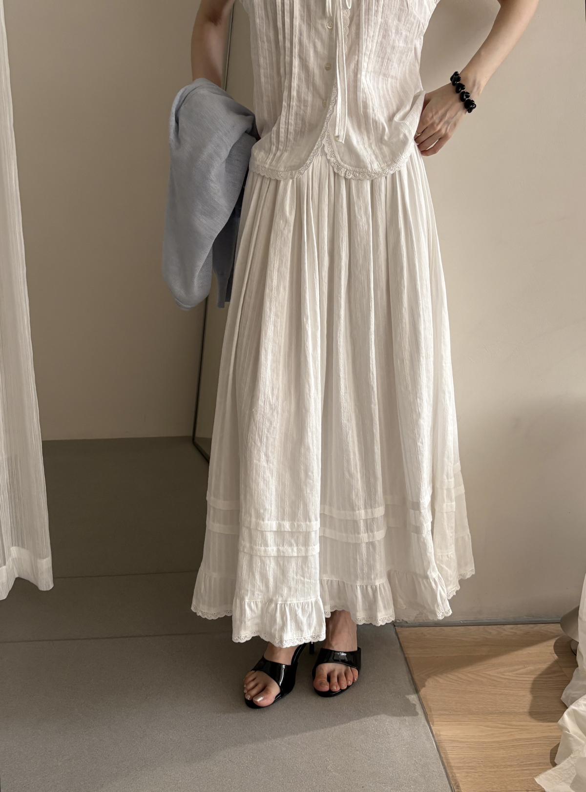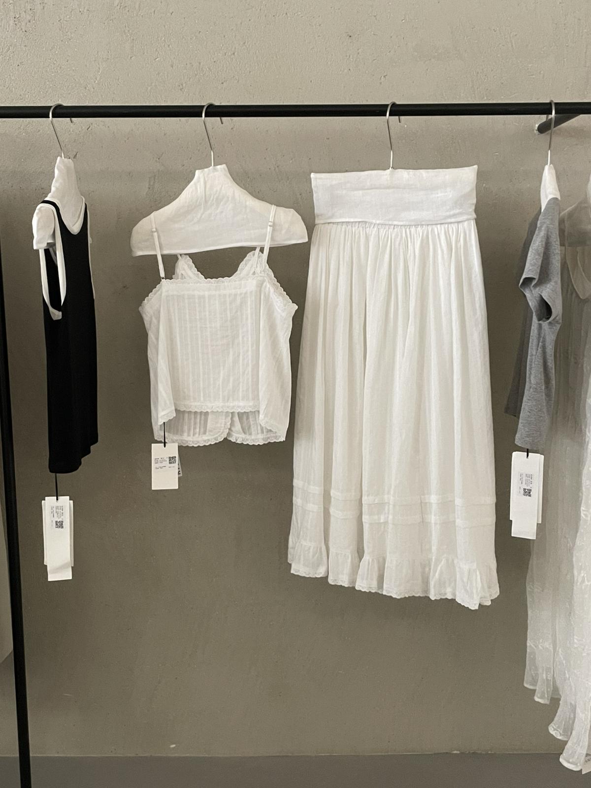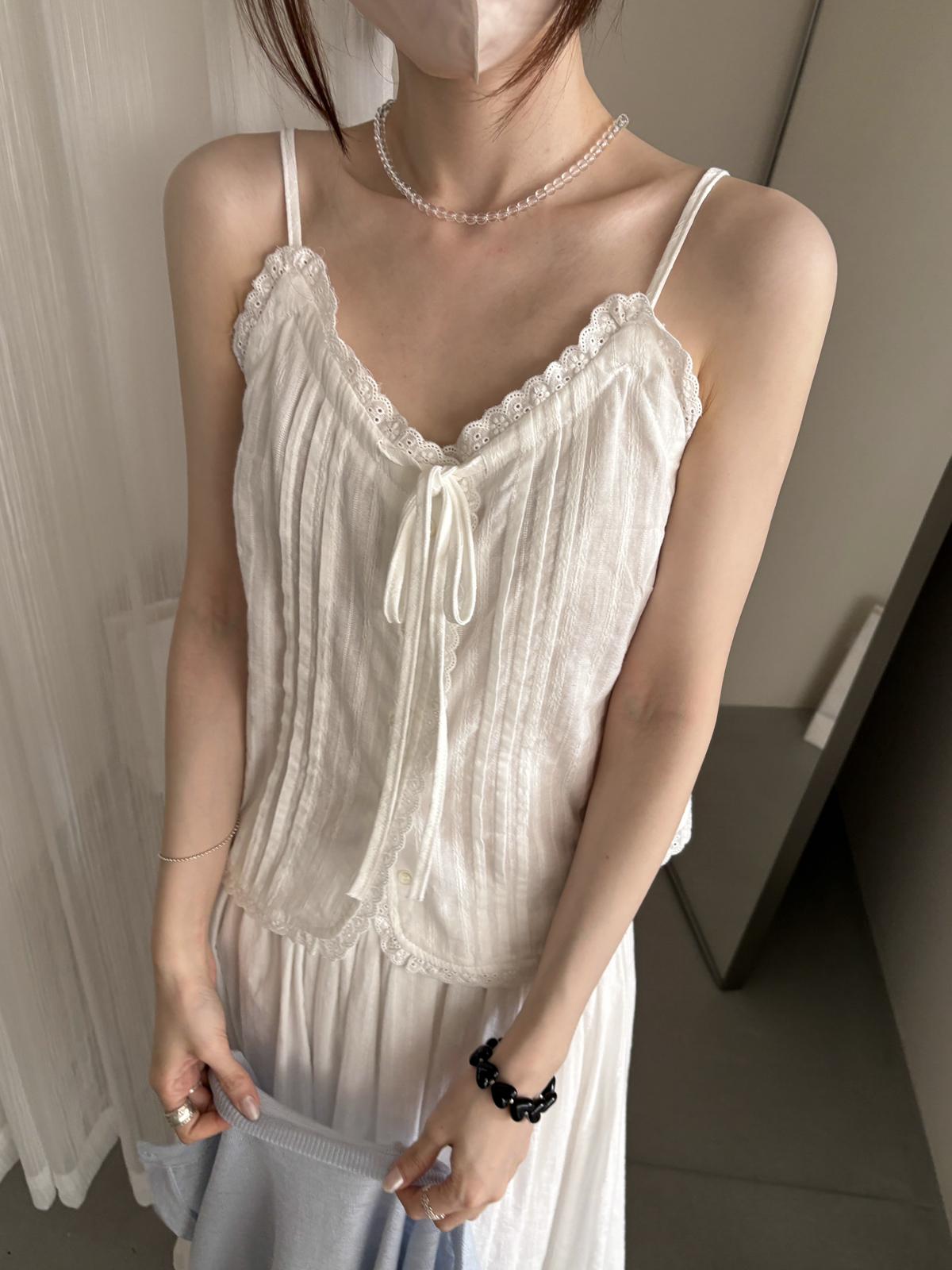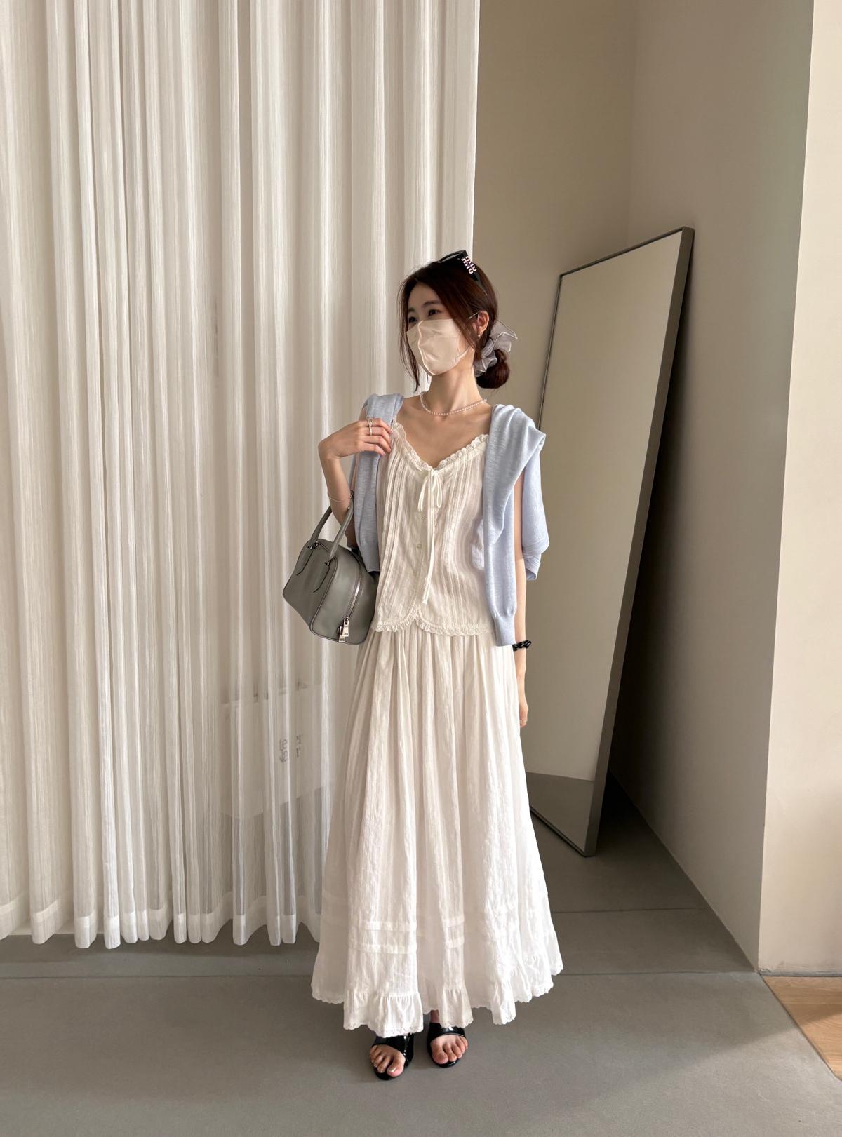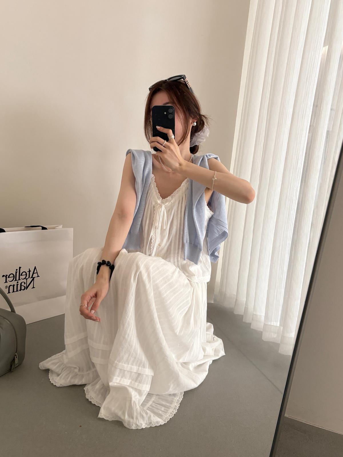 3. 【C9149】韓系精緻氣質小女人慵懶花邊吊帶背心+半身裙套裝