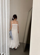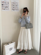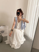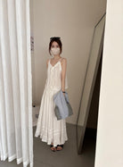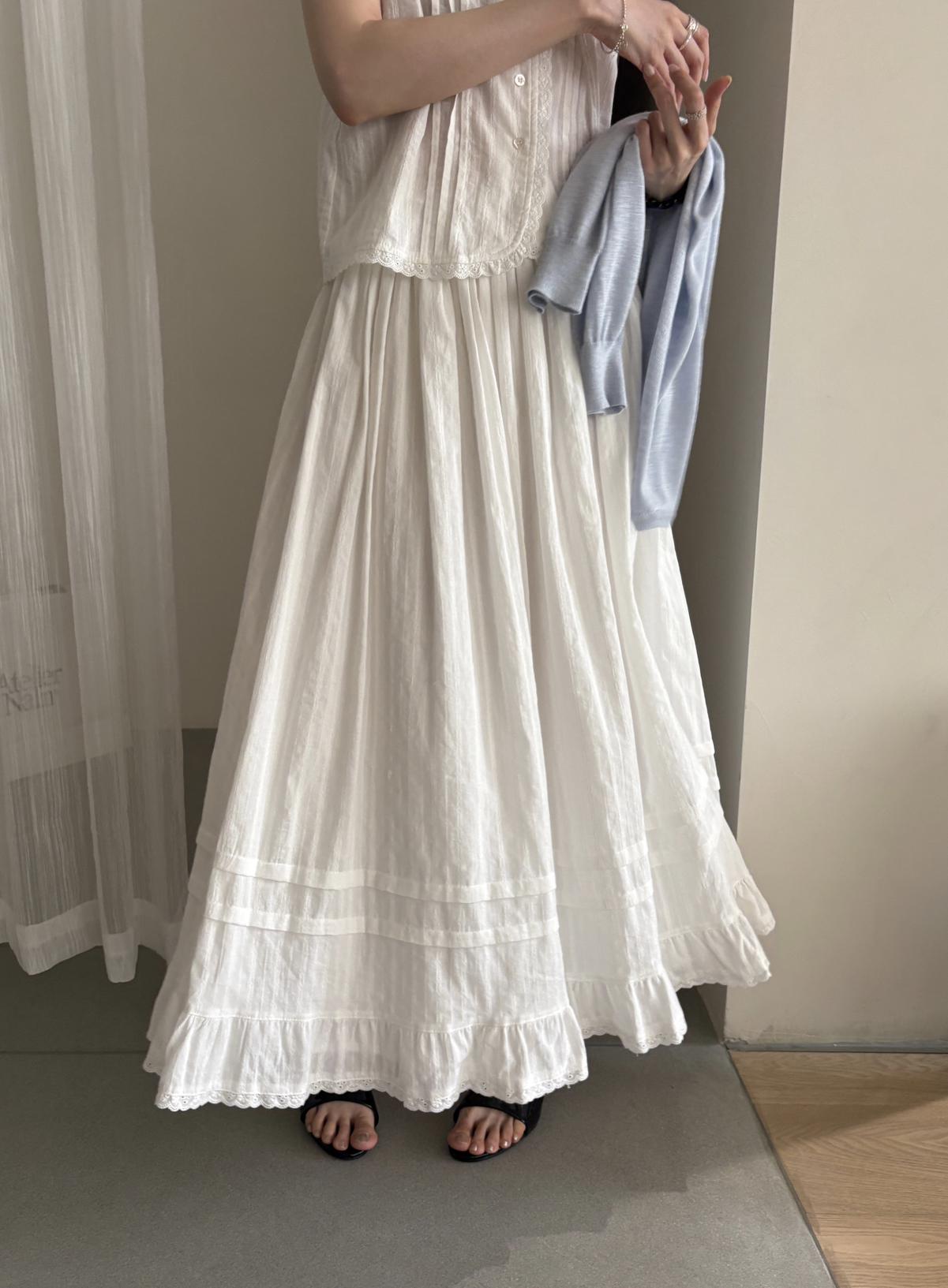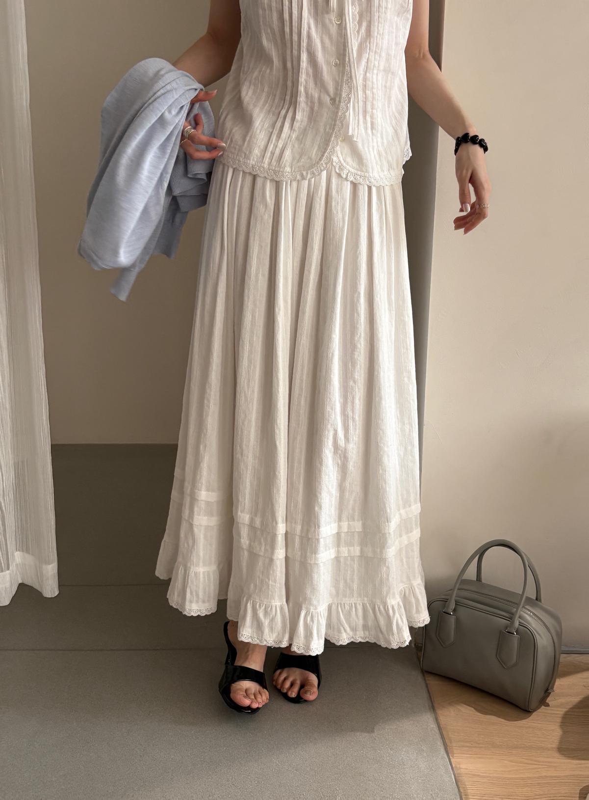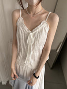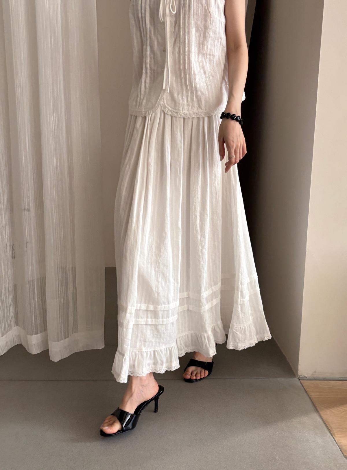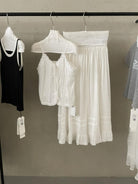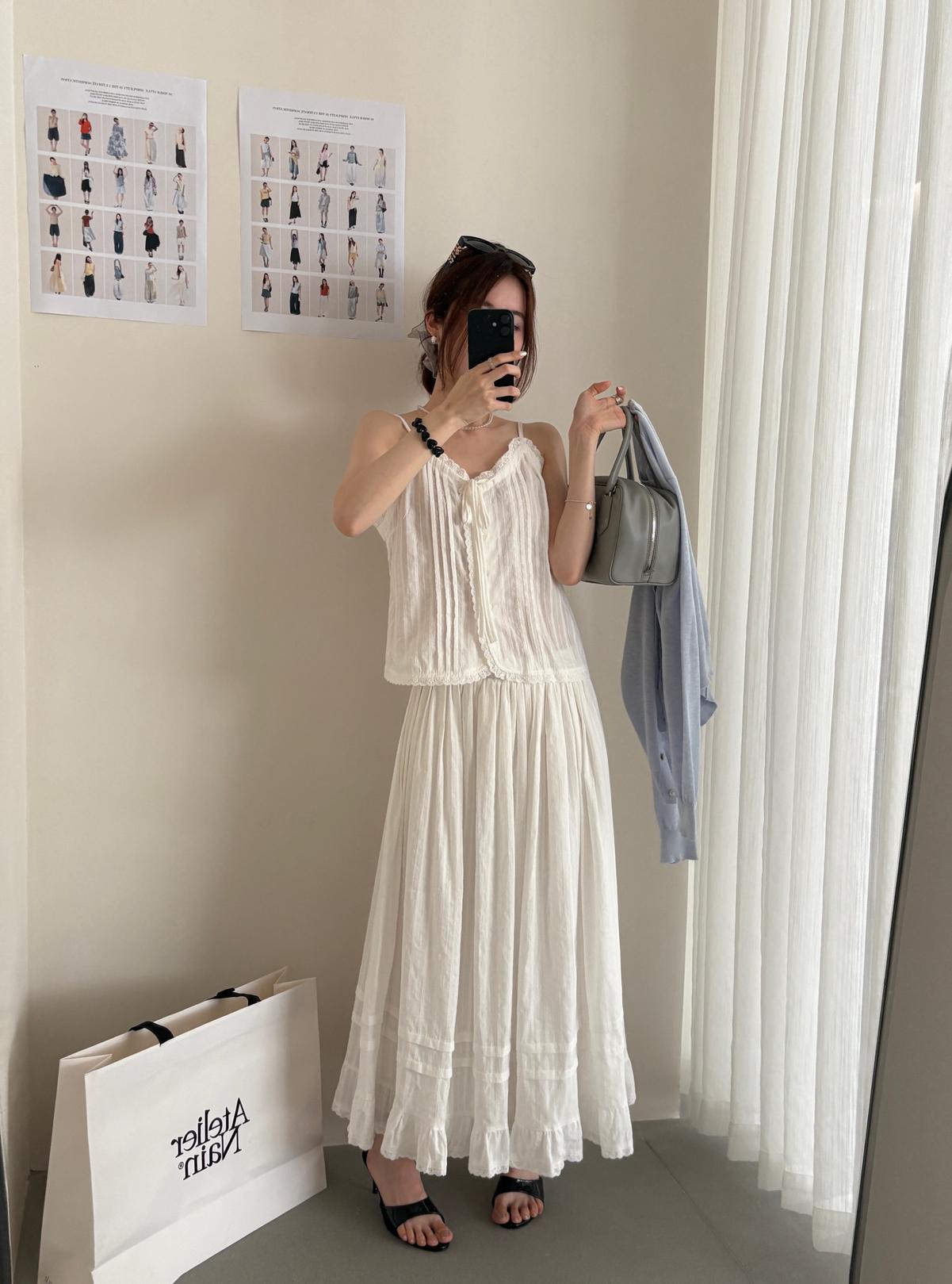 【C9149】韓系精緻氣質小女人慵懶花邊吊帶背心+半身裙套裝