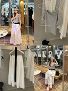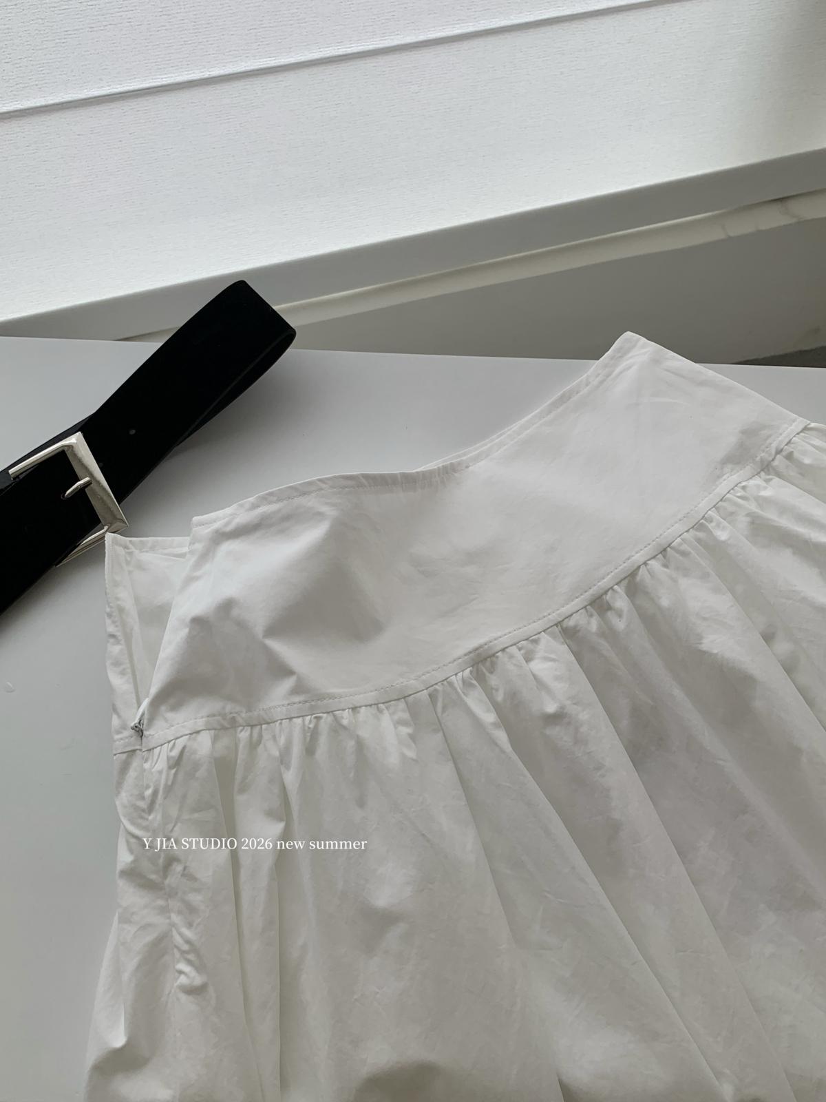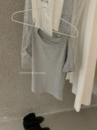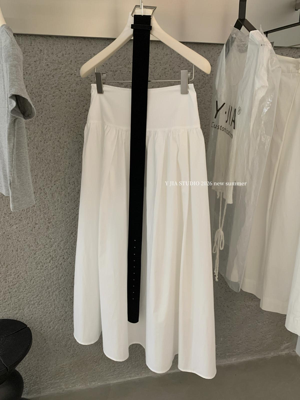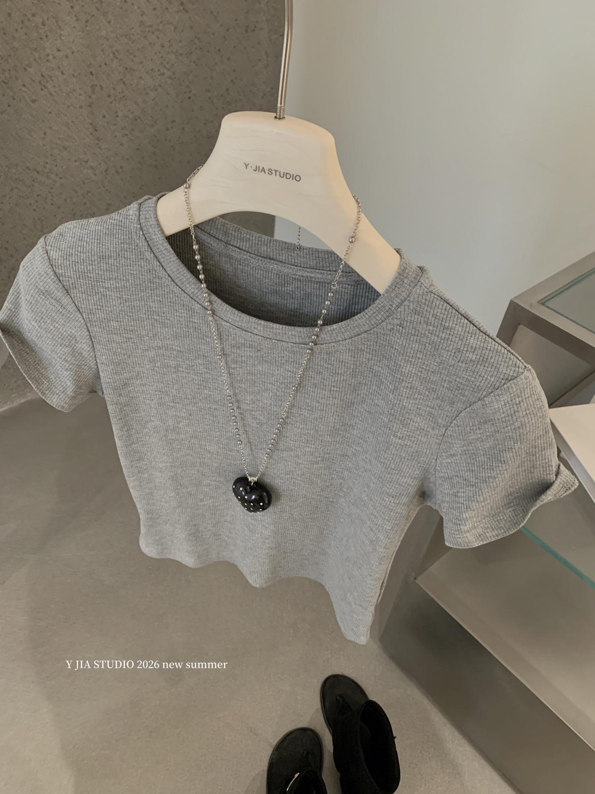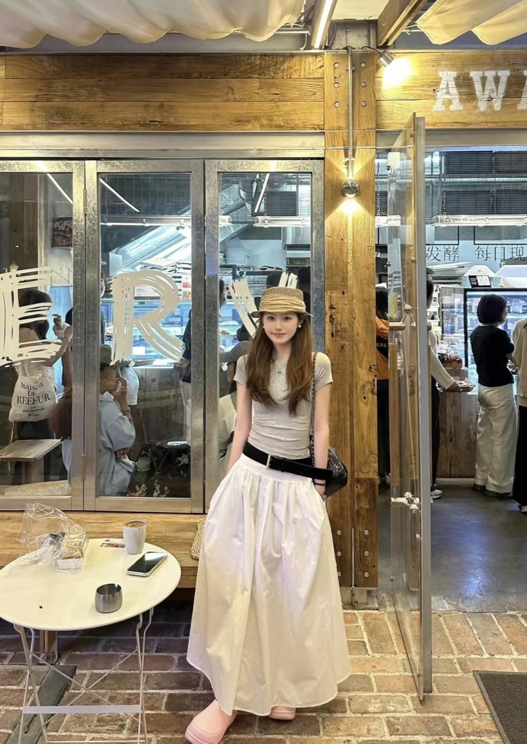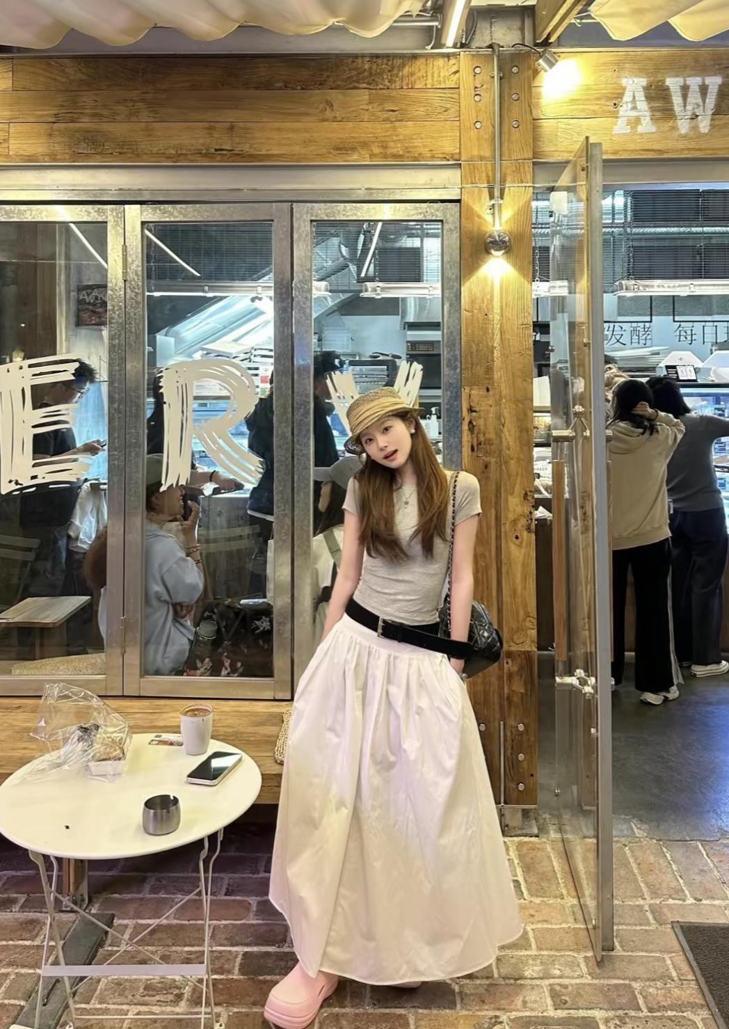【C9190】灰色圓領顯瘦短袖正肩T恤+高腰垂感半身裙兩件套套裝(配腰帶)