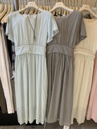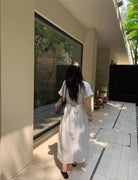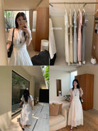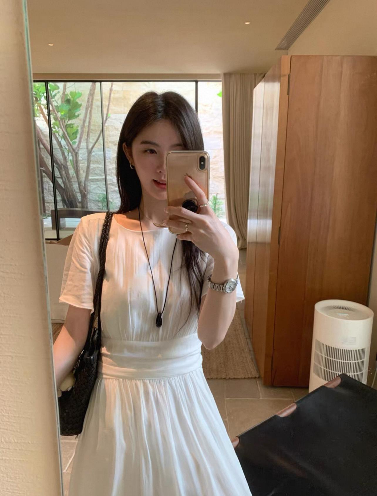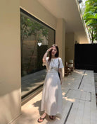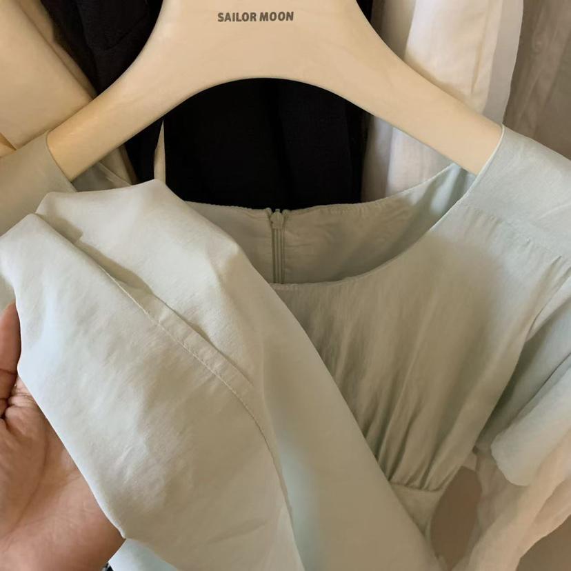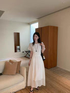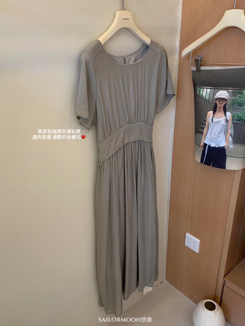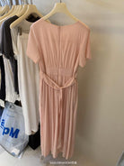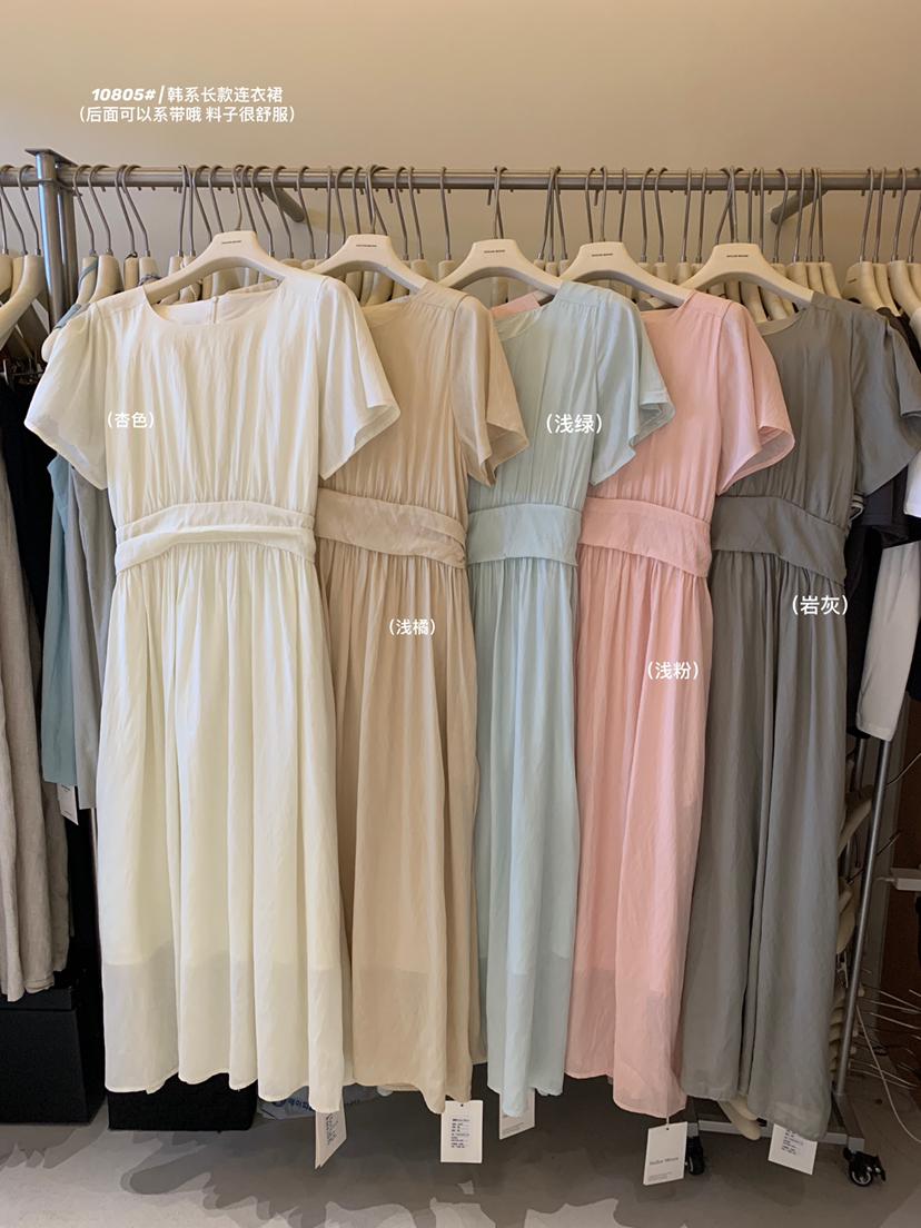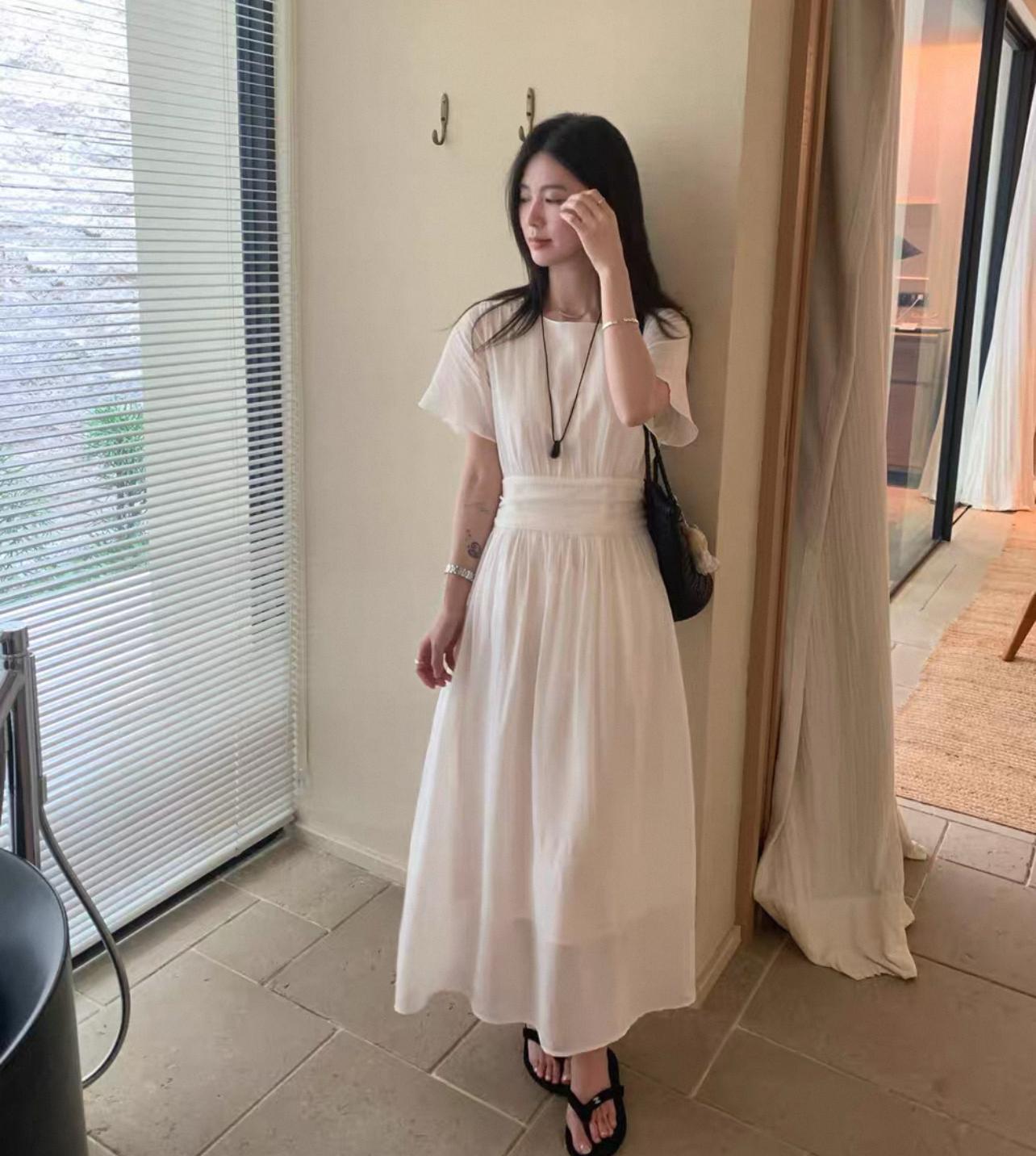 【C9192】韓系溫柔純色收腰長款連衣裙(腰帶不可拆)