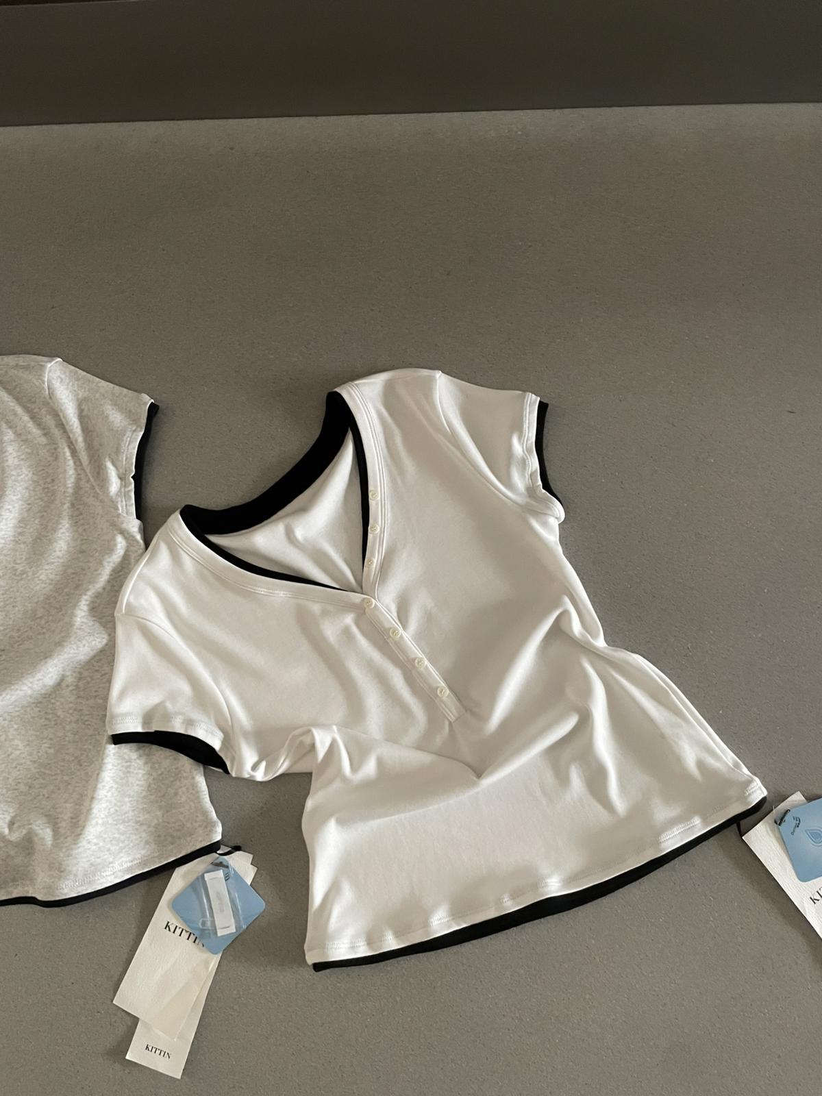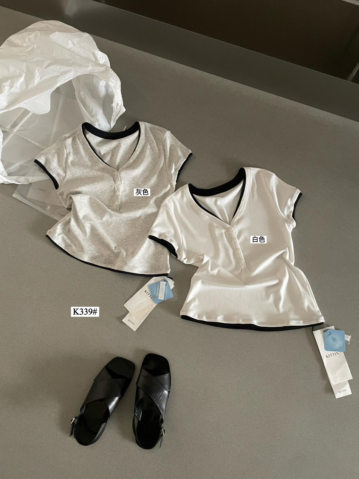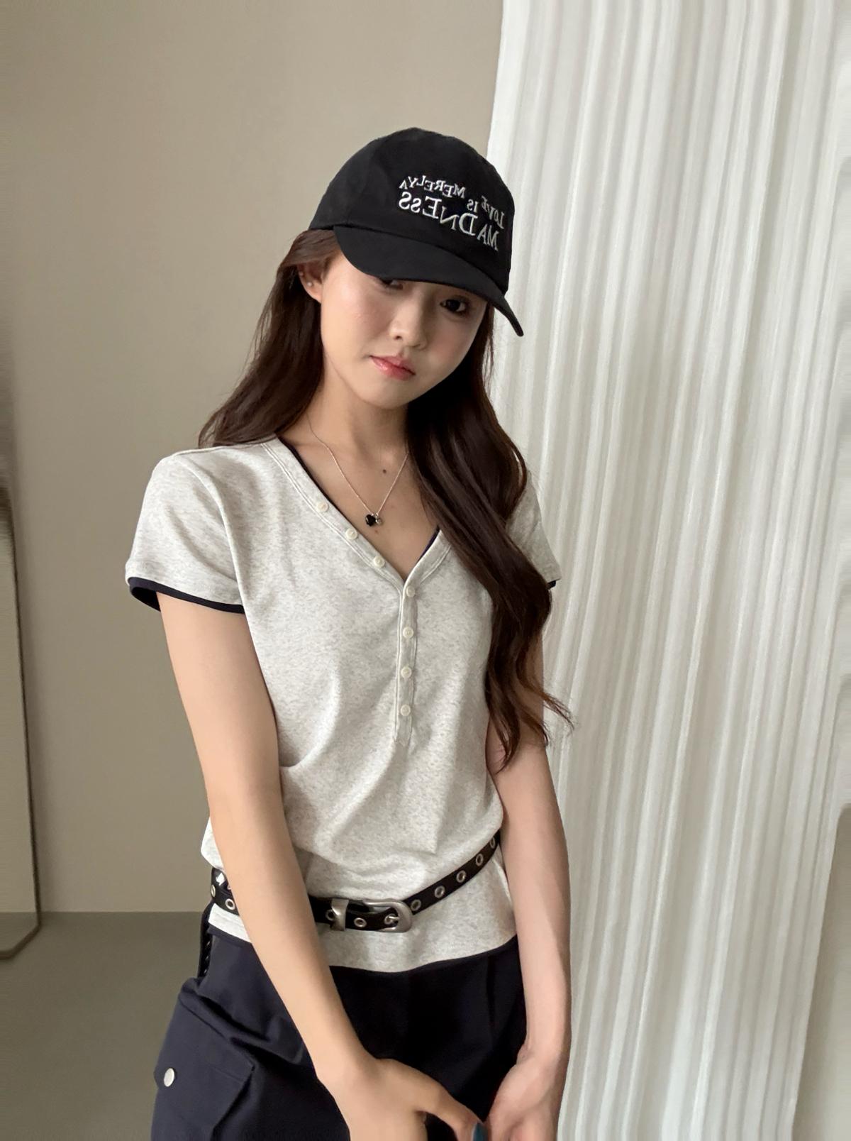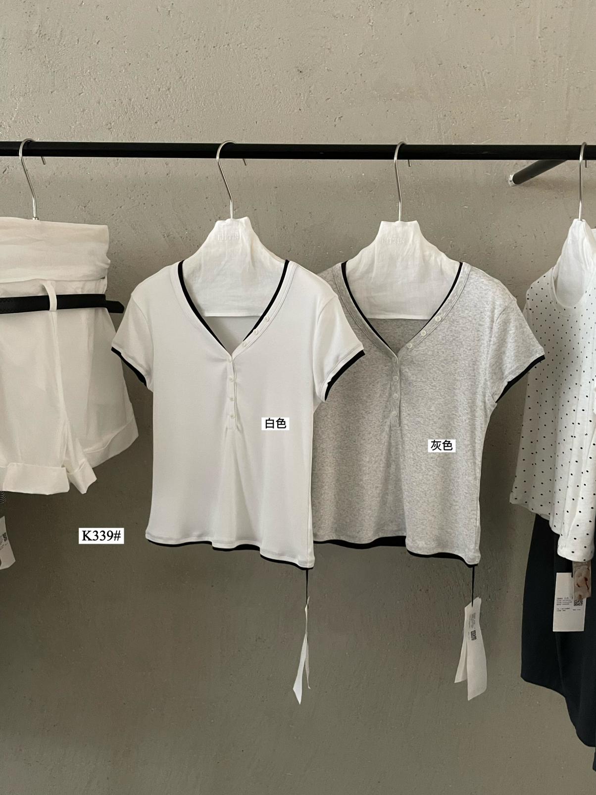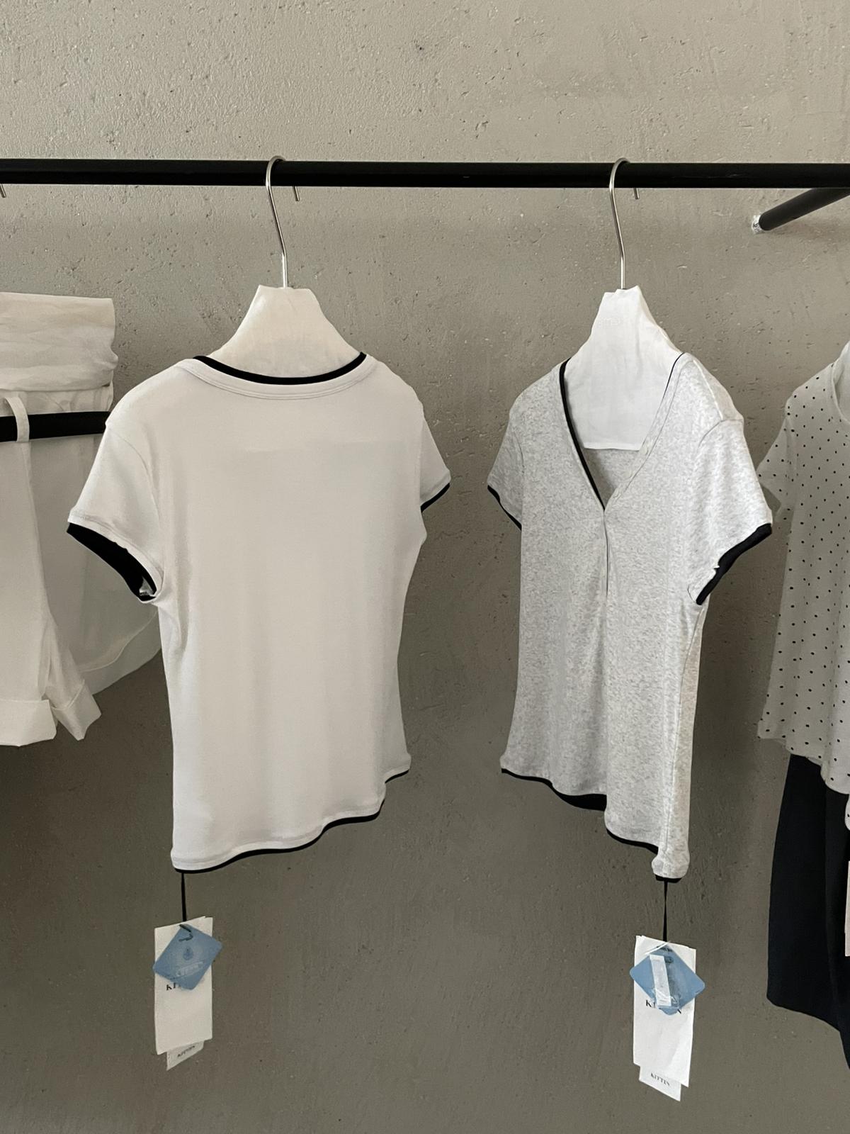 3. 【C9215】韓系設計感撞色V領短袖T恤(單賣短袖T恤)