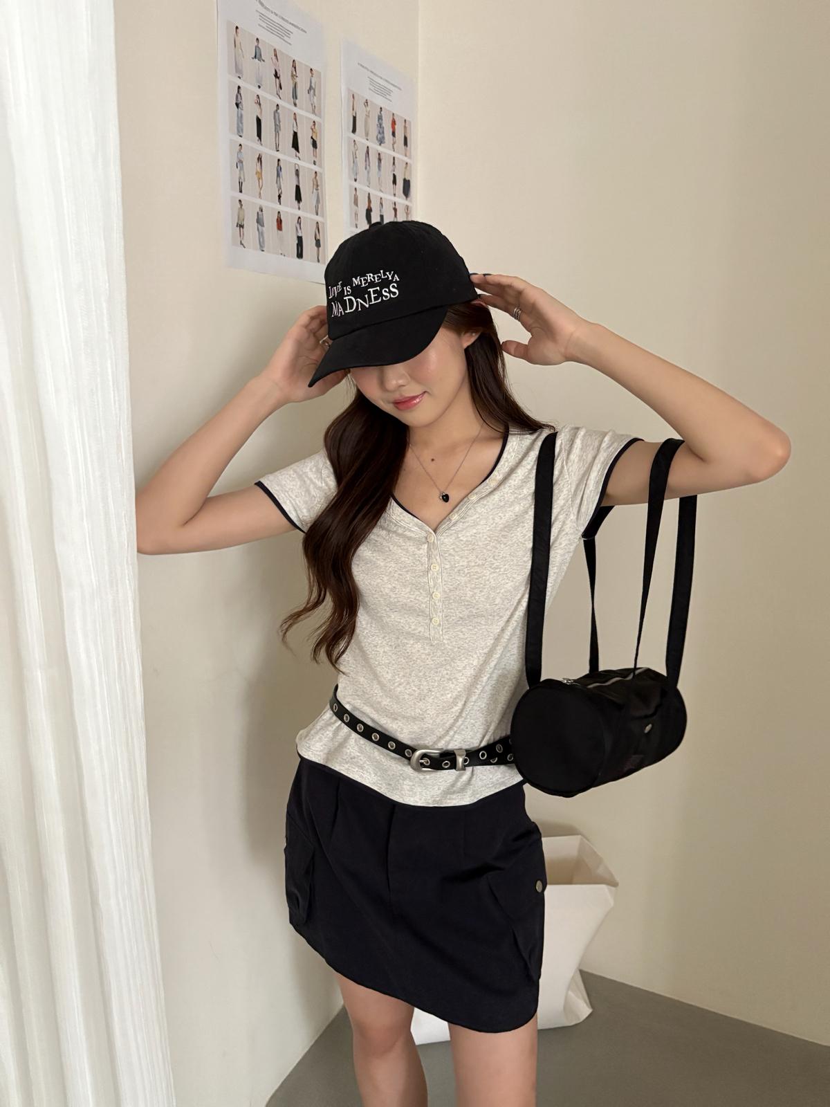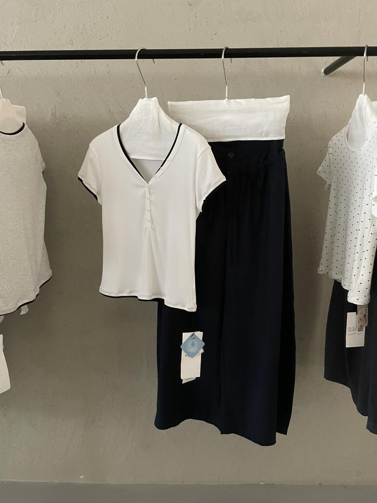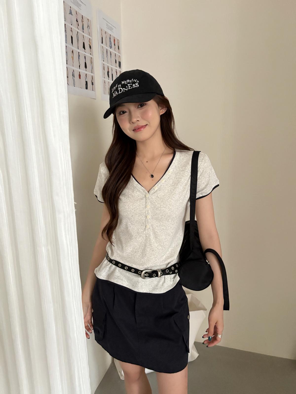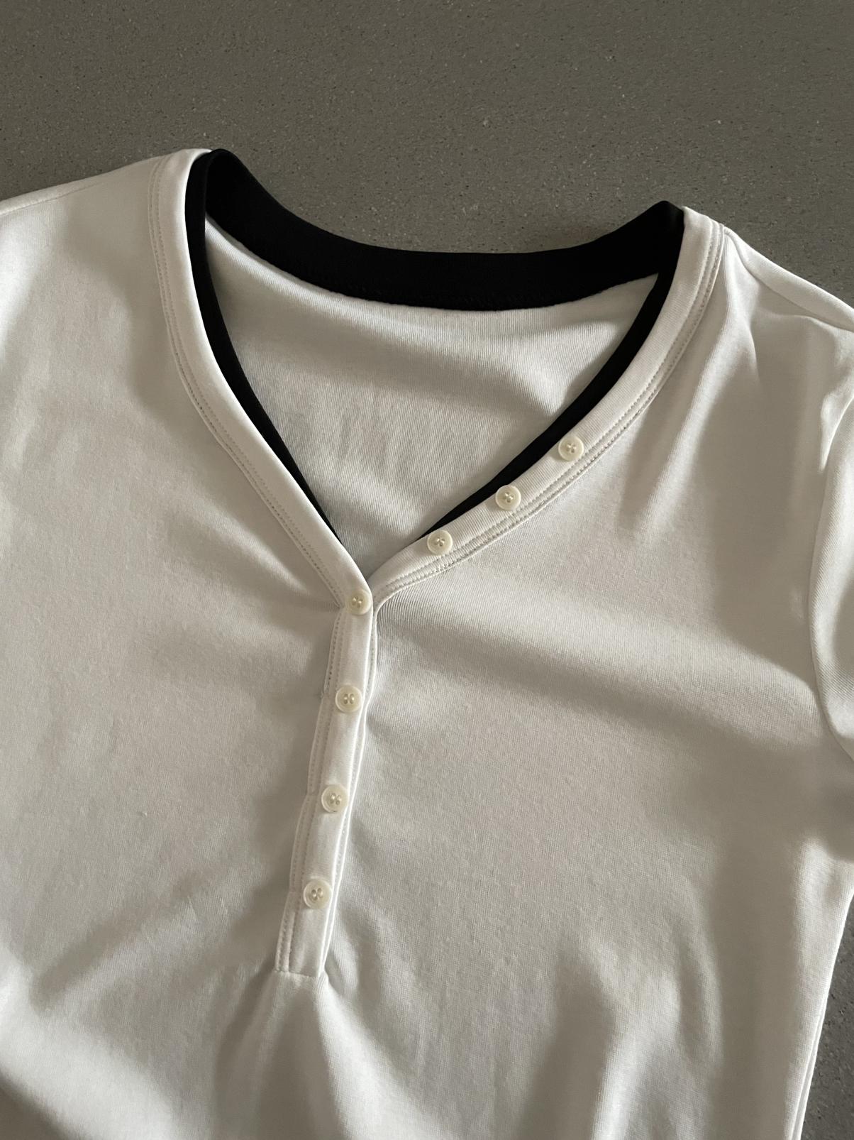3. 【C9215】韓系設計感撞色V領短袖T恤(單賣短袖T恤)