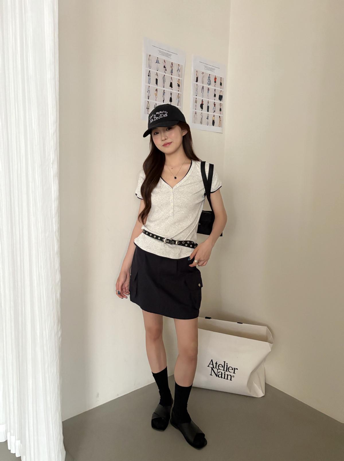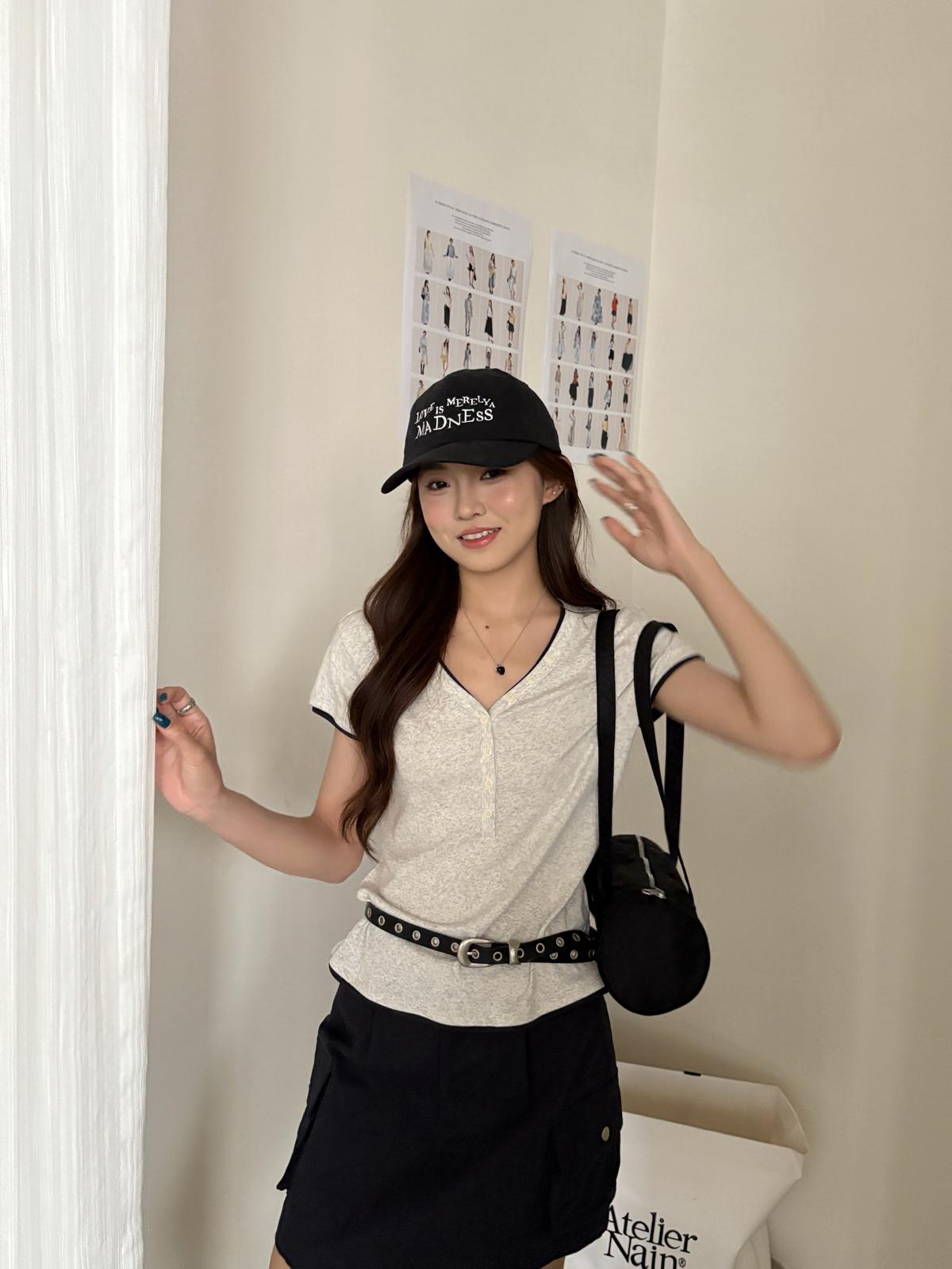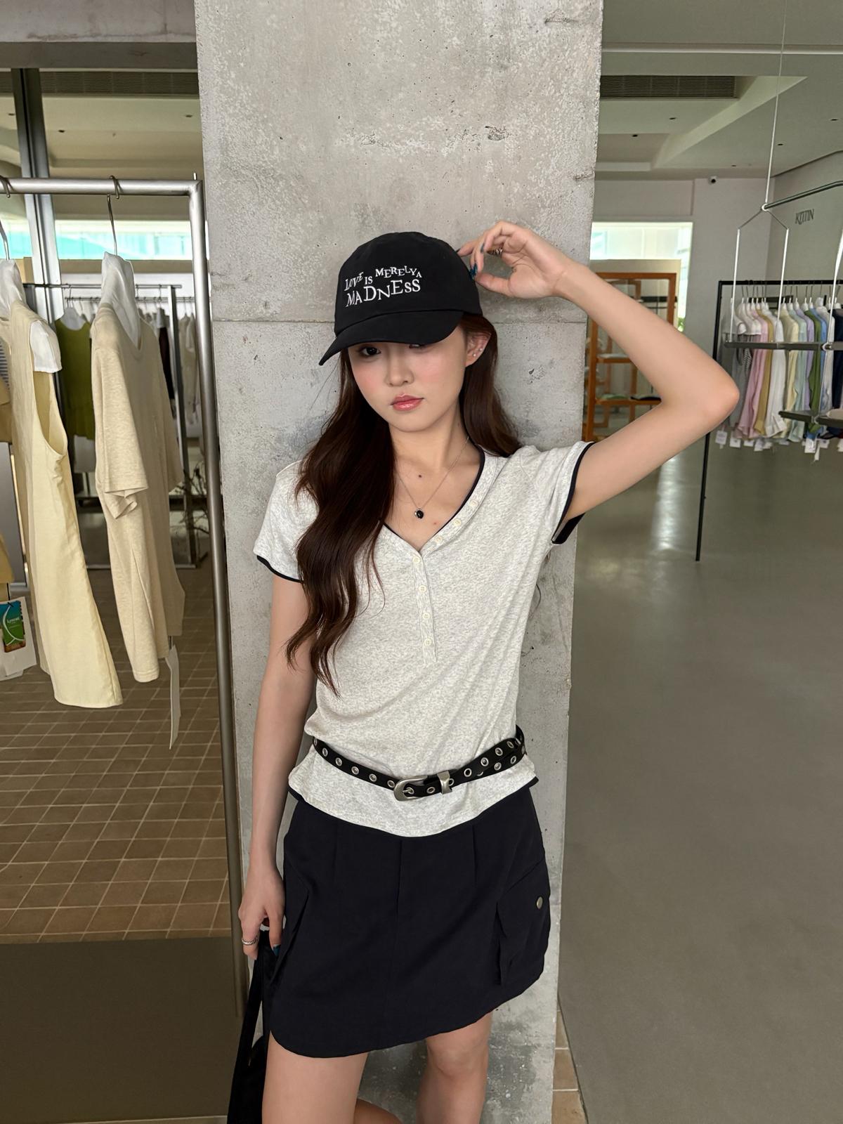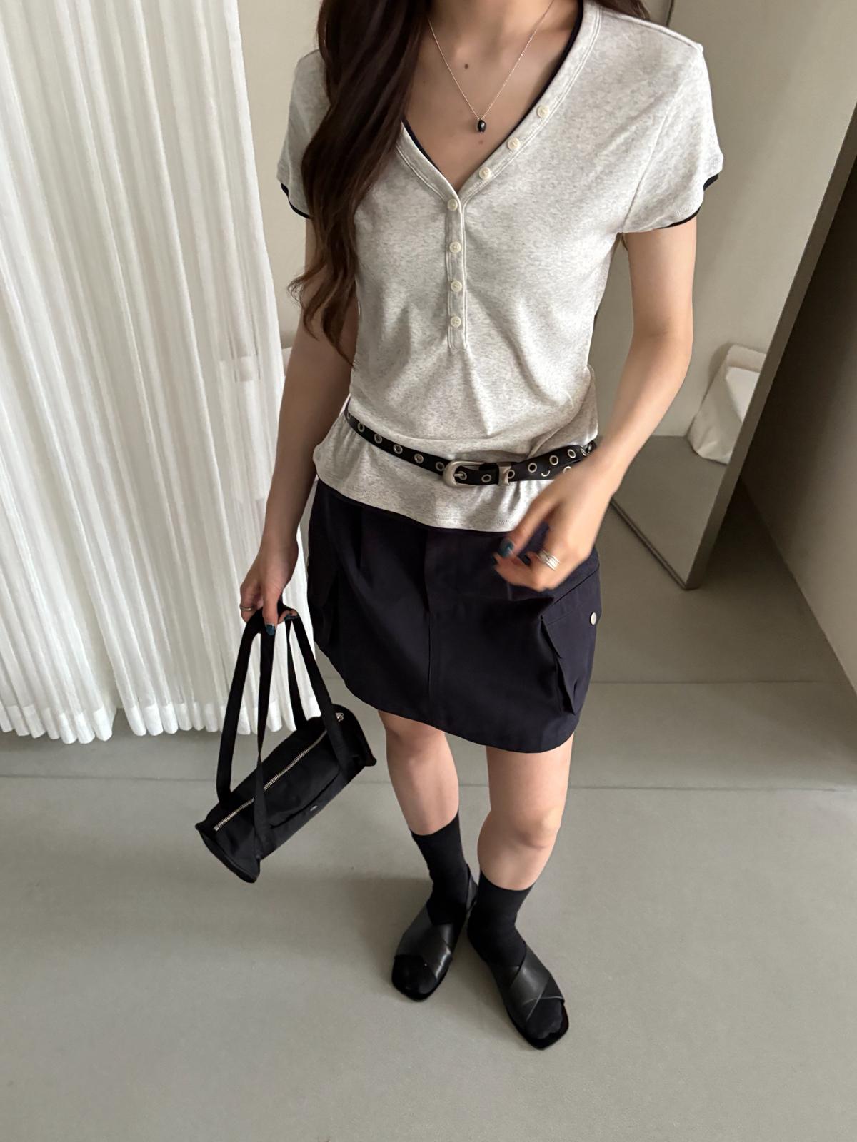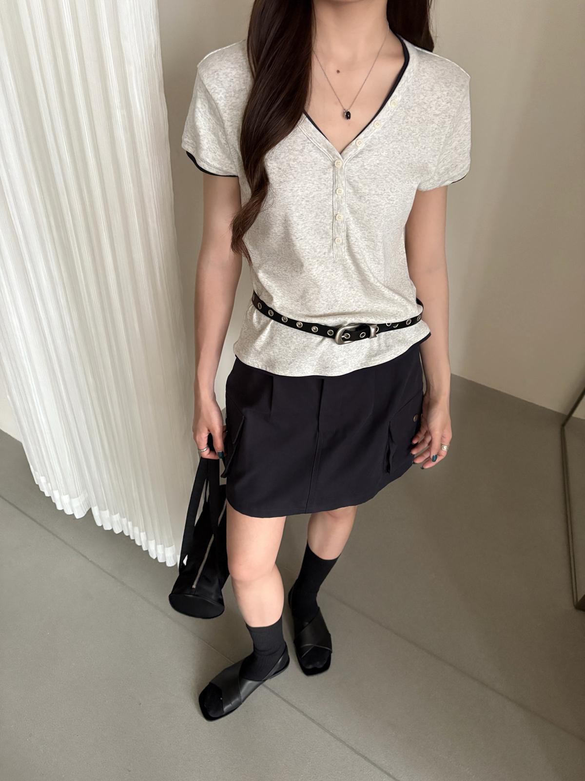 3. 【C9215】韓系設計感撞色V領短袖T恤(單賣短袖T恤)