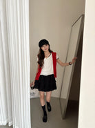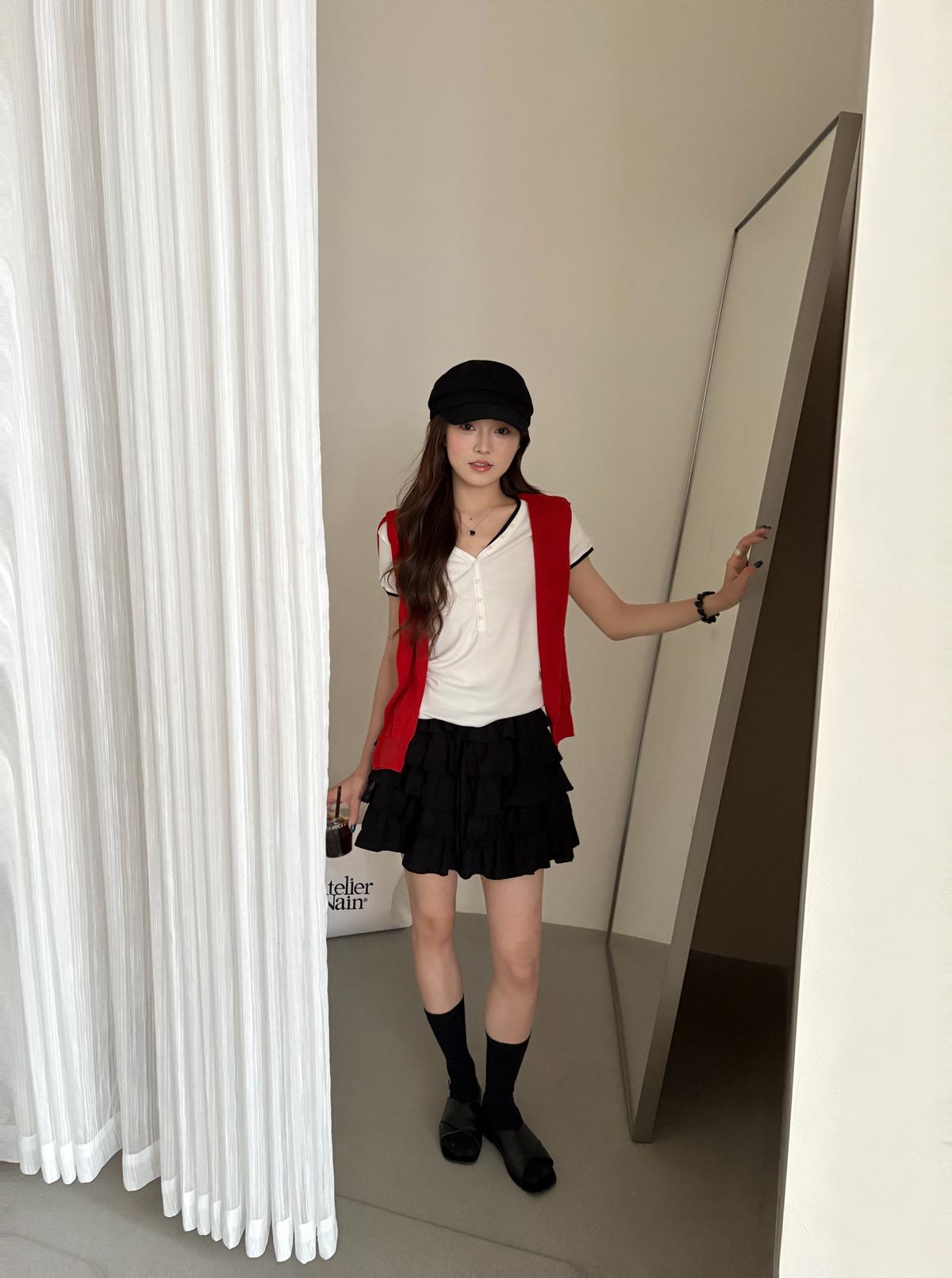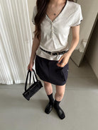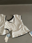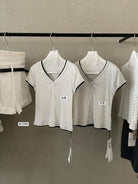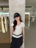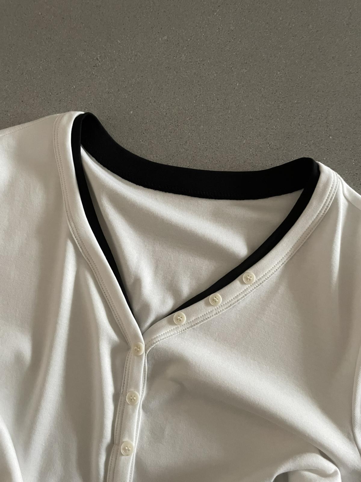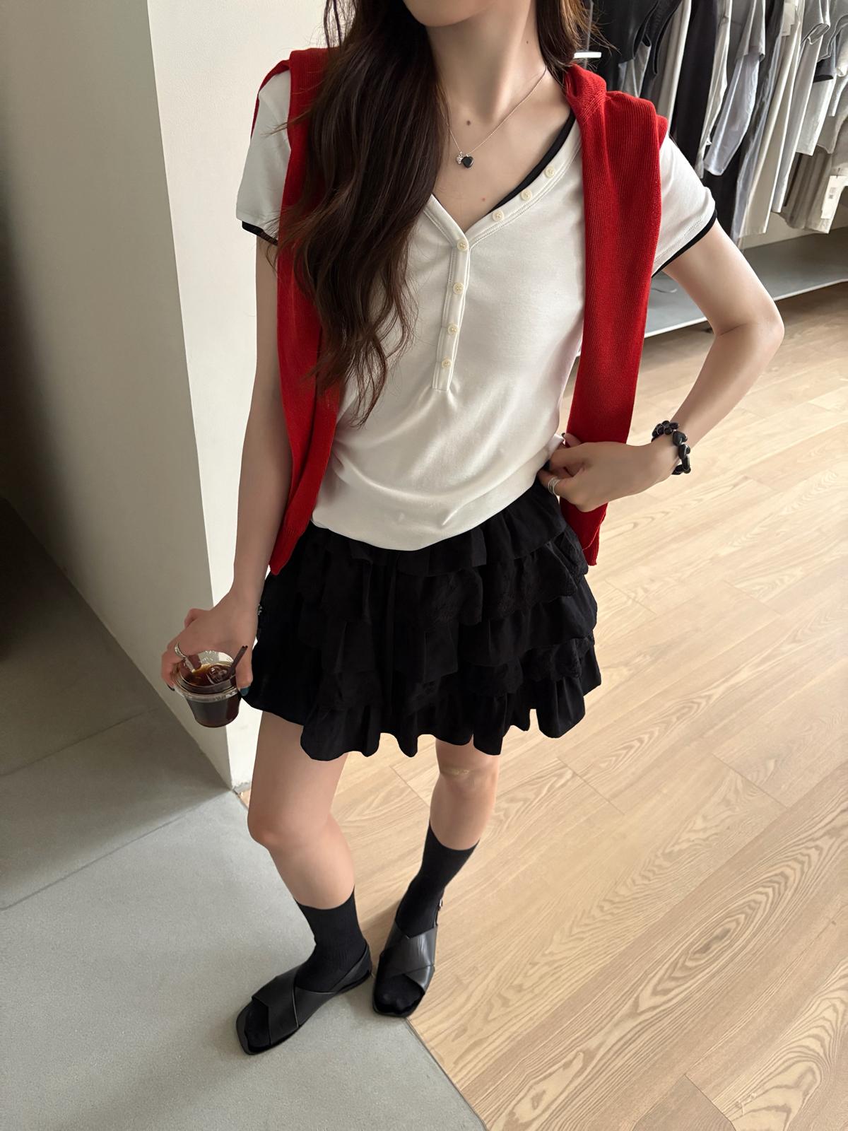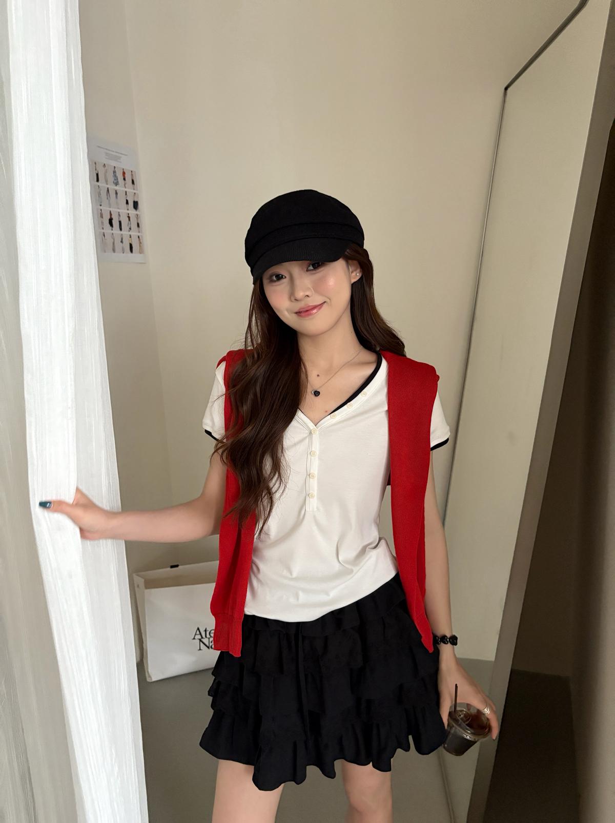 【C9215】韓系設計感撞色V領短袖T恤(單賣短袖T恤)