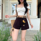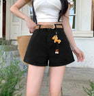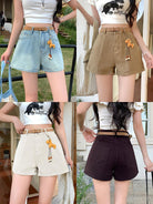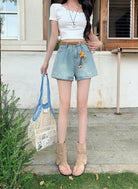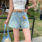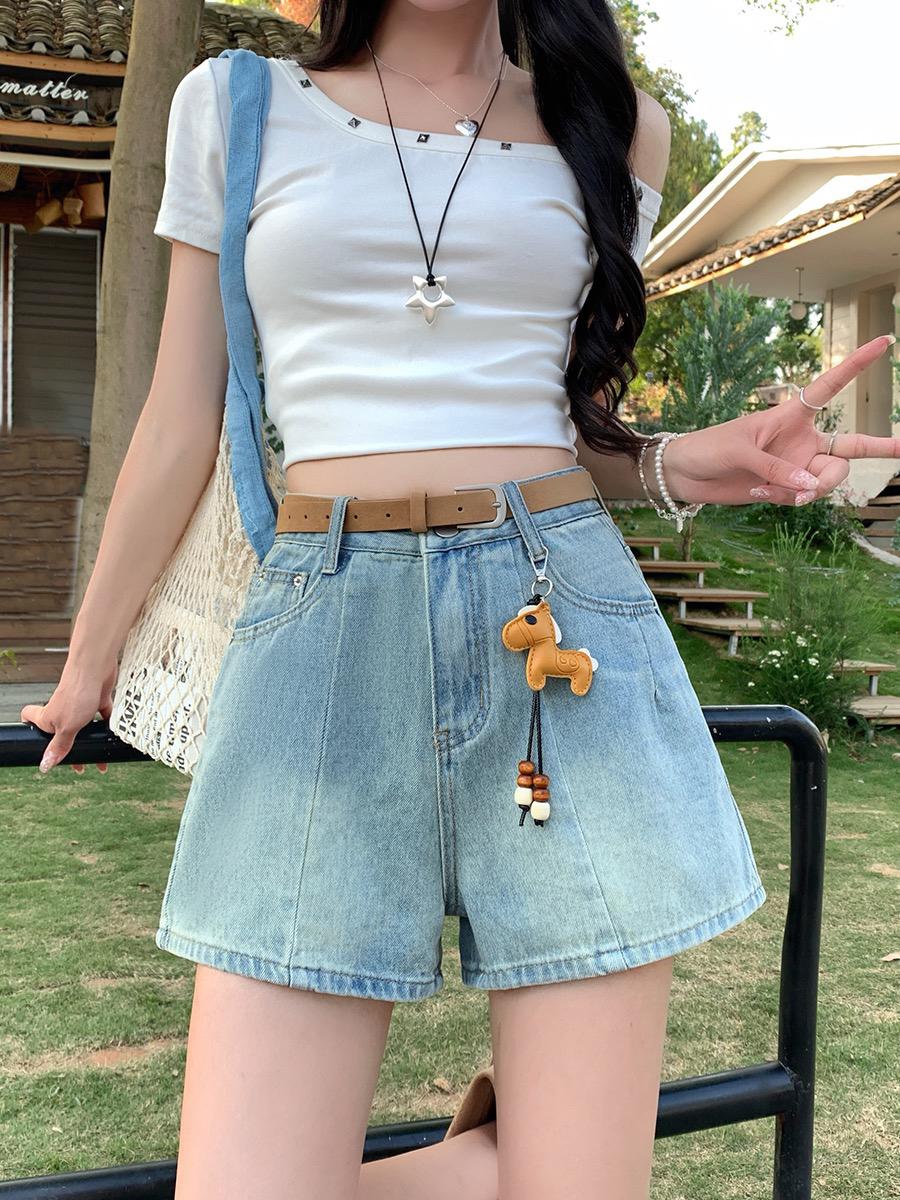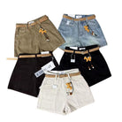 【C9222】2026夏季新品復古時尚a字顯瘦水洗牛仔短褲(配腰帶+小馬掛件)