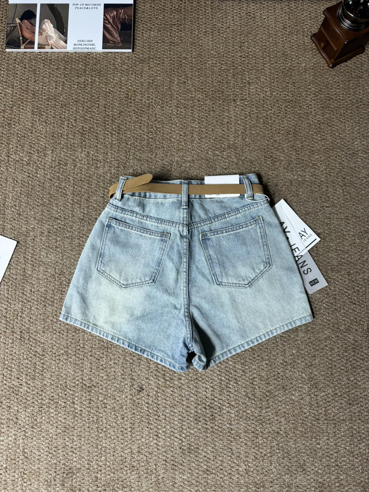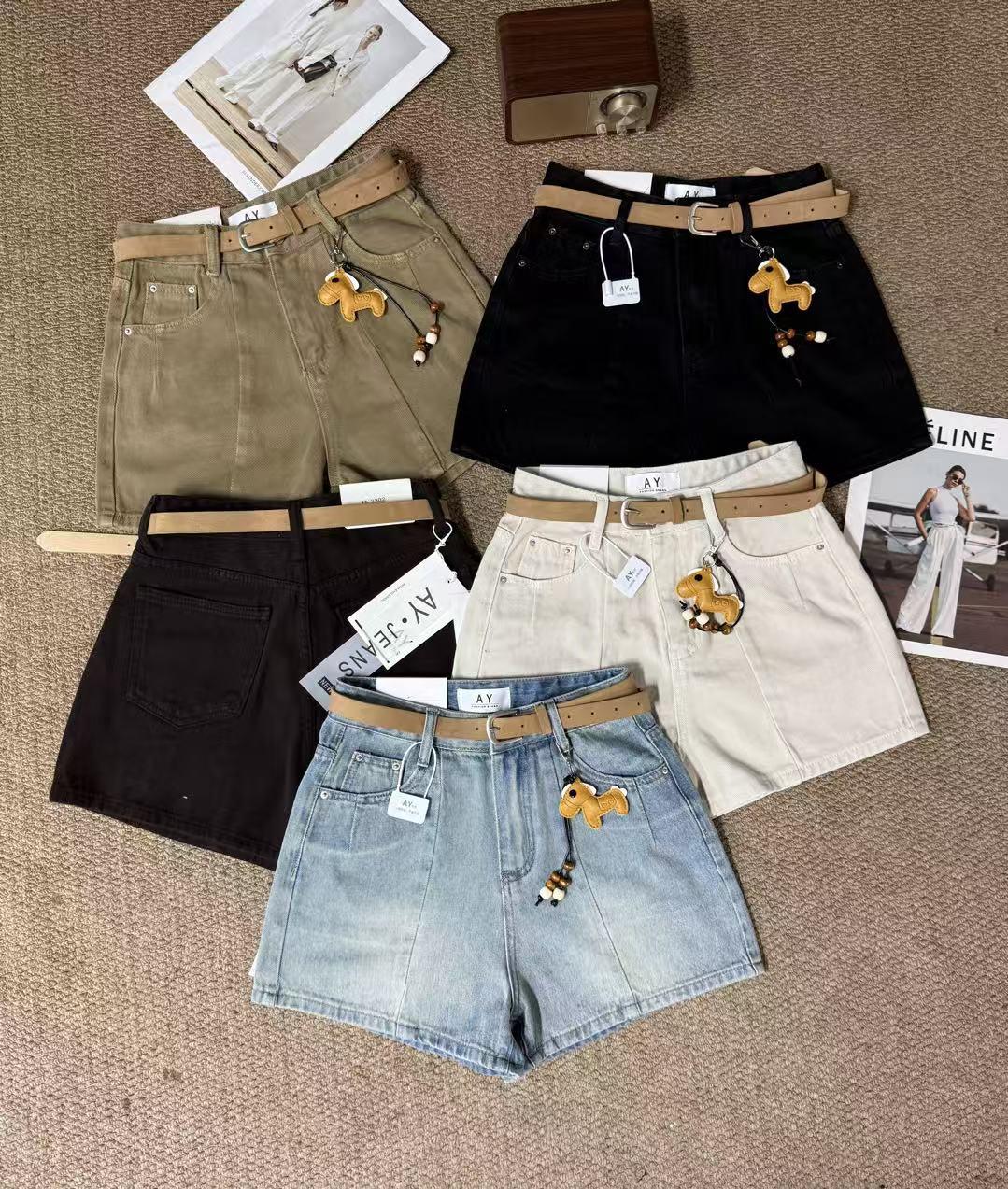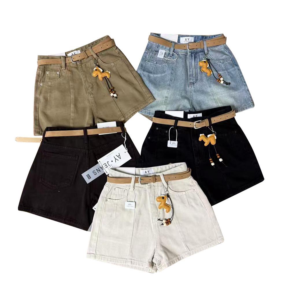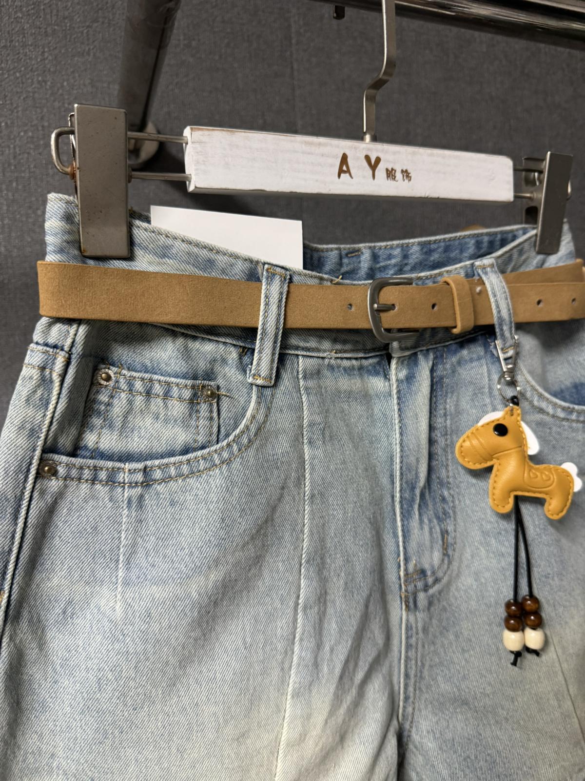 3. 【C9222】2026夏季新品復古時尚a字顯瘦水洗牛仔短褲(配腰帶+小馬掛件)