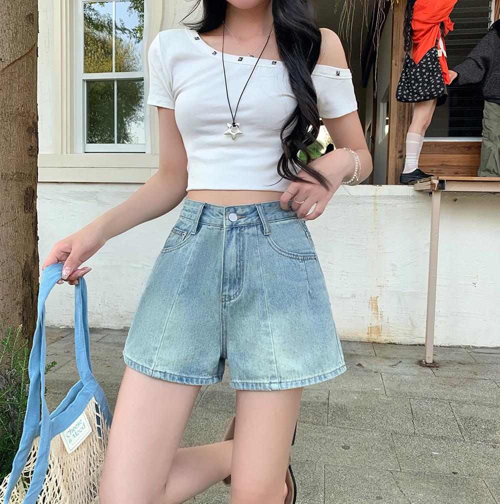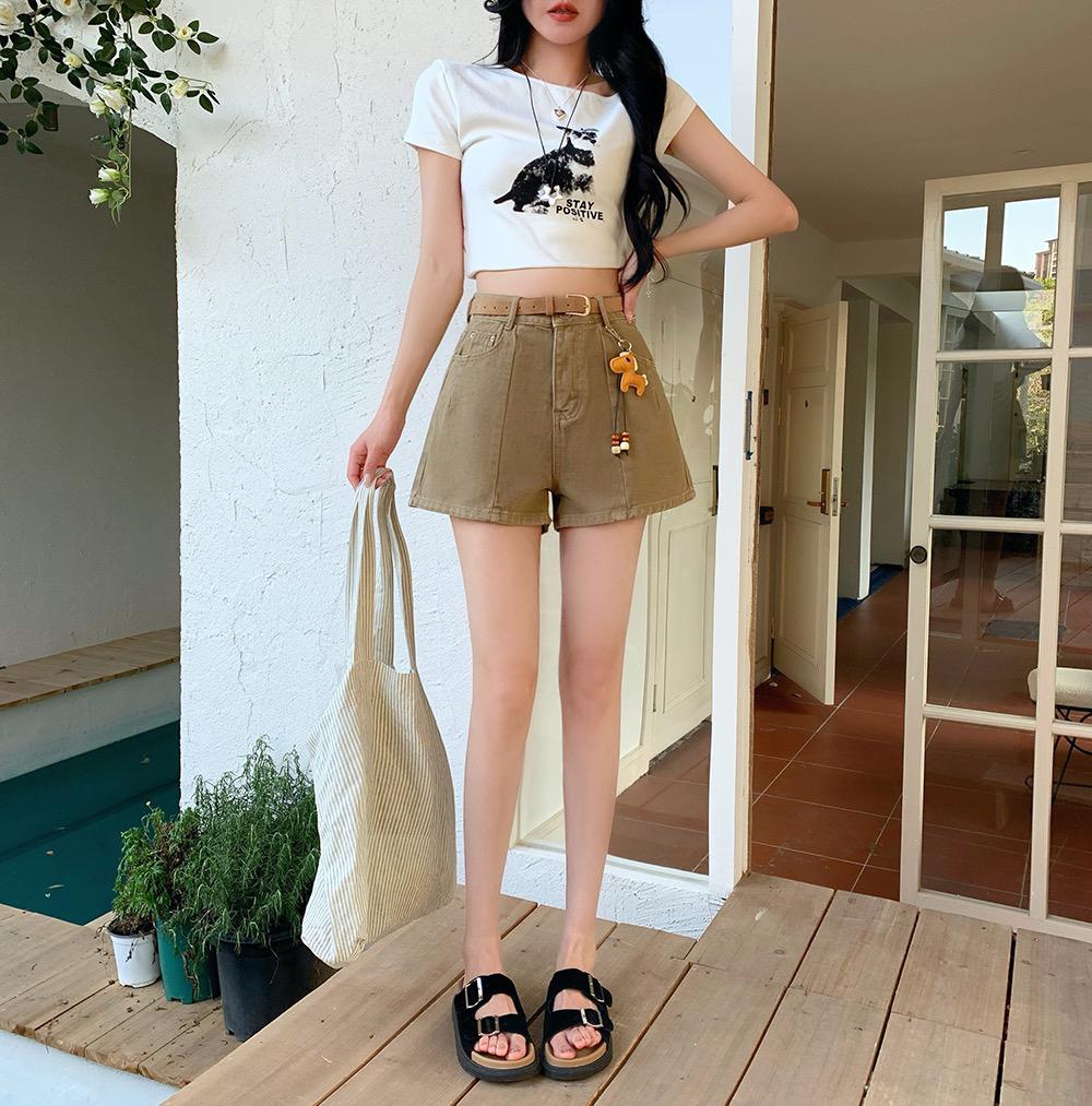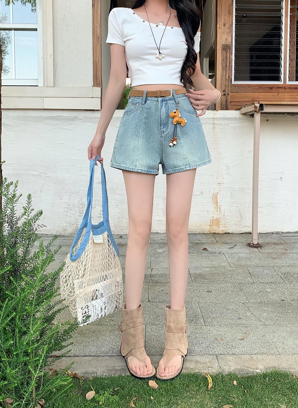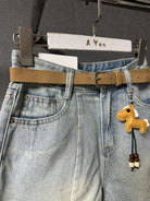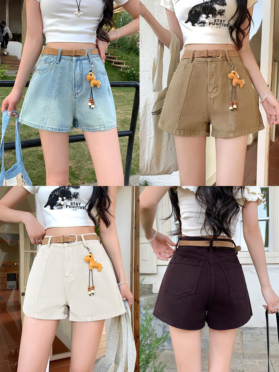 3. 【C9222】2026夏季新品復古時尚a字顯瘦水洗牛仔短褲(配腰帶+小馬掛件)