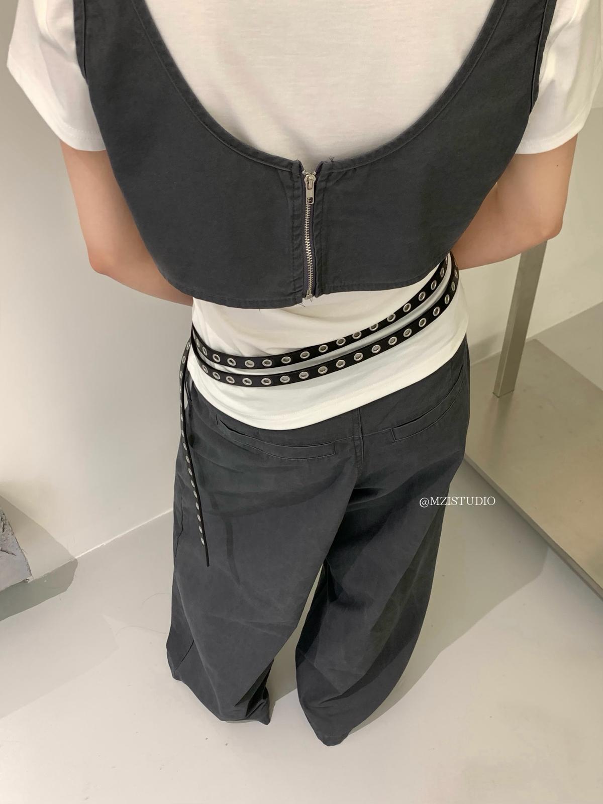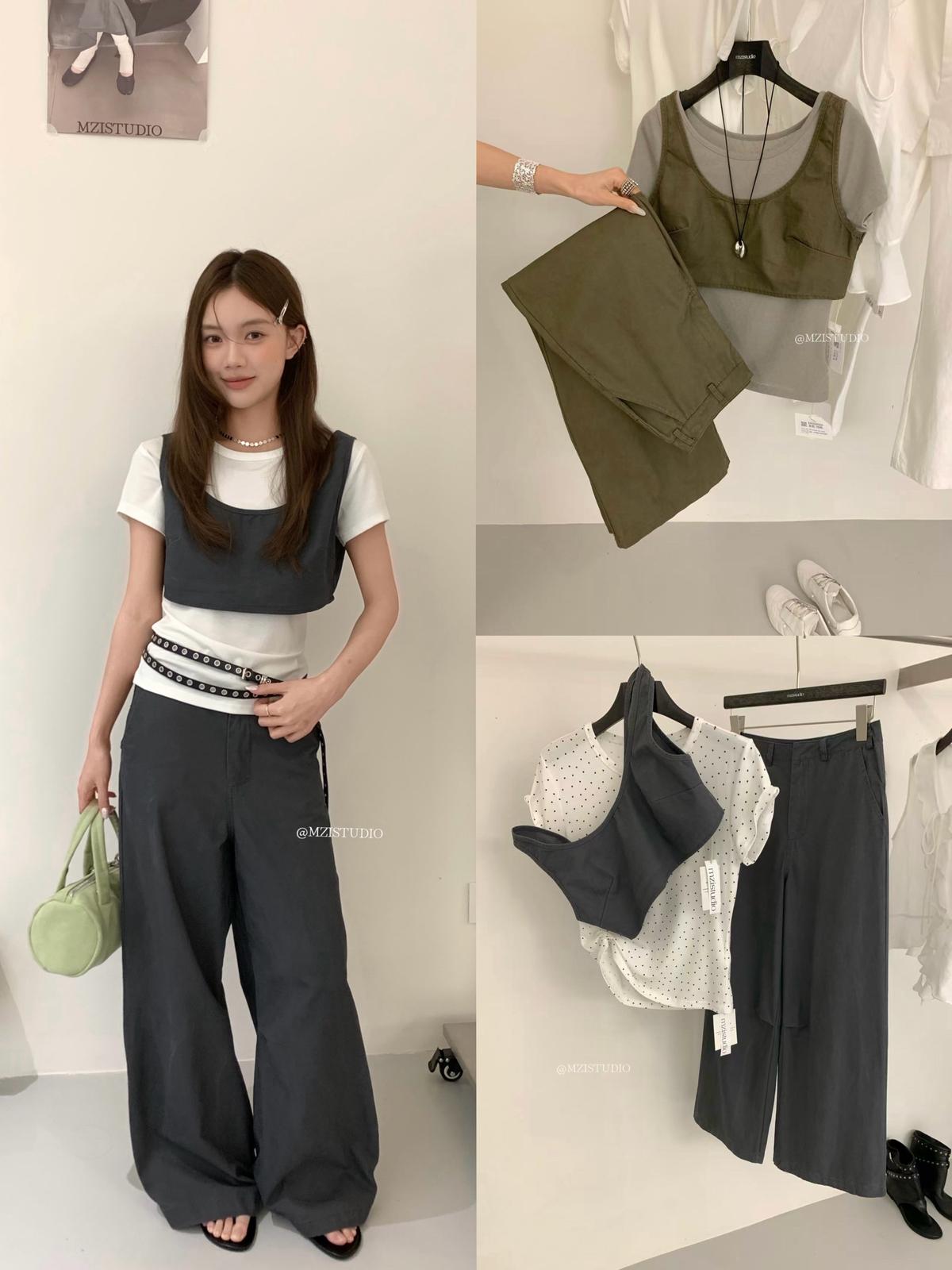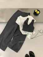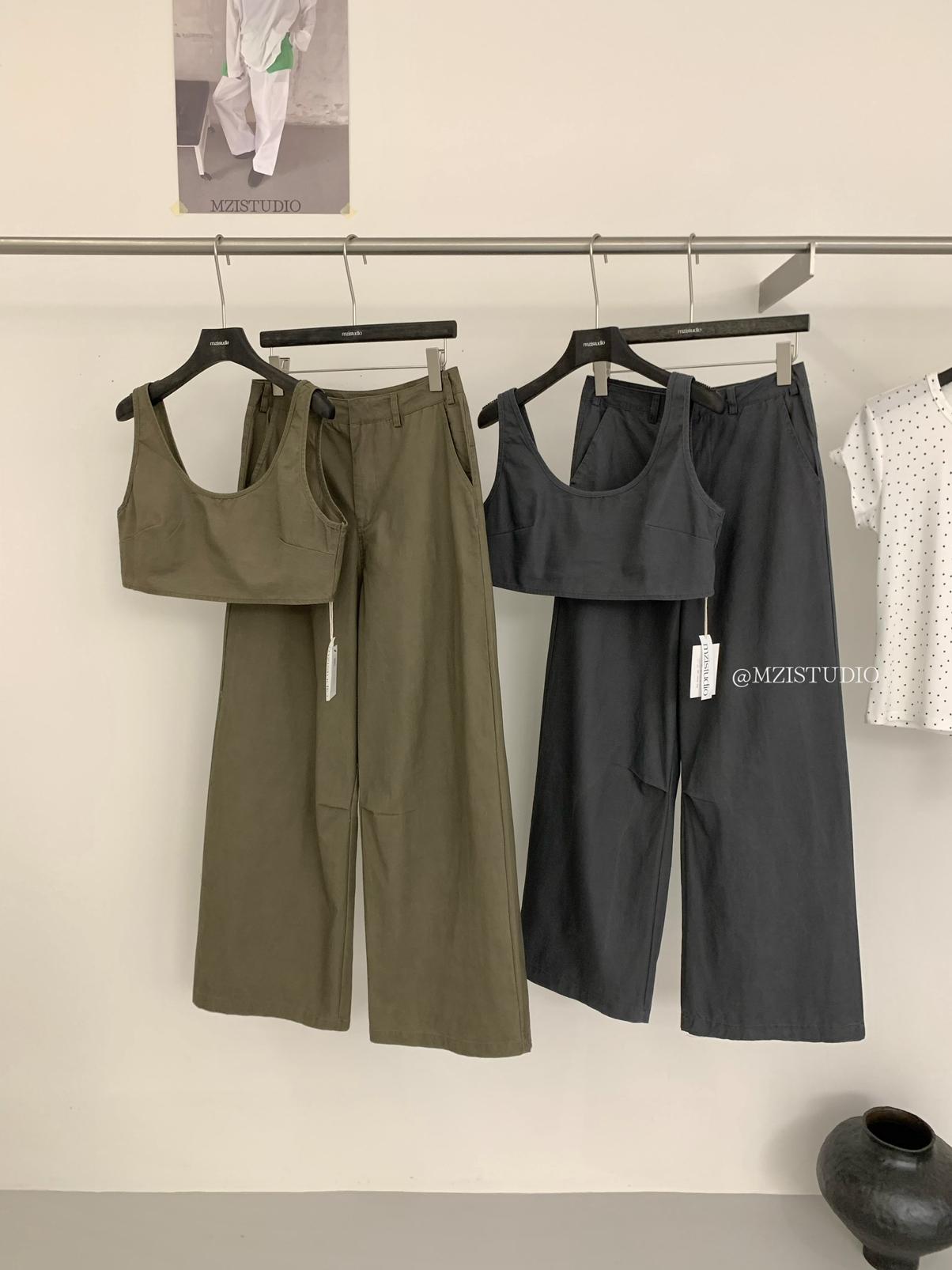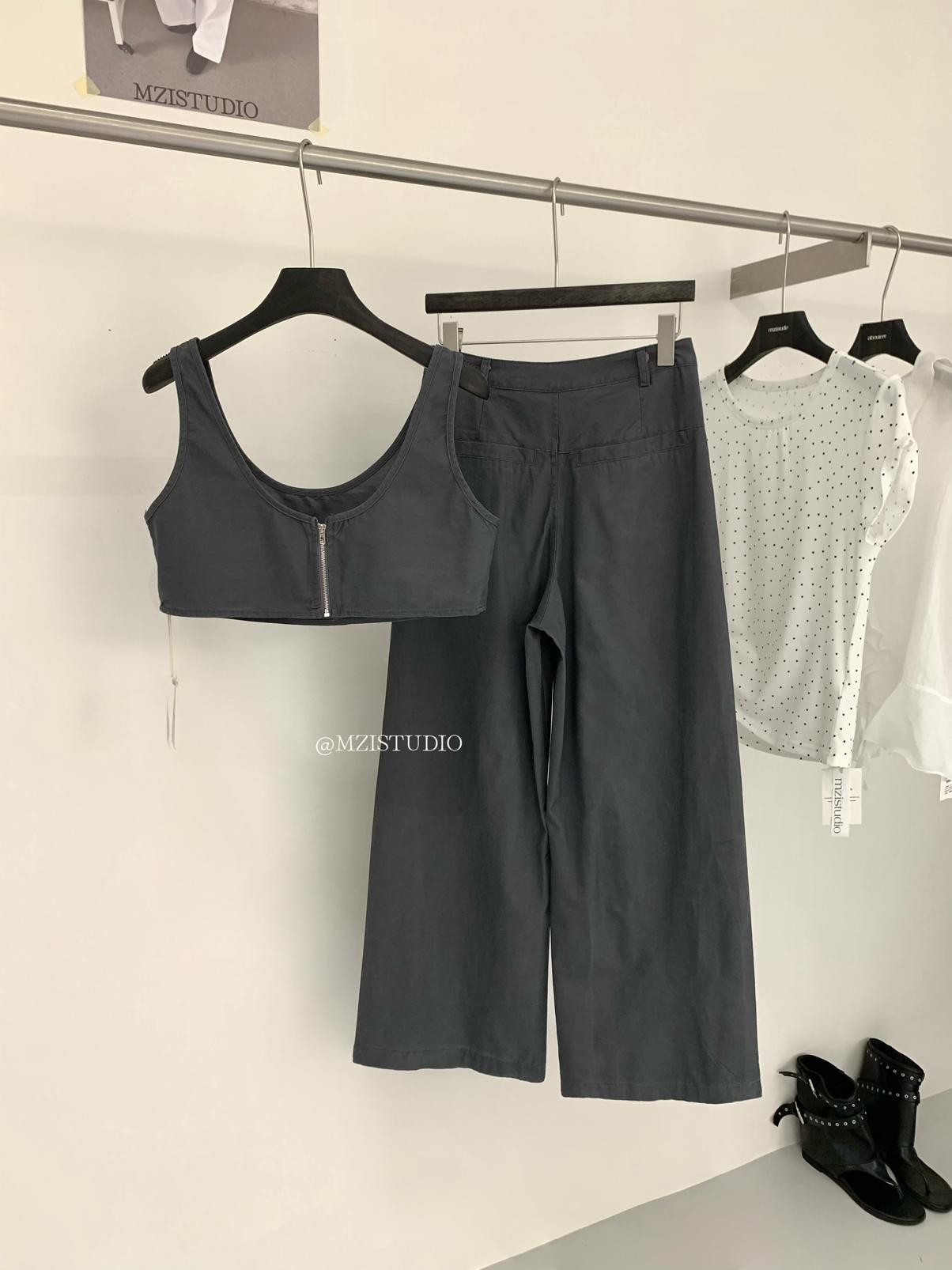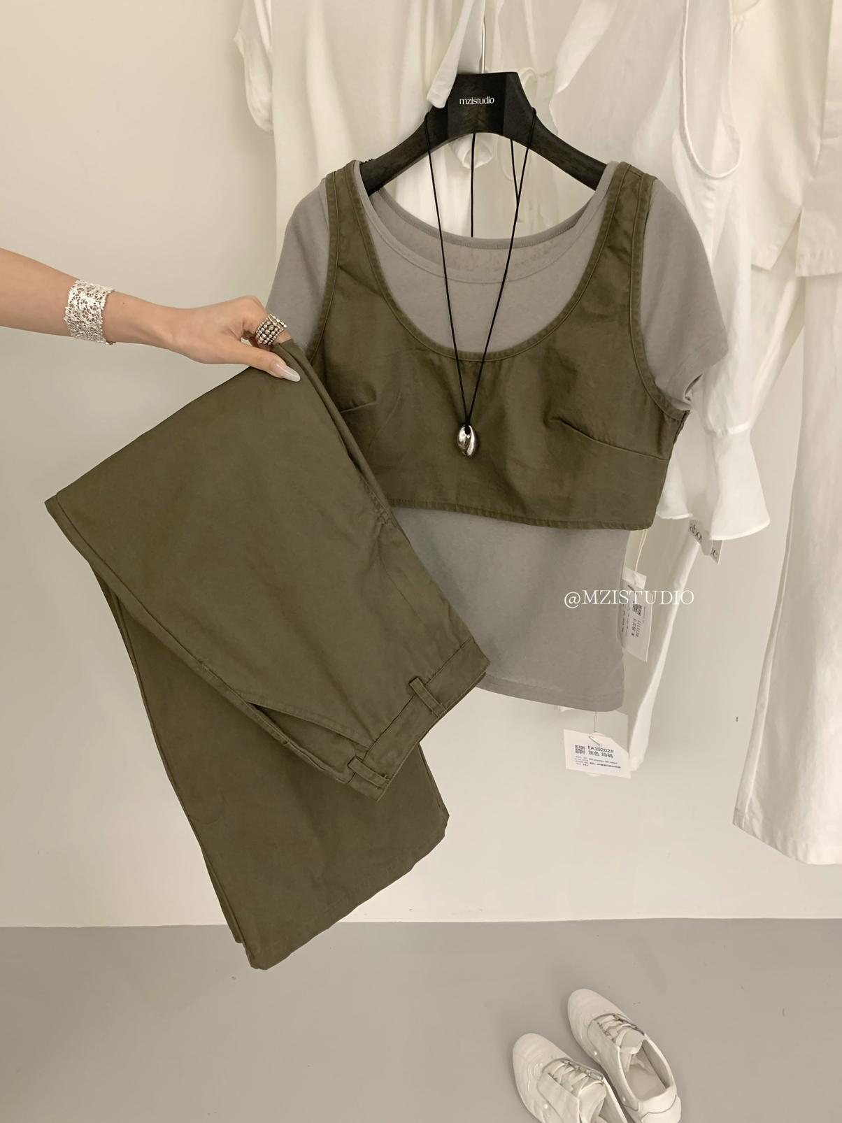 3. 【C9223】自由力量韓版時髦拉鍊短款疊穿背心+闊腿寬鬆百搭遮肉休閒褲套裝(兩件套)