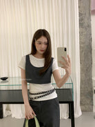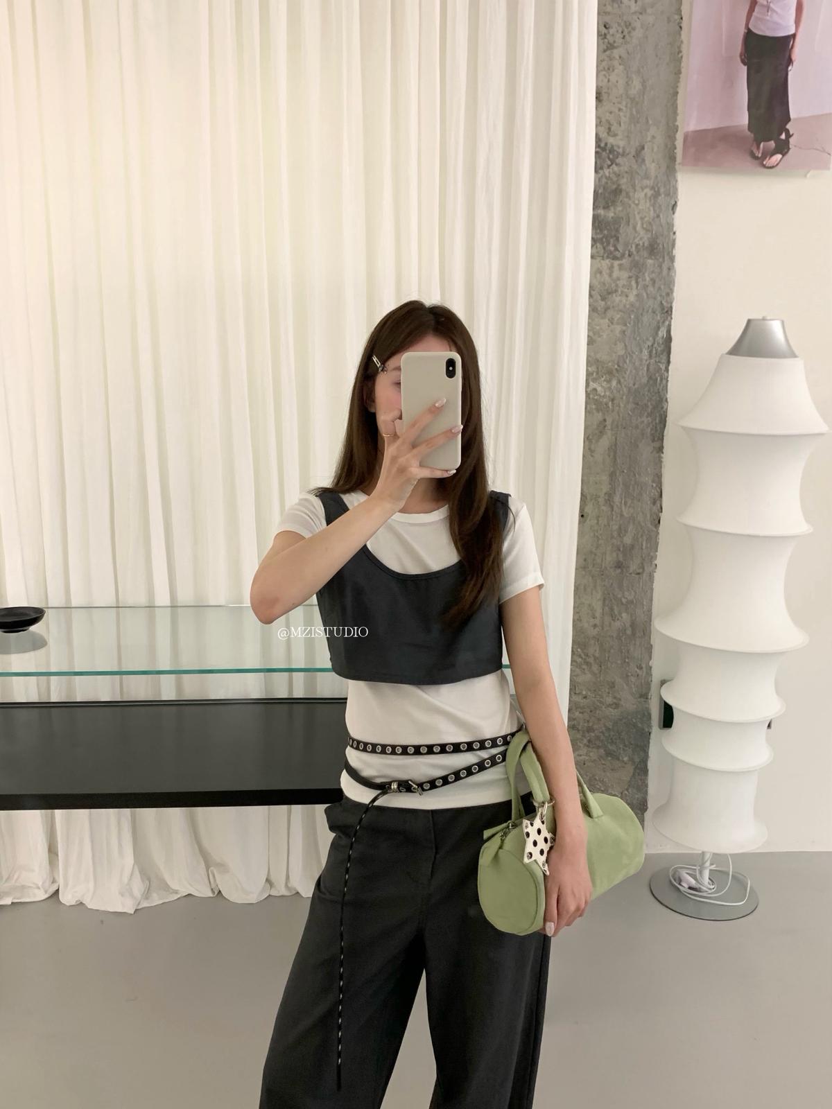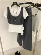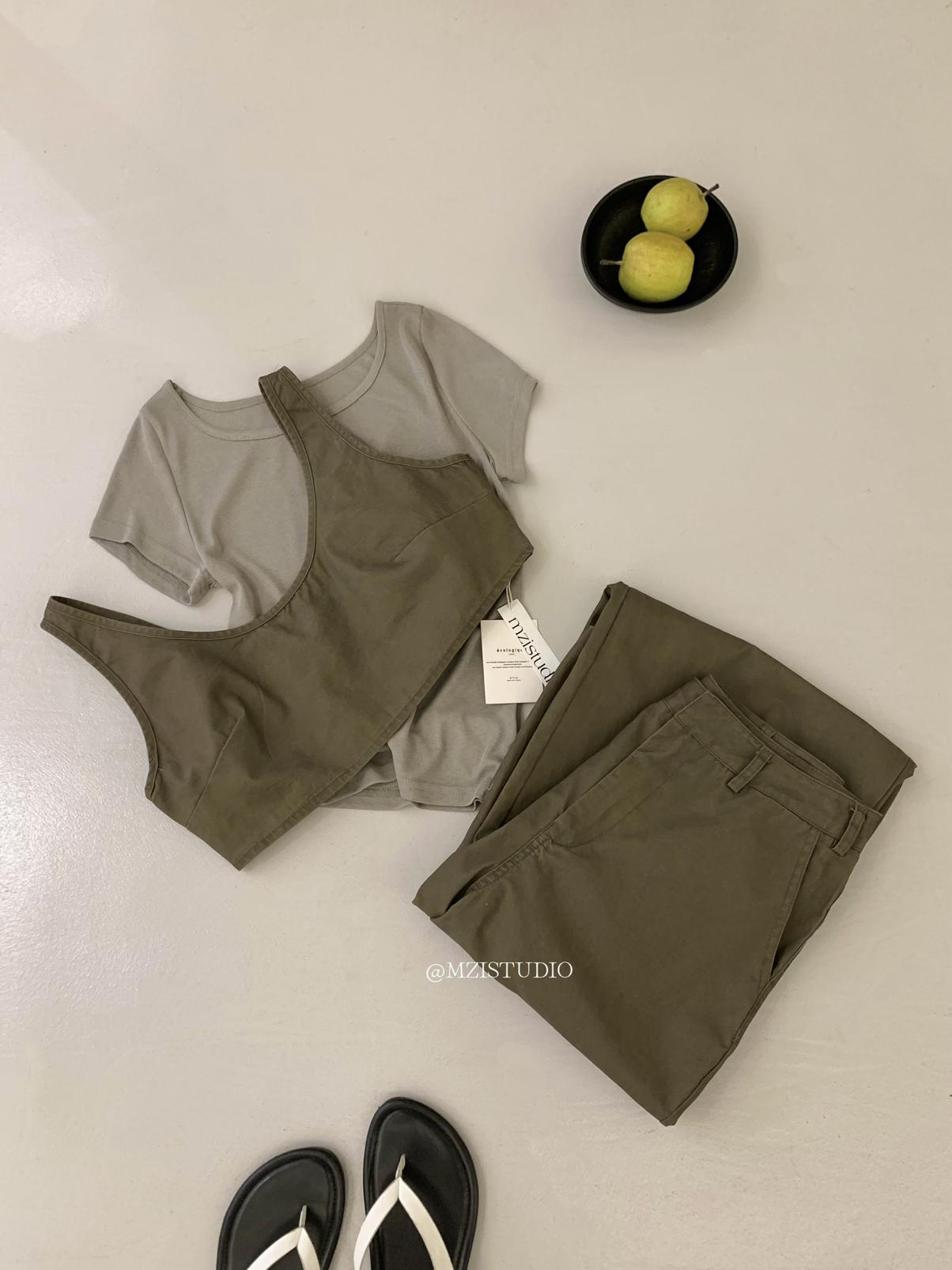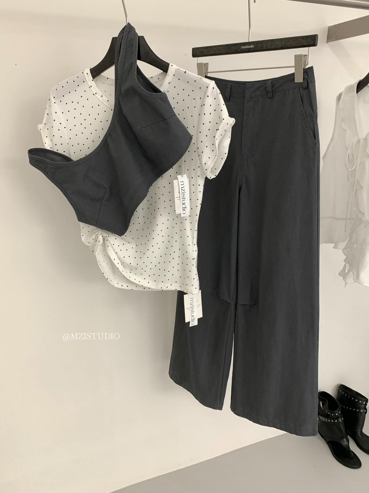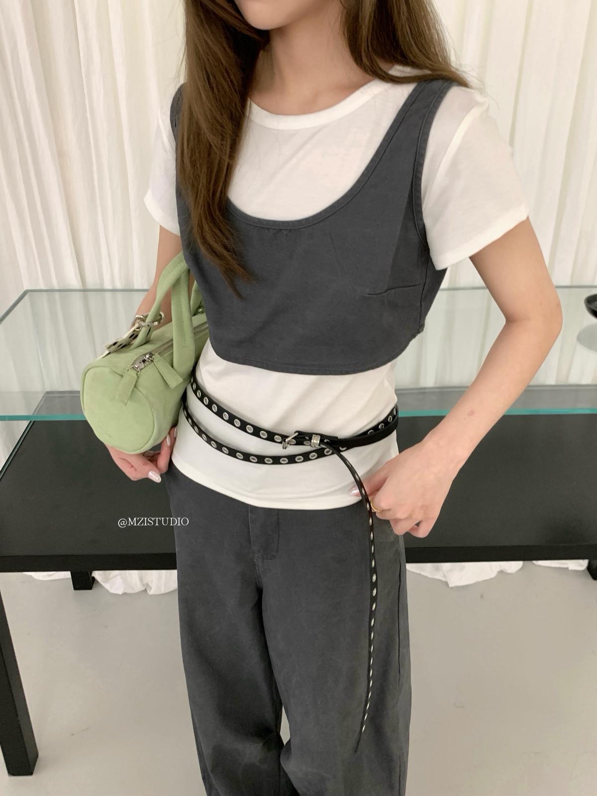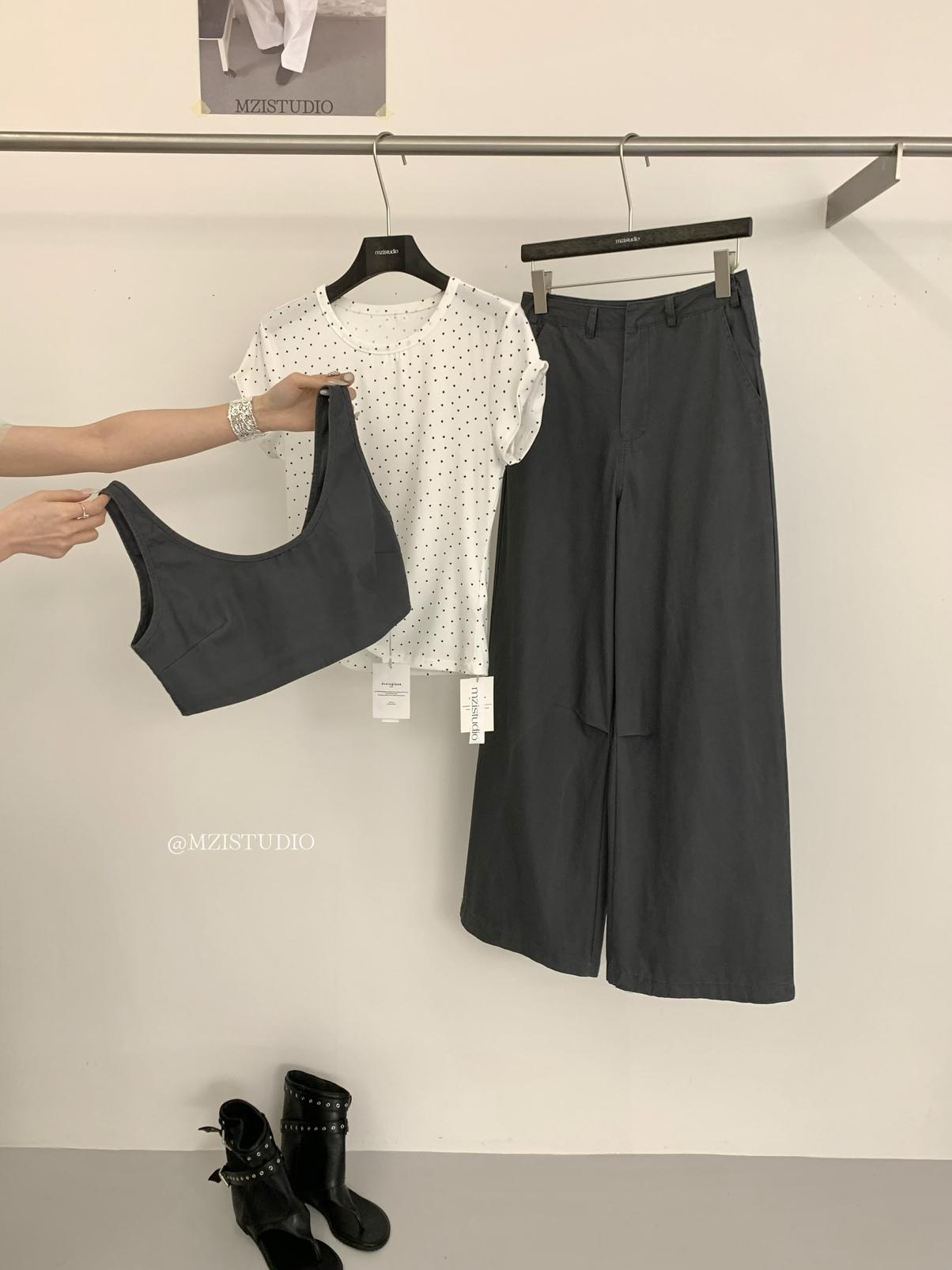 3. 【C9223】自由力量韓版時髦拉鍊短款疊穿背心+闊腿寬鬆百搭遮肉休閒褲套裝(兩件套)