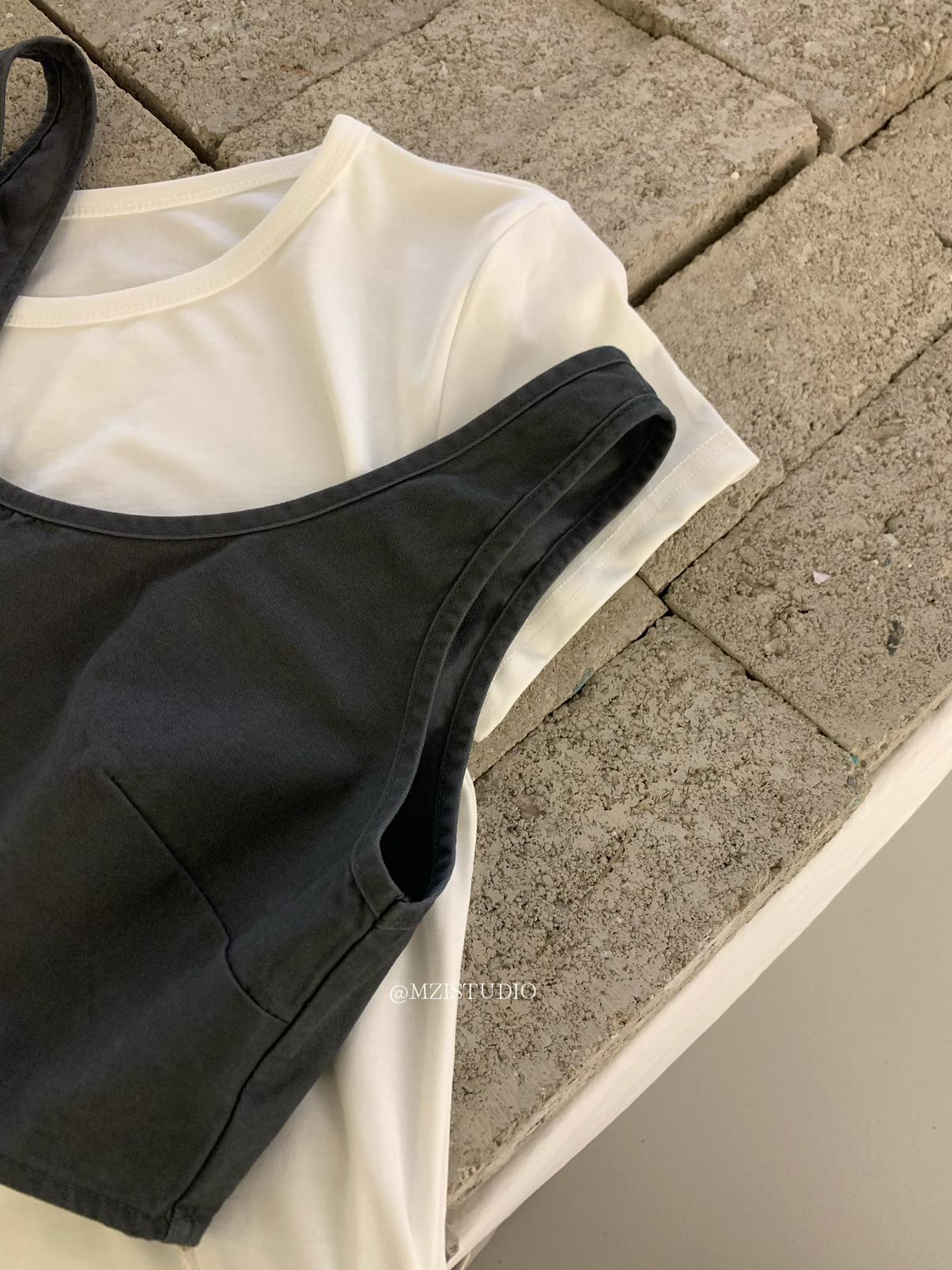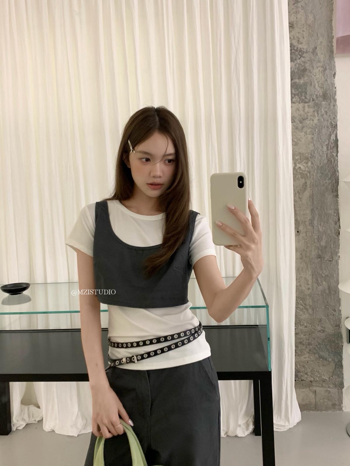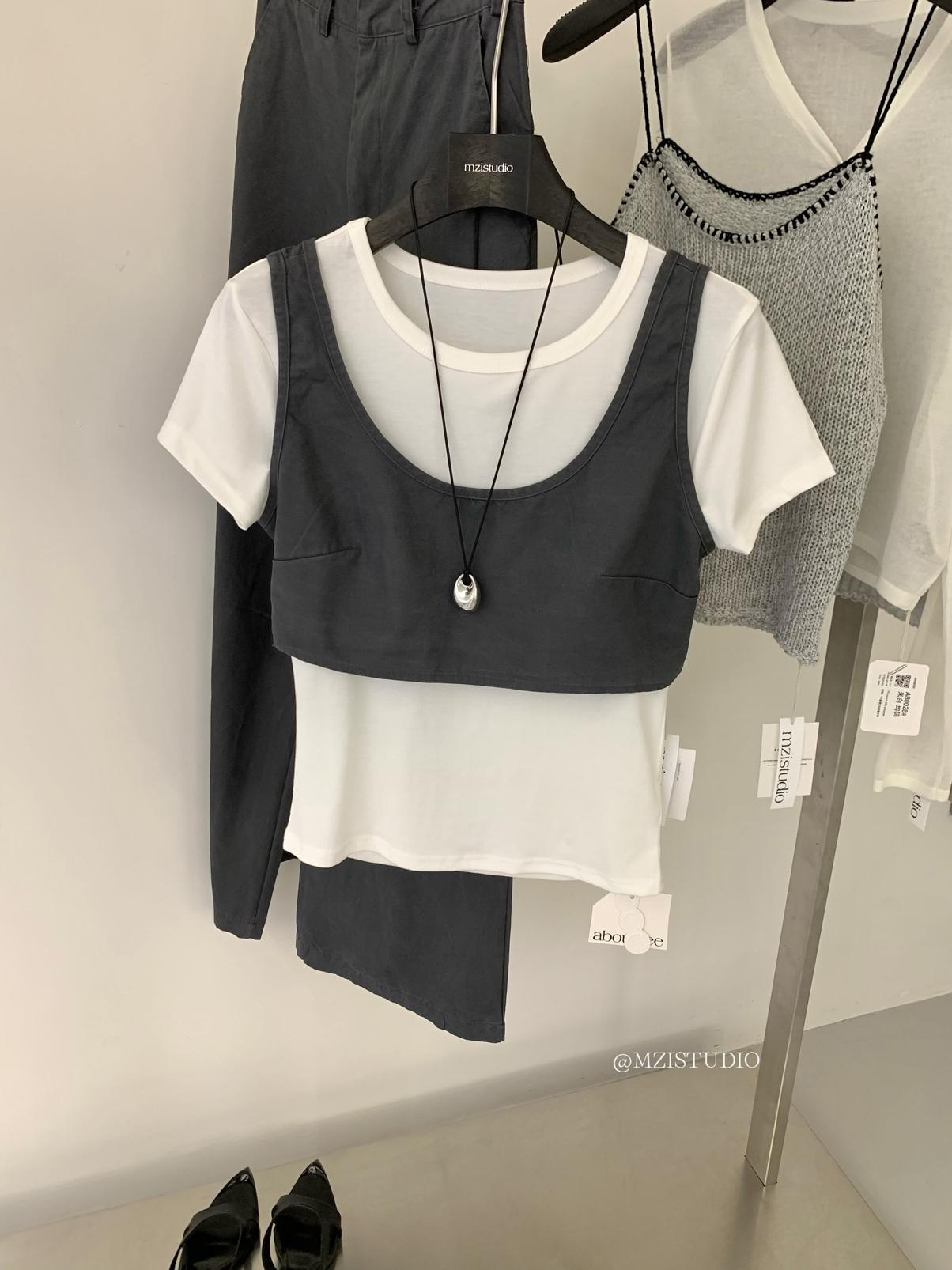 【C9223】自由力量韓版時髦拉鍊短款疊穿背心+闊腿寬鬆百搭遮肉休閒褲套裝(兩件套)